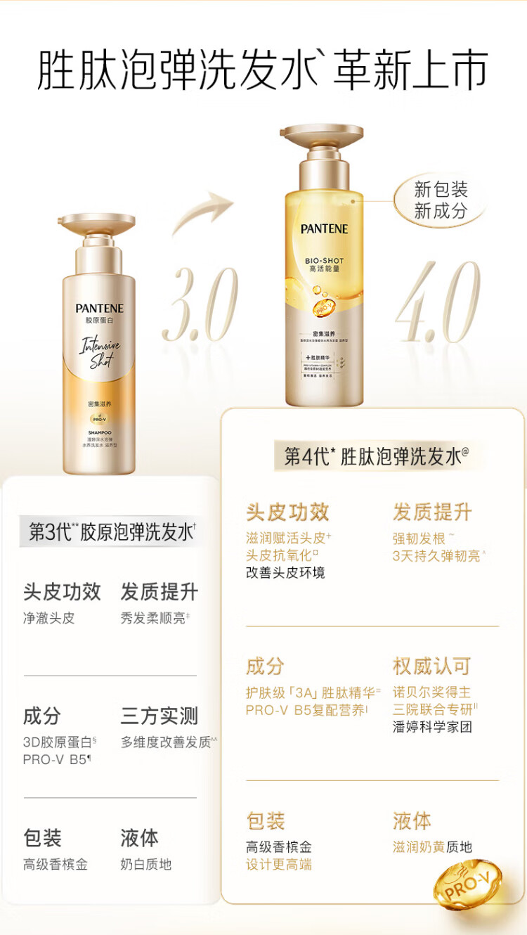 潘婷胶原嘭嘭瓶蓬松洗发水深水泡弹胶原蛋白滋养型530gx3+50gx3洗发水
