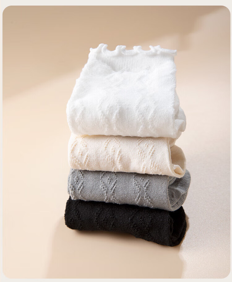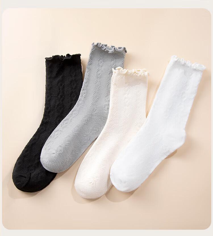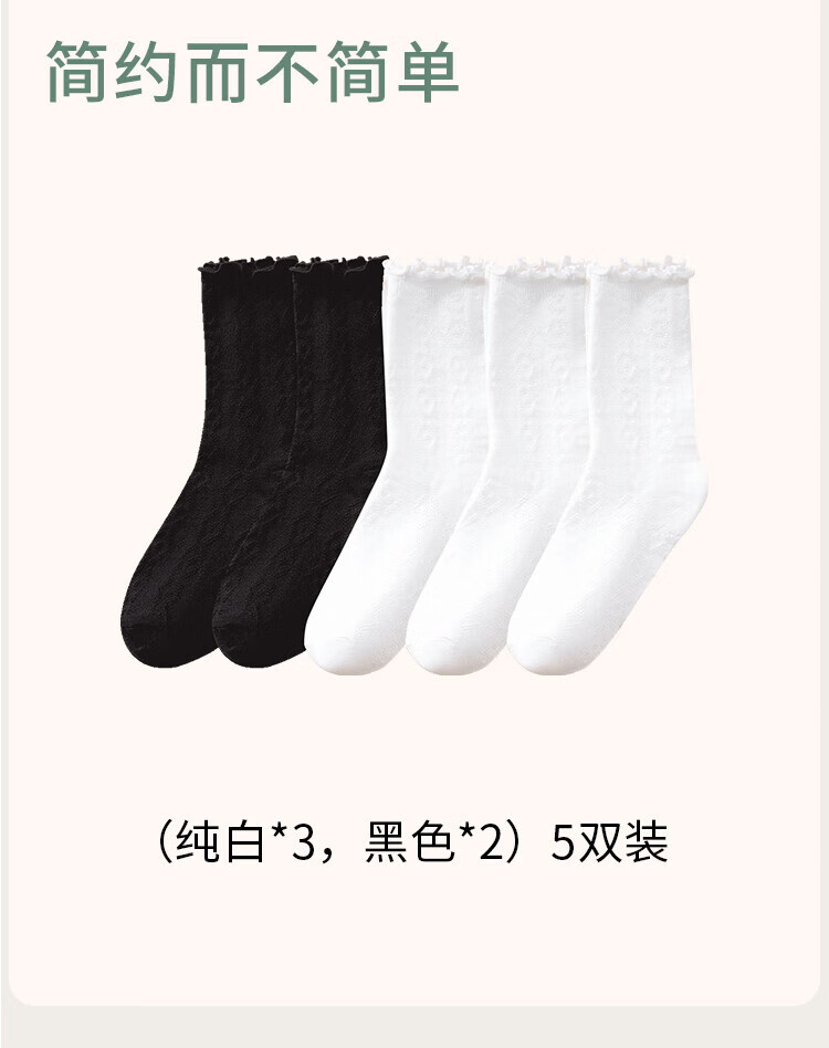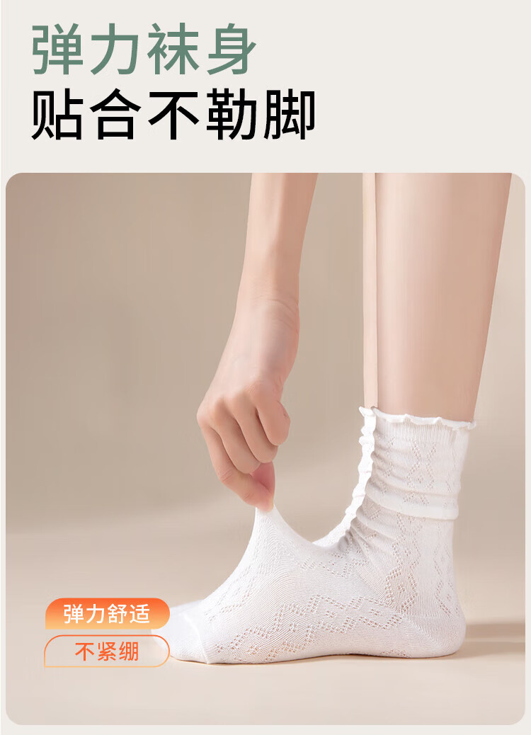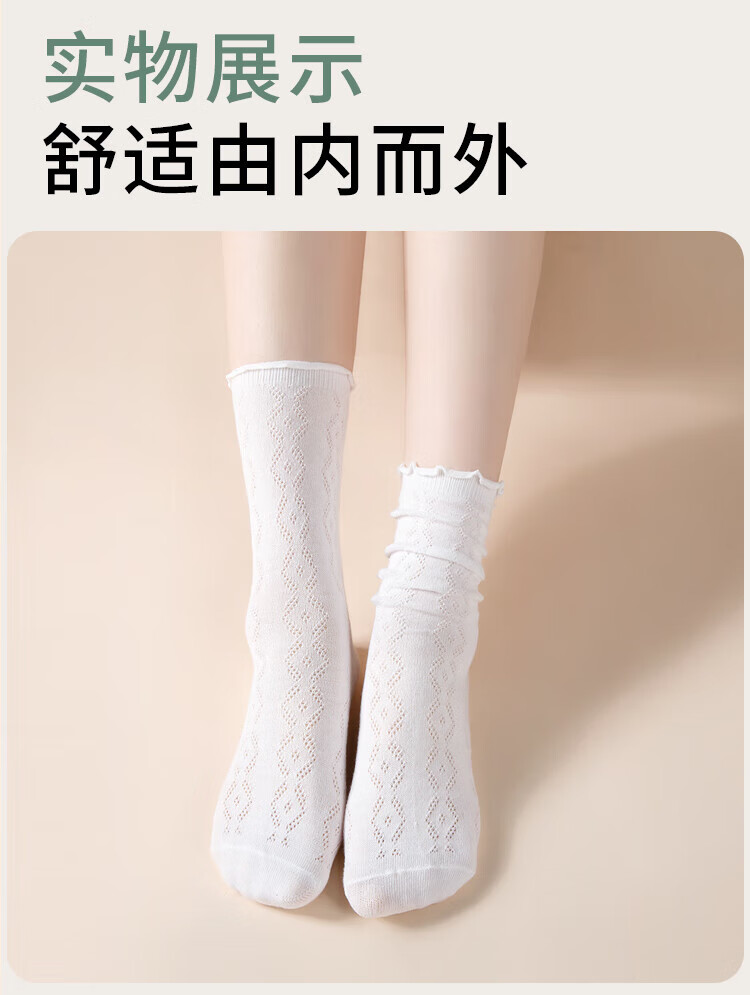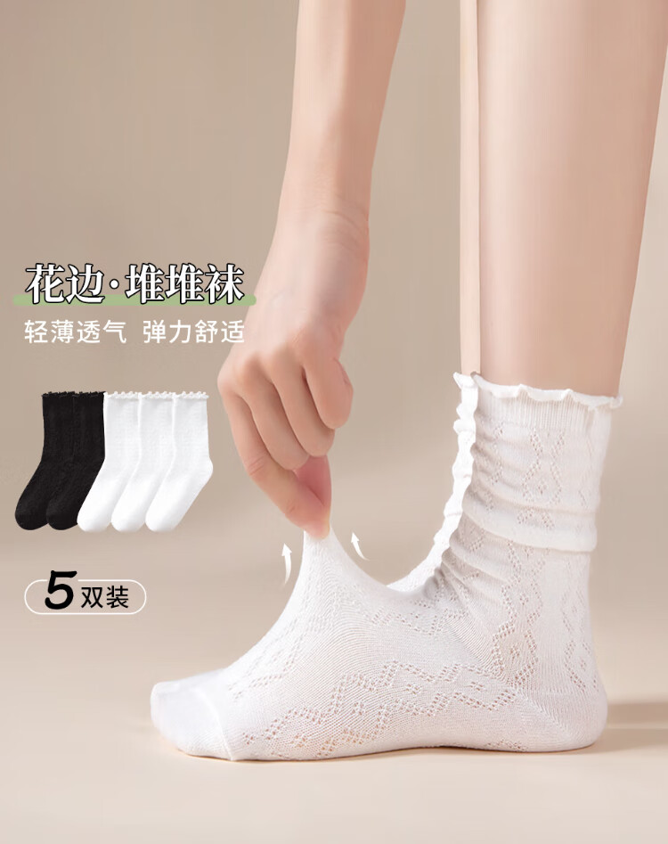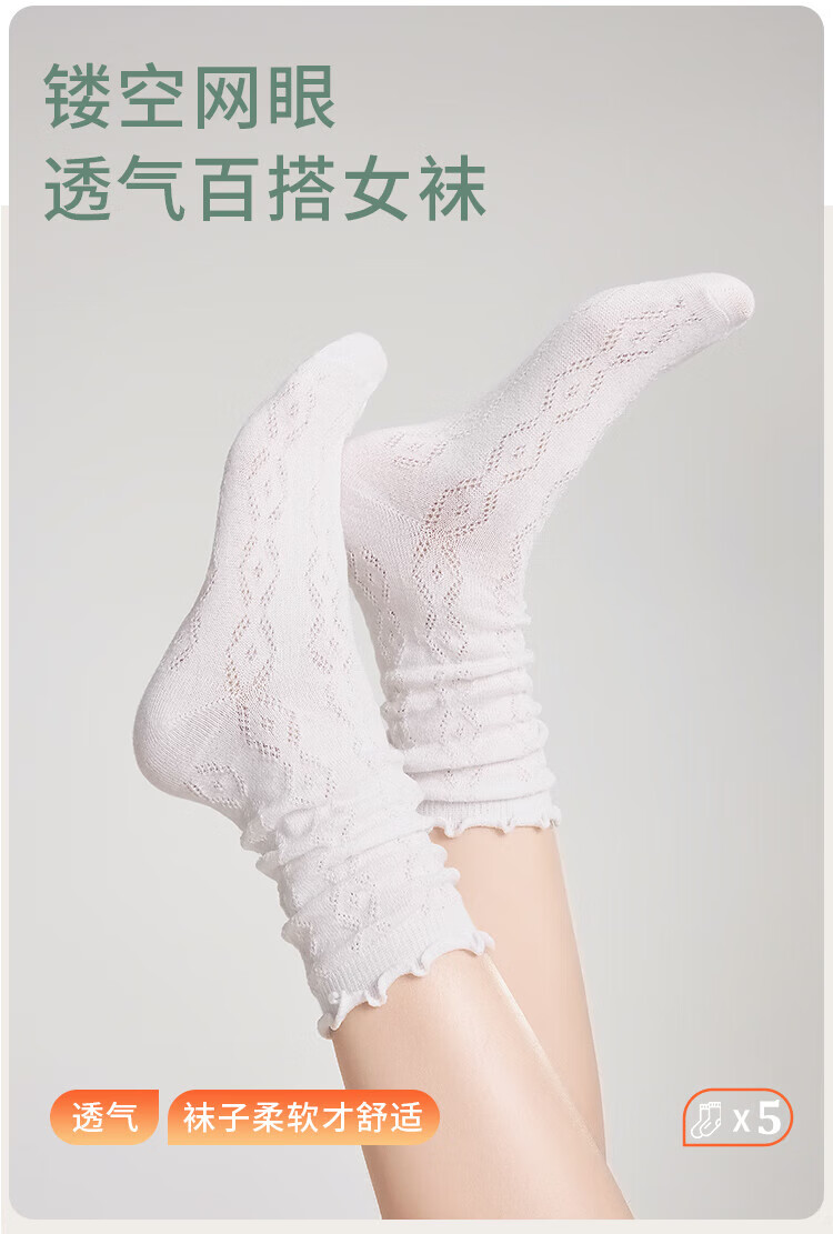 Siebenfarbige gesponnene Socken, lässige Damensocken, dünne Sommersocken mit Pilzrand, atmungsaktive Florsocken, mittellange Spitzensocken, 5 Paar