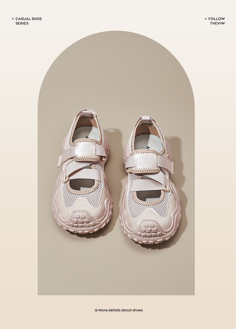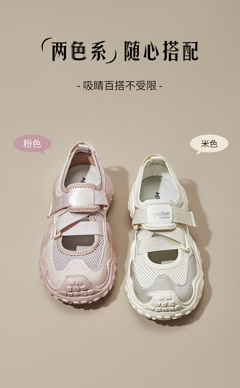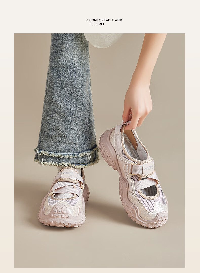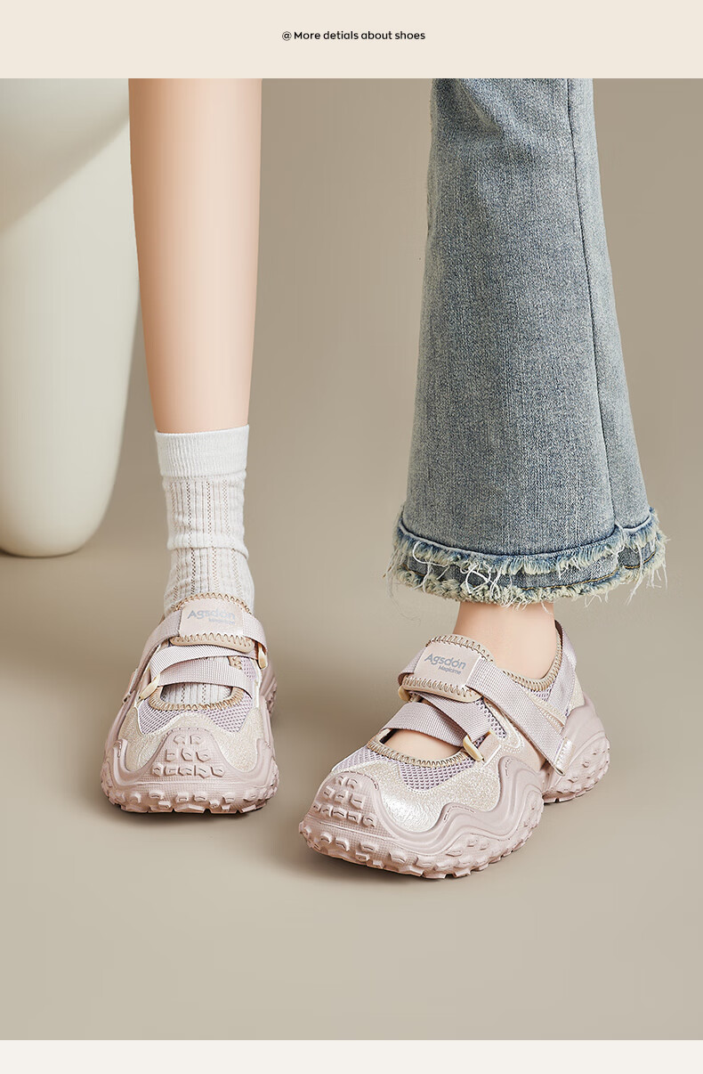 Agsdon sports sandals for women summer new mesh breathable Mary Jane Velcro soft bottom sandals L252226 Pink 38