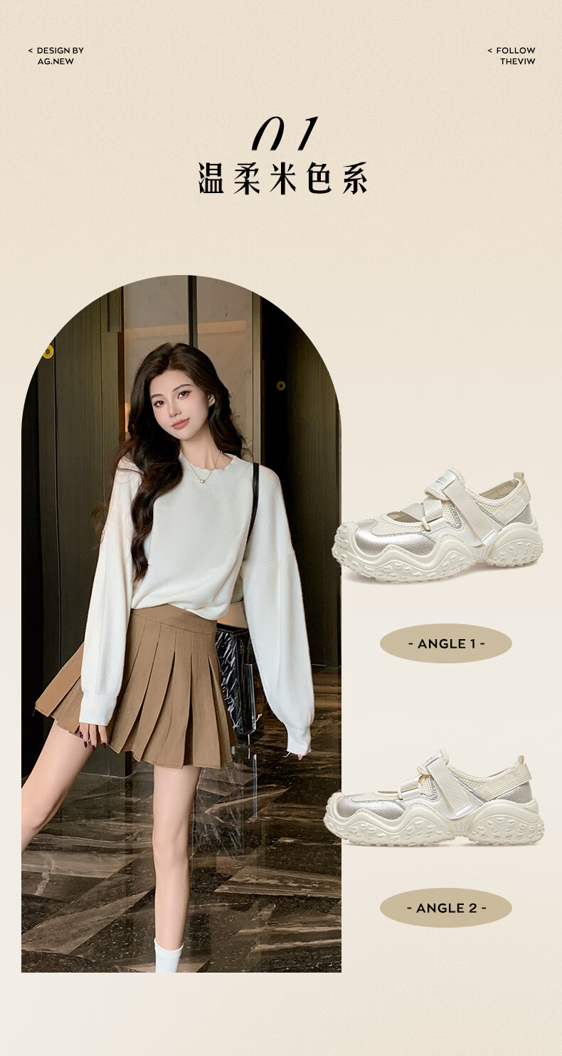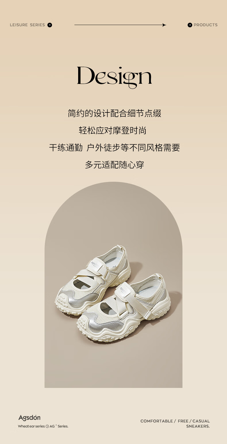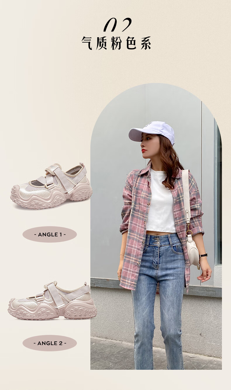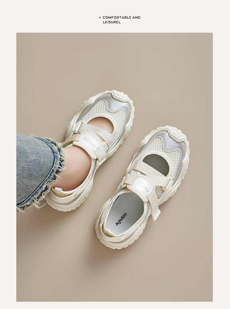 Agsdon sports sandals for women summer new mesh breathable Mary Jane Velcro soft bottom sandals L252226 Pink 38