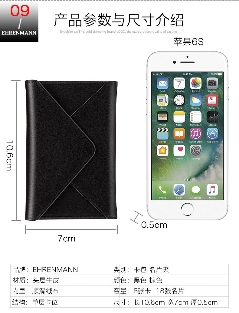伊恩玛真皮名卡包超薄名片夹 多功能卡片包驾驶证皮套 高档进口头层牛皮 黑色
