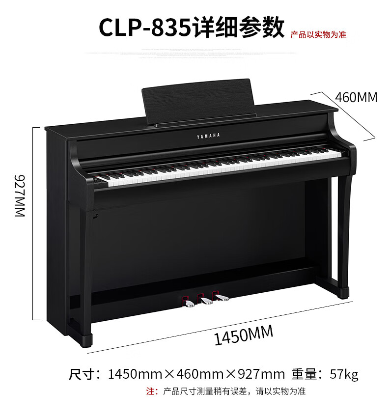 Yamaha (YAMAHA) electric piano CLP835 825 vertical 88-key hammer adult and children home professional electronic piano clp825 CLP825R rosewood color + original headphone gift bag