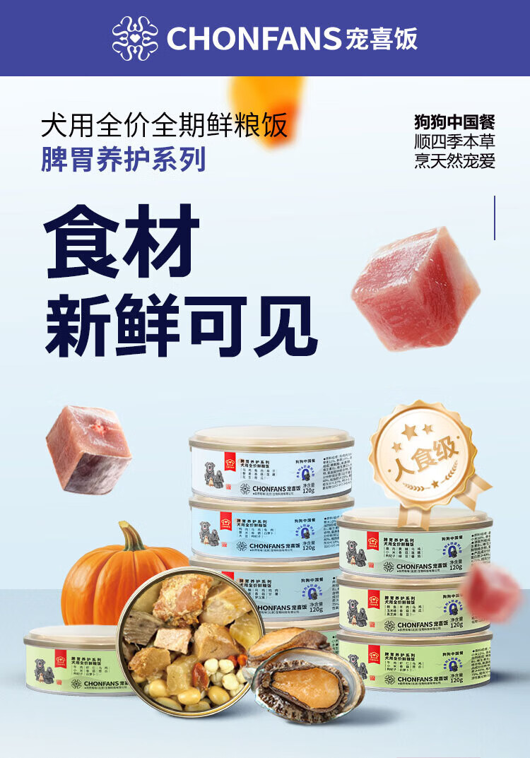 宠喜饭全价狗湿粮主食罐鲜粮饭进口牛肉泰迪博美脾胃养护基础款840g*2盒