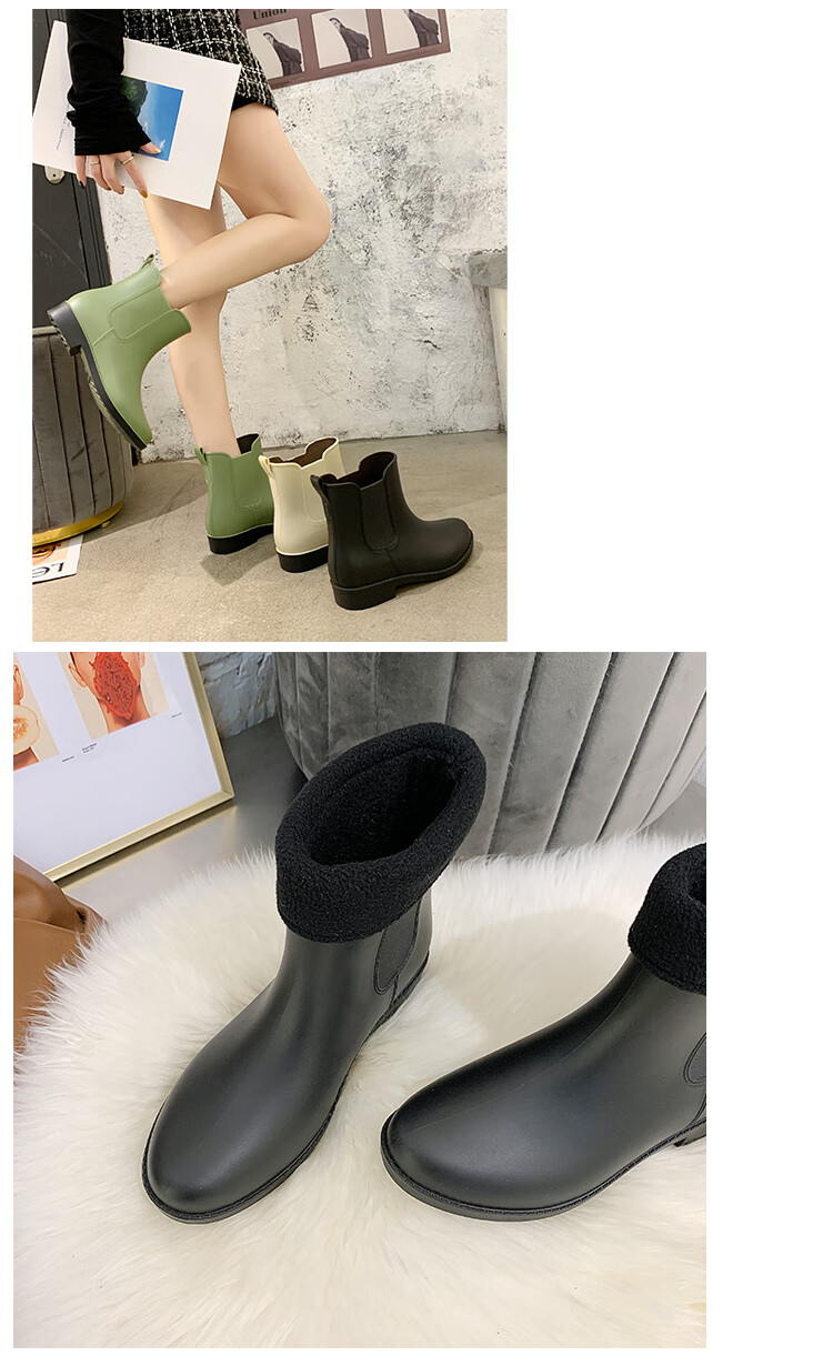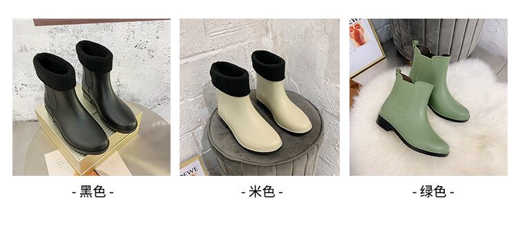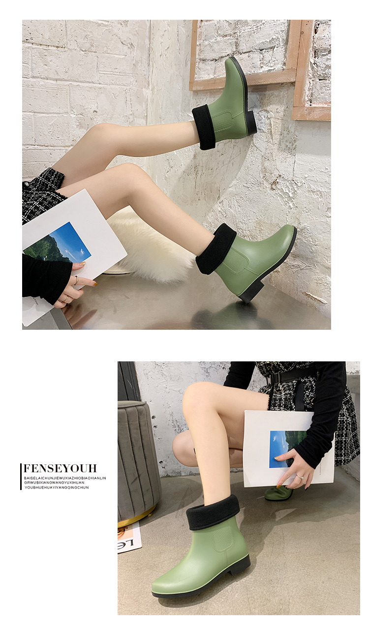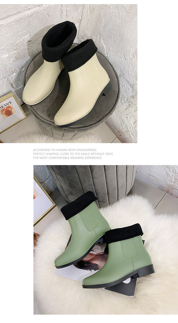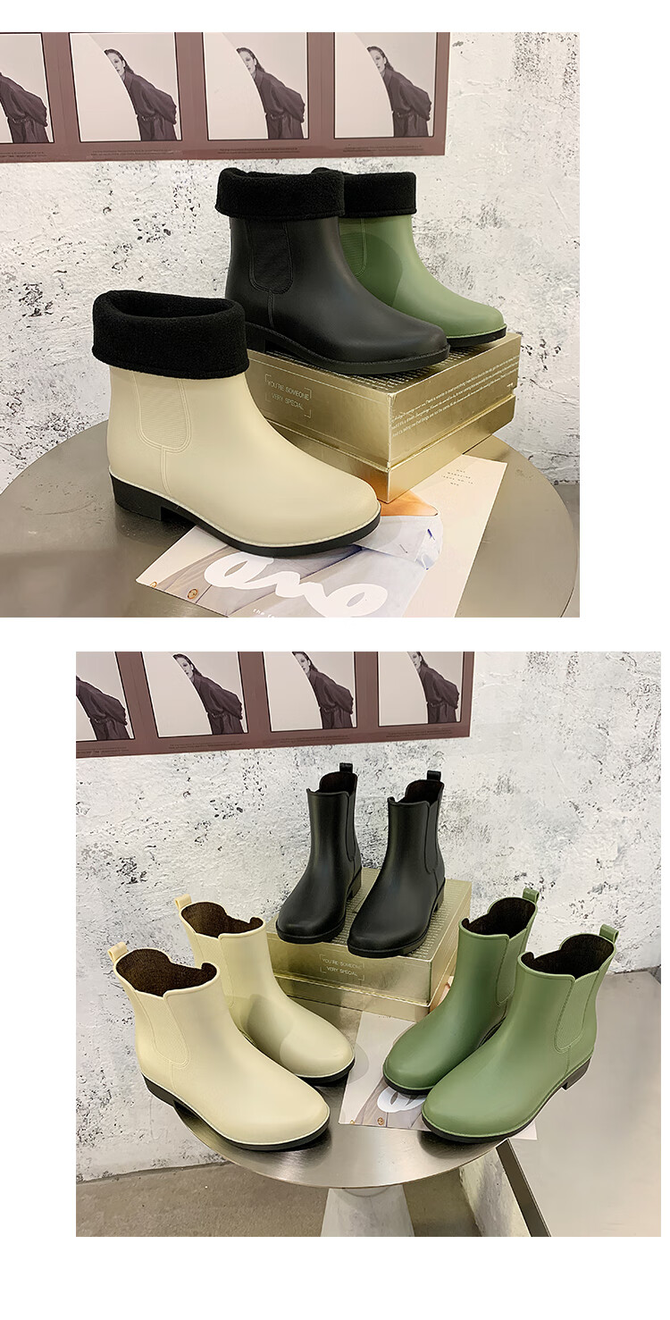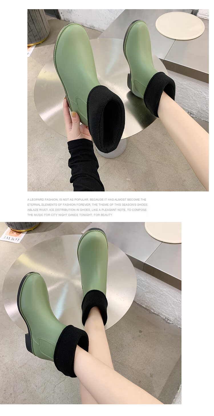 雨靴女时尚百搭雨鞋短筒防雨防滑水靴低帮成人外穿水鞋保暖防水鞋 绿色 36