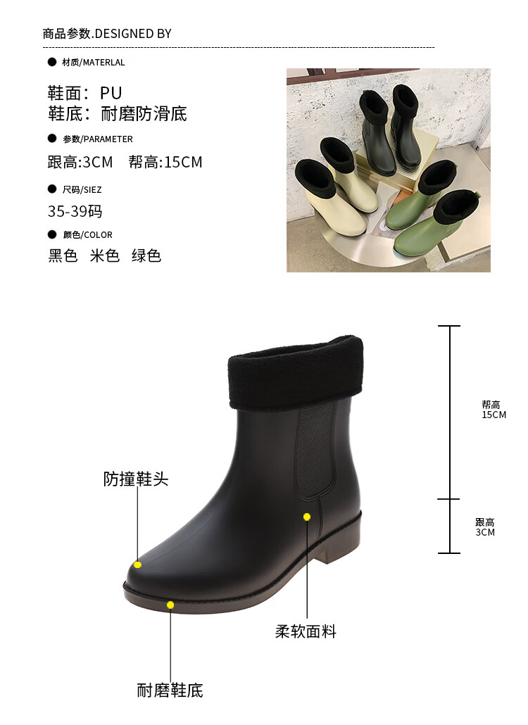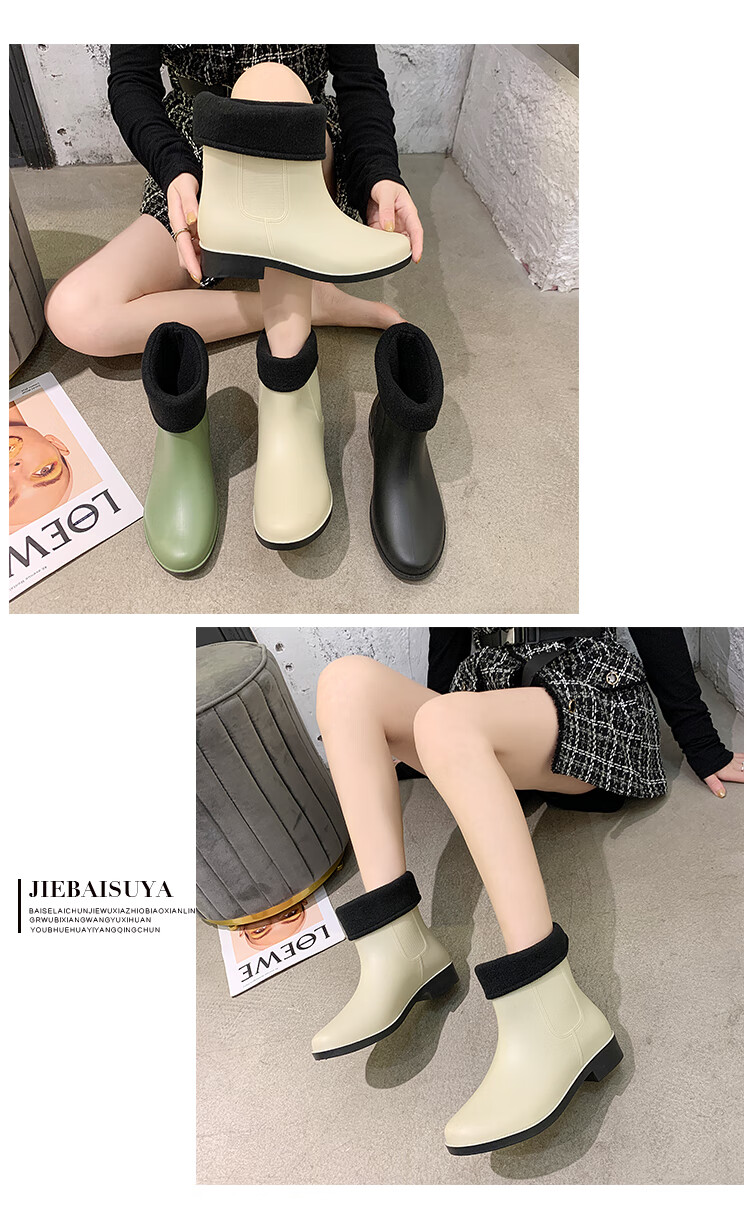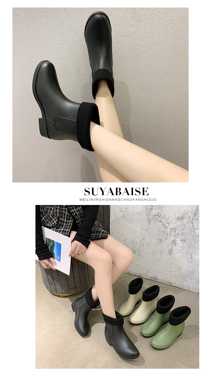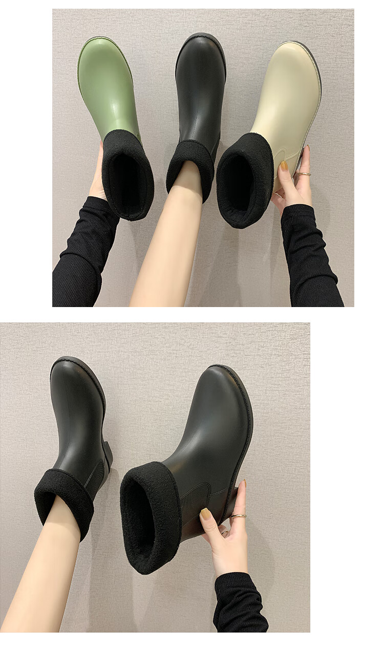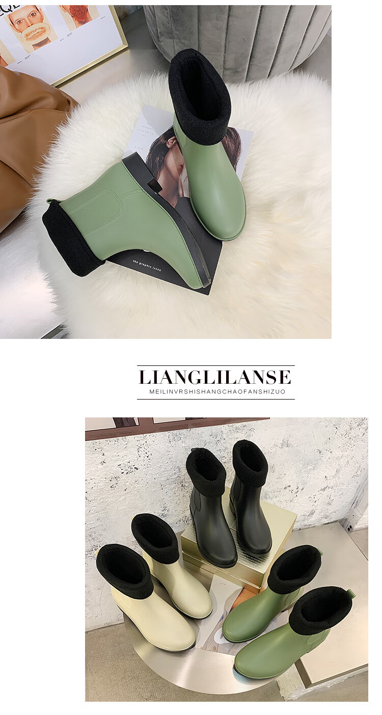 雨靴女时尚百搭雨鞋短筒防雨防滑水靴低帮成人外穿水鞋保暖防水鞋 绿色 36