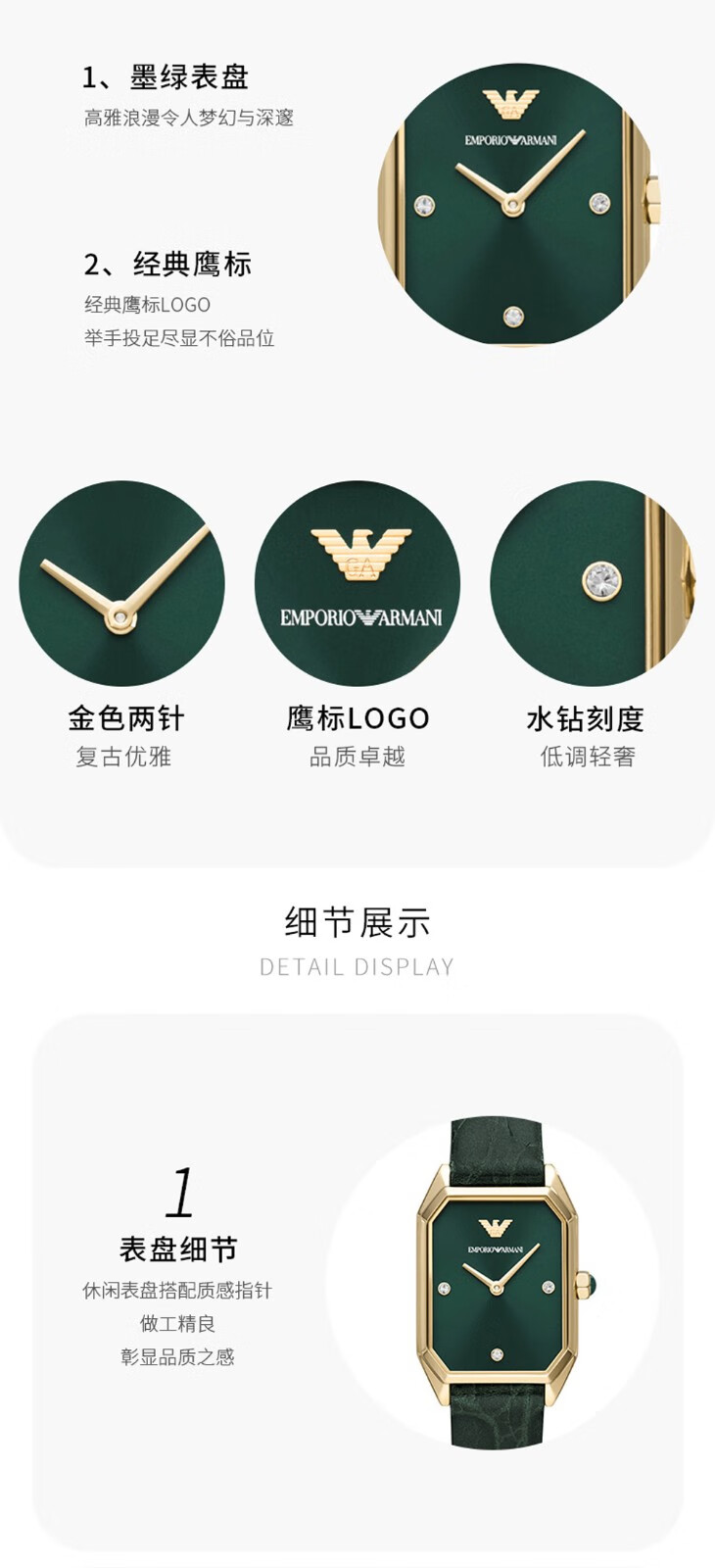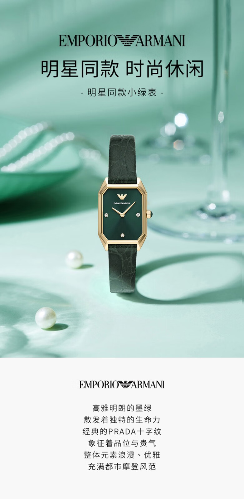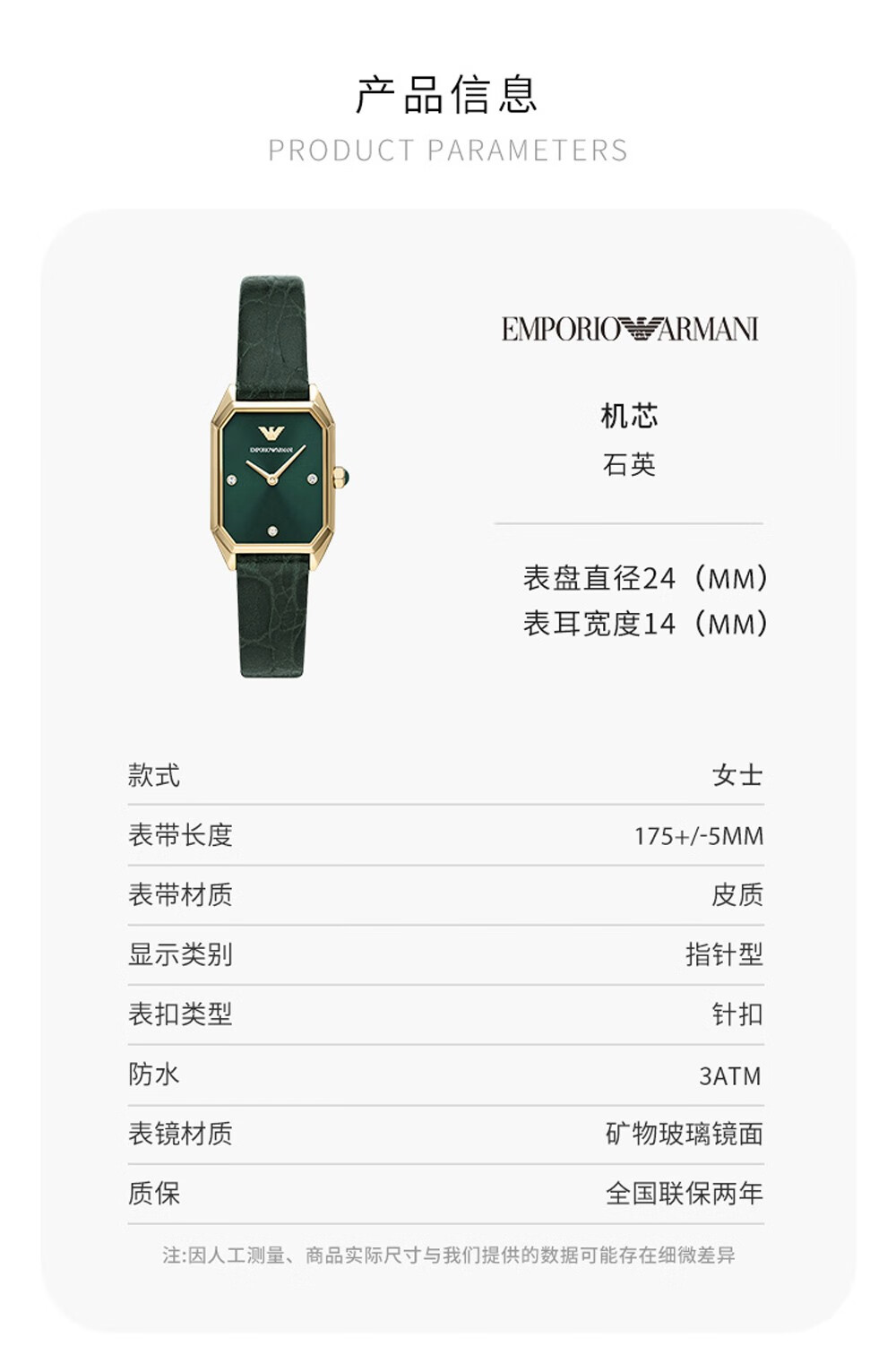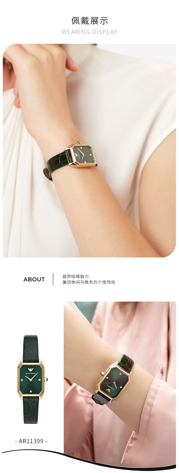 EMPORIO ARMANI阿玛尼手表女方盘皮带石英女士手表七夕情人节生日礼物送女友老婆 网红小绿表AR11149-咨询立减