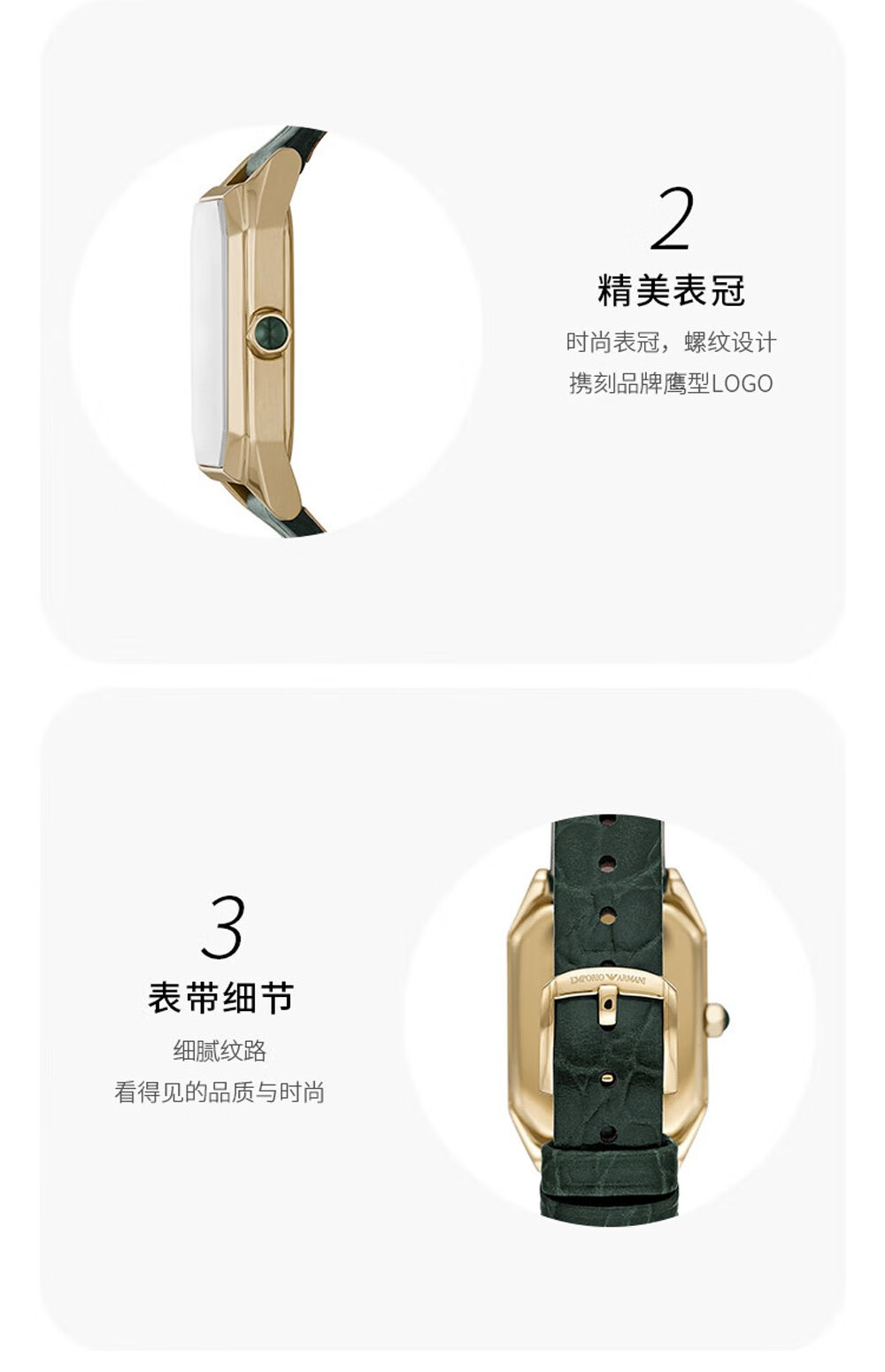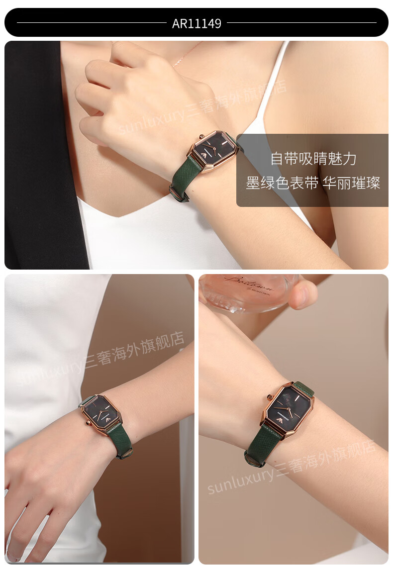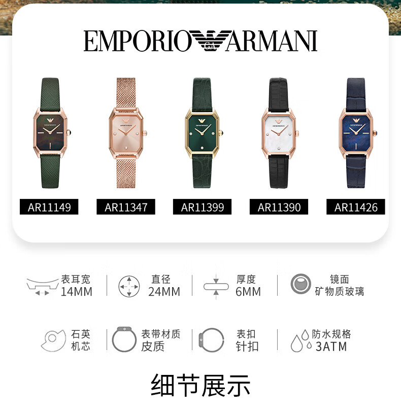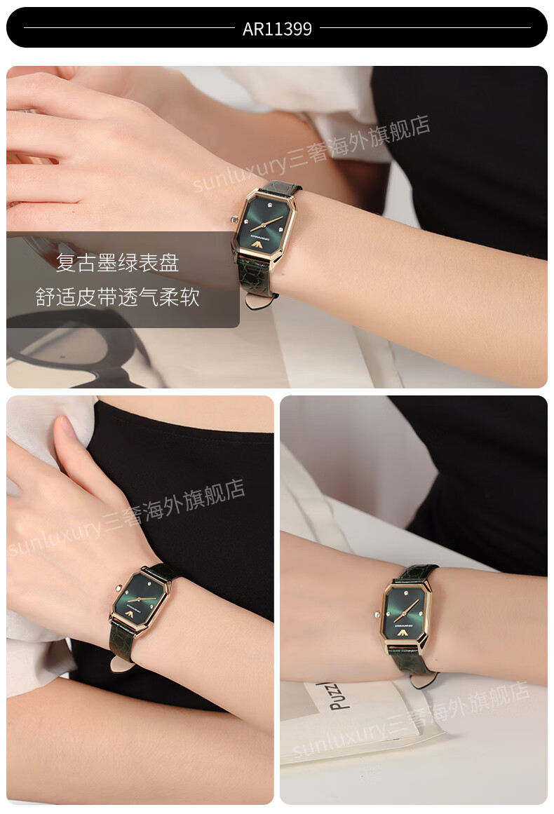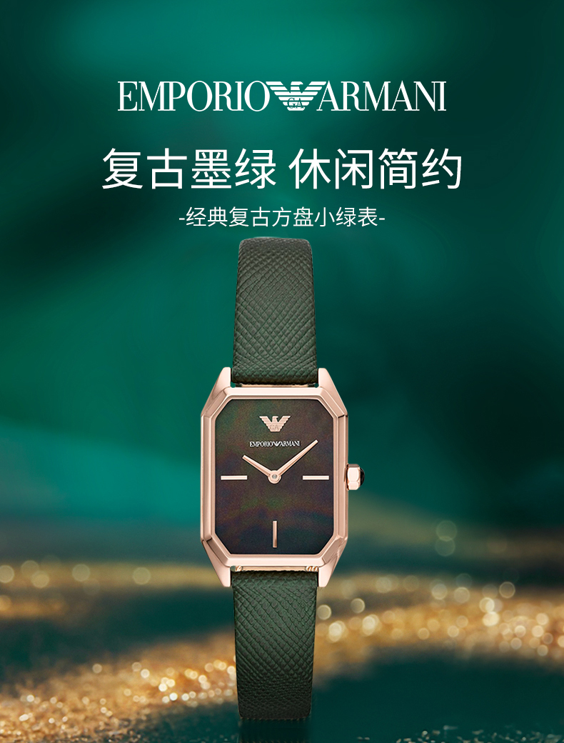 EMPORIO ARMANI阿玛尼手表女方盘皮带石英女士手表七夕情人节生日礼物送女友老婆 网红小绿表AR11149-咨询立减