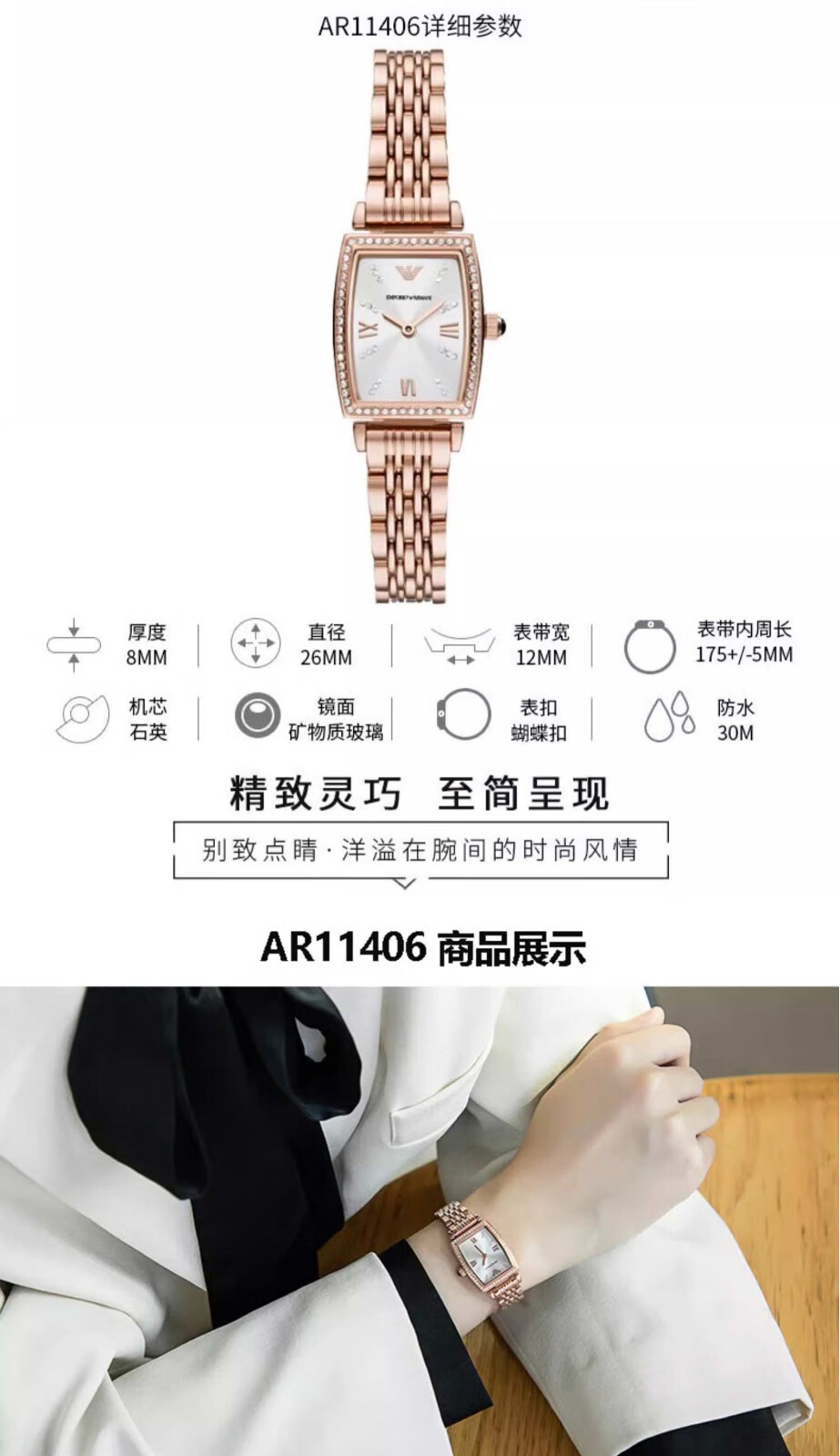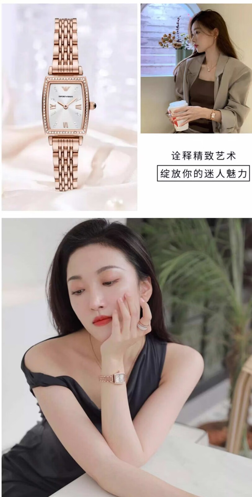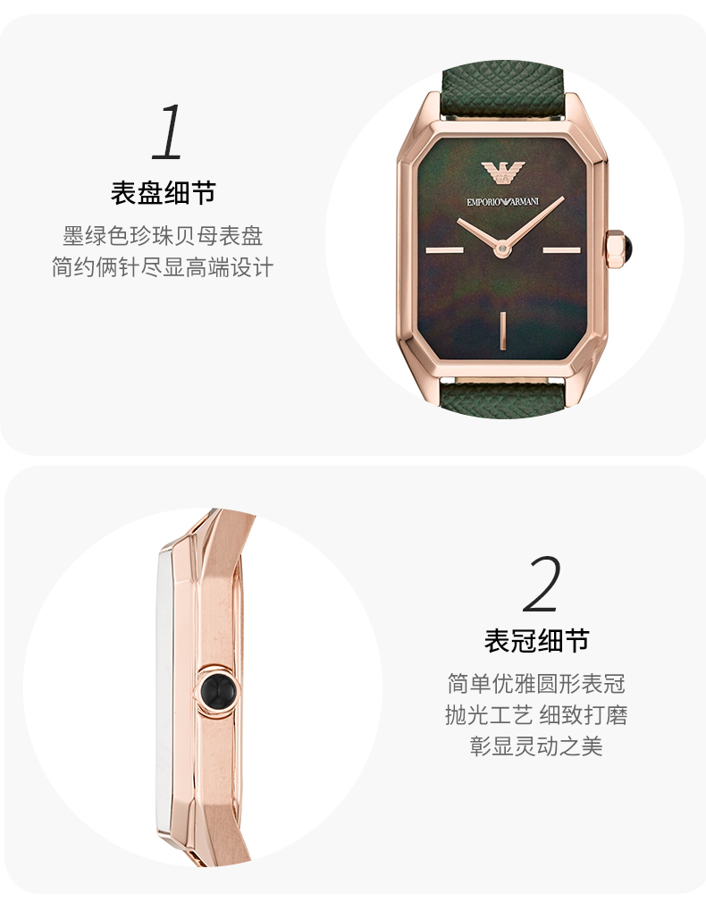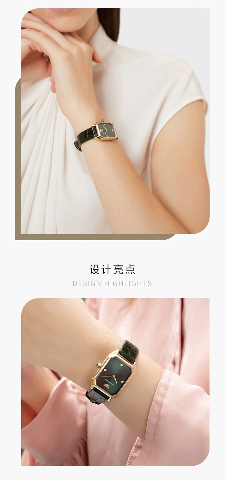 EMPORIO ARMANI阿玛尼手表女方盘皮带石英女士手表七夕情人节生日礼物送女友老婆 网红小绿表AR11149-咨询立减