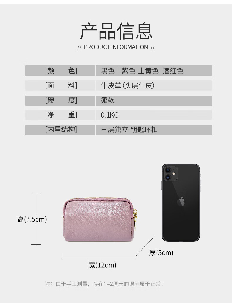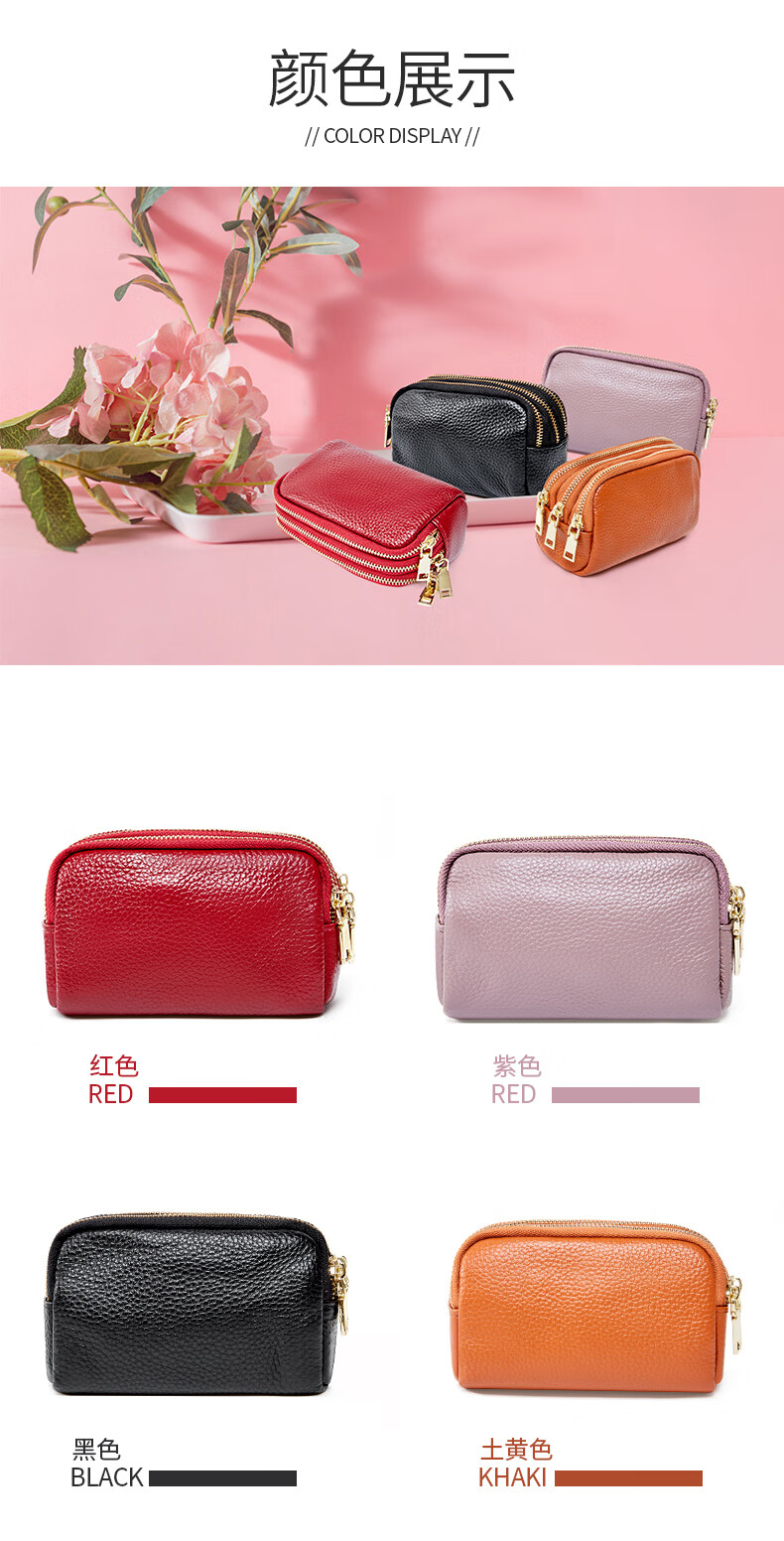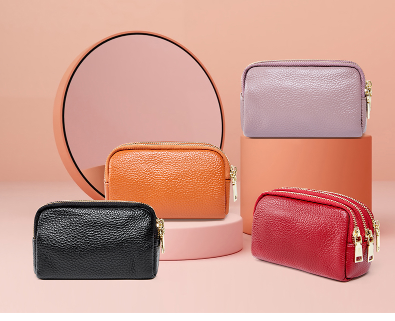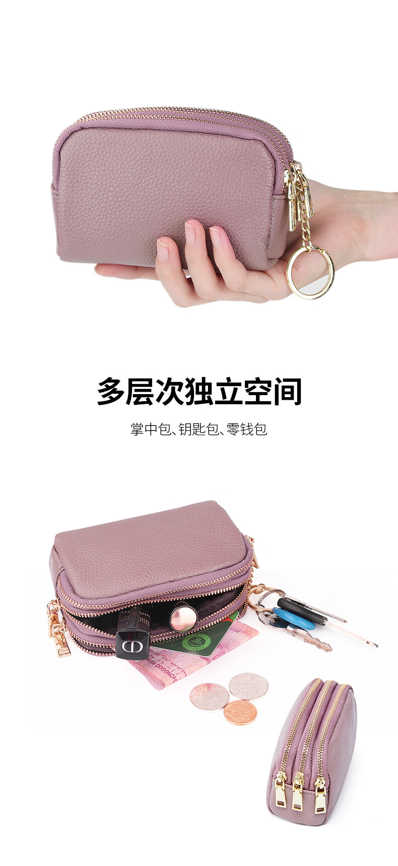 Translator cowhide wallet women's short portable women's wallet clutch bag student coin purse purple