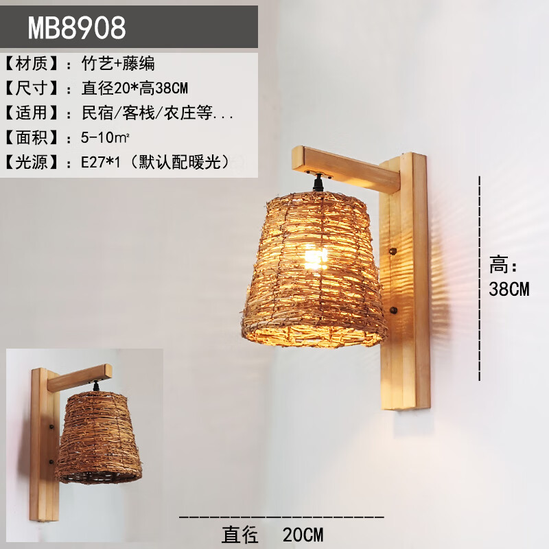 IGIFTFIRE日式竹编灯个性创意中式餐厅过道灯民宿酒店竹艺床头壁灯 MB9194