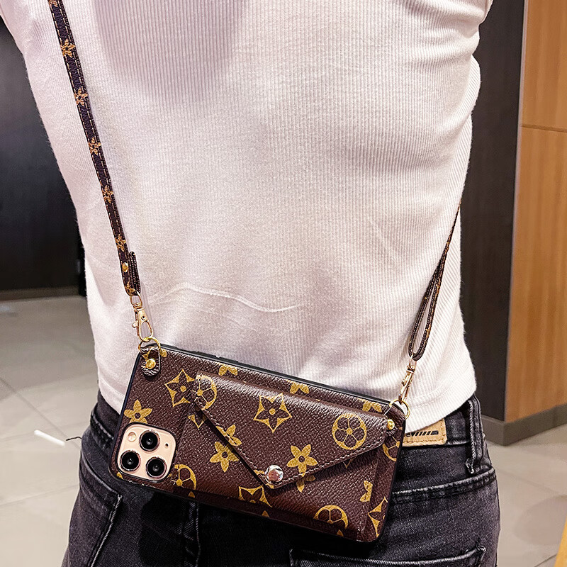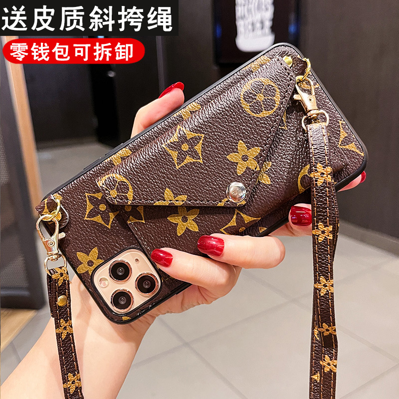 胜枫 苹果13promax手机壳新款13Pro拆卸零钱包插卡斜挎苹果12背带式挂绳简约潮款后苹果11外壳 苹果13promax  配斜挎长绳