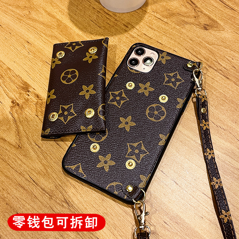 胜枫 苹果13promax手机壳新款13Pro拆卸零钱包插卡斜挎苹果12背带式挂绳简约潮款后苹果11外壳 苹果13promax 配斜挎长绳