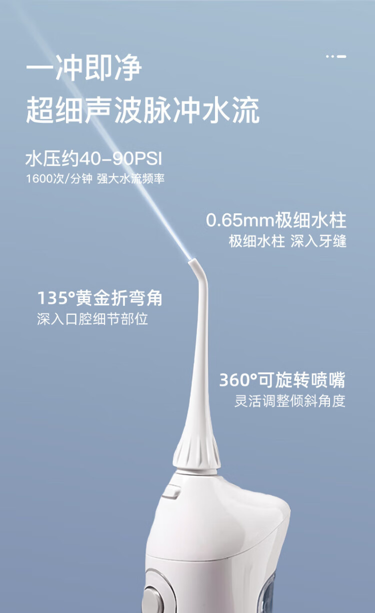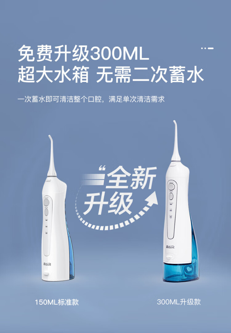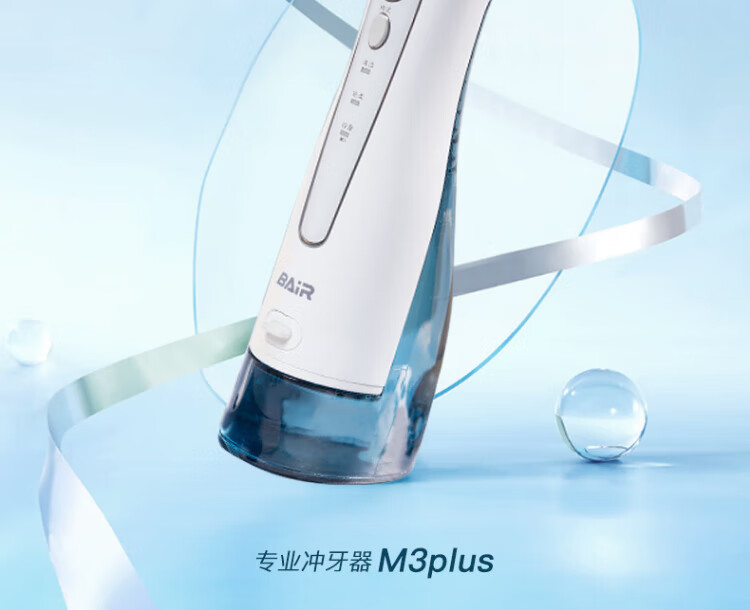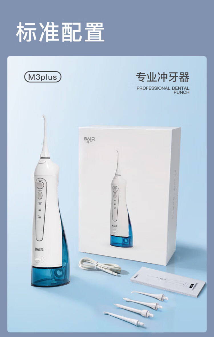 BAIR (BAIR) Enjuagador dental eléctrico M3 para uso doméstico, portátil, limpieza bucal, raspador dental, irrigador dental, raspador, limpieza de aparatos ortopédicos, regalo para amigos y amigas, tanque de agua grande M3Plus de 300 ml, blanco, 5 boquillas