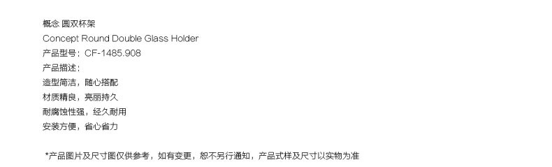 美标挂件浴室单杯架双杯架材质漱口杯卫生间玻璃杯架FFAS1484概念圆 加厚玻璃FFAS1484概念圆单杯架