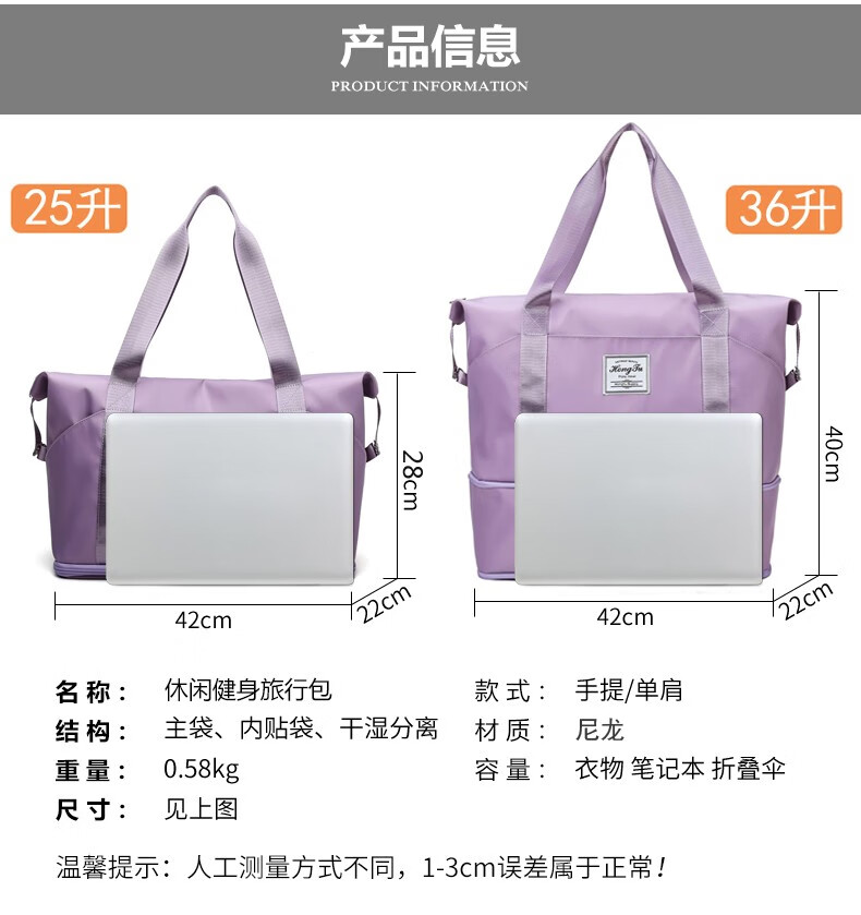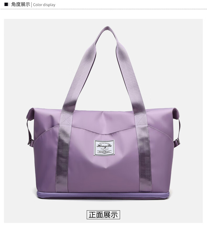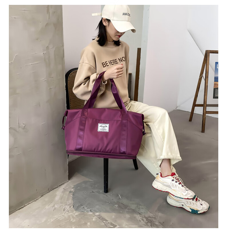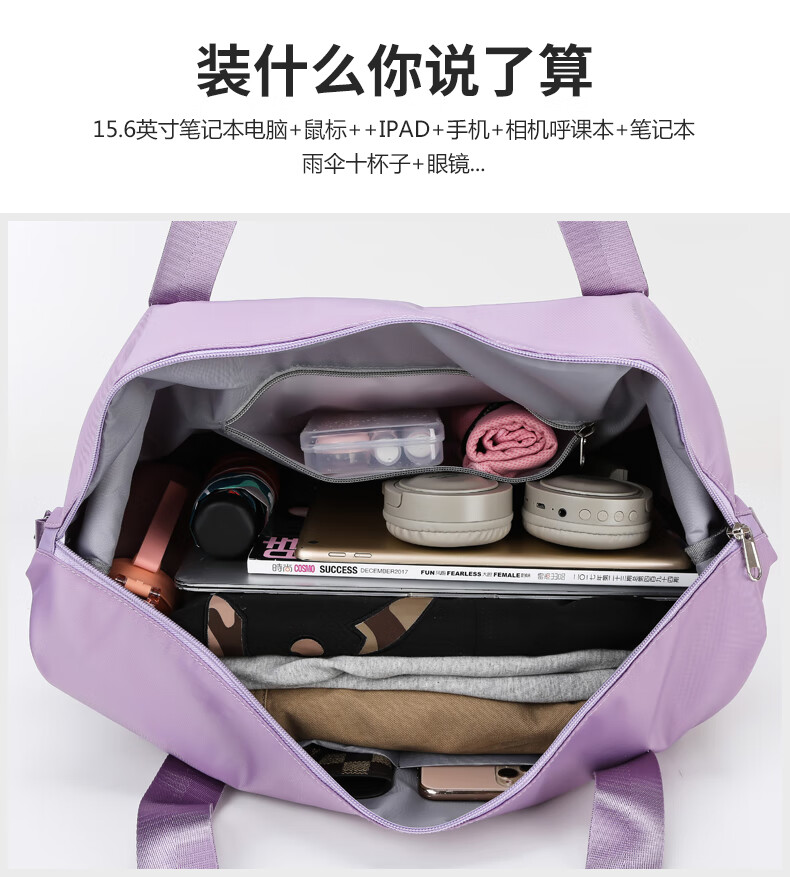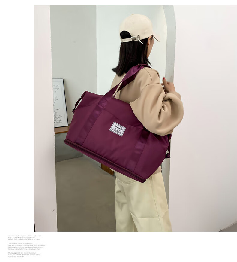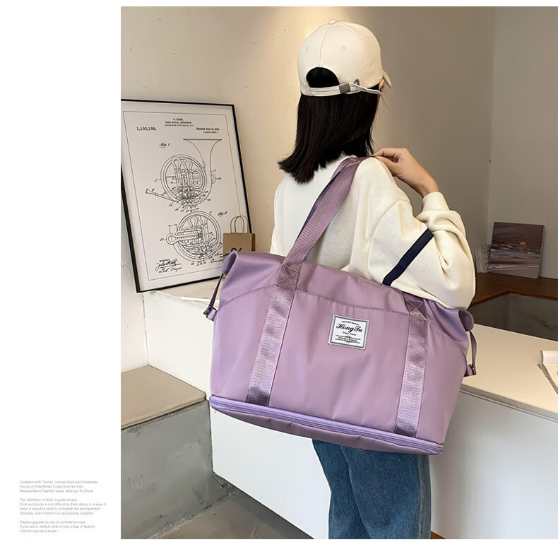 Shengteng bolsa de viaje para mujer con separación seca y húmeda, bolsa de equipaje portátil de gran capacidad, bolsa de viaje de corta distancia, bolsa de viaje de negocios, bolsa de equipaje, color morado claro 36L