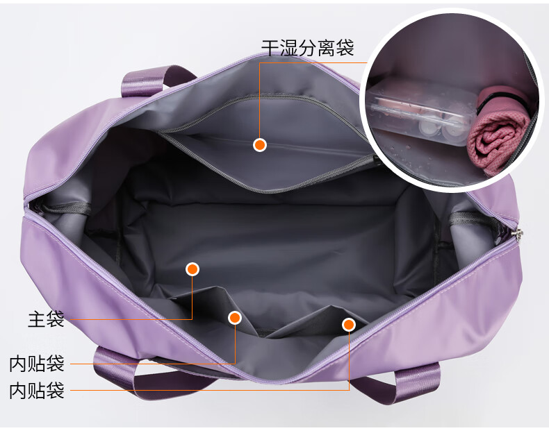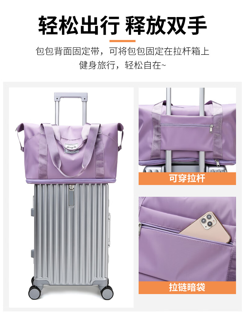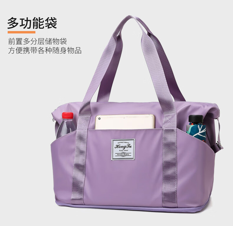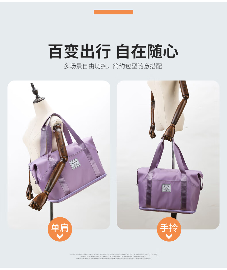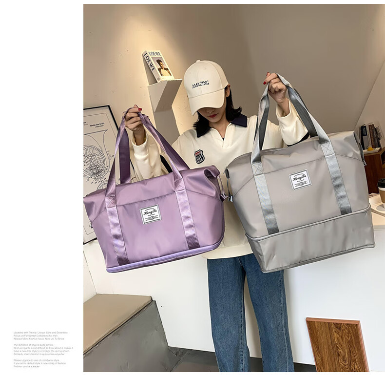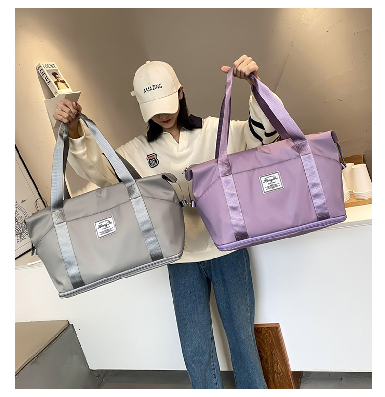 Shengteng bolsa de viaje para mujer con separación seca y húmeda, bolsa de equipaje portátil de gran capacidad, bolsa de viaje de corta distancia, bolsa de viaje de negocios, bolsa de equipaje, color morado claro 36L