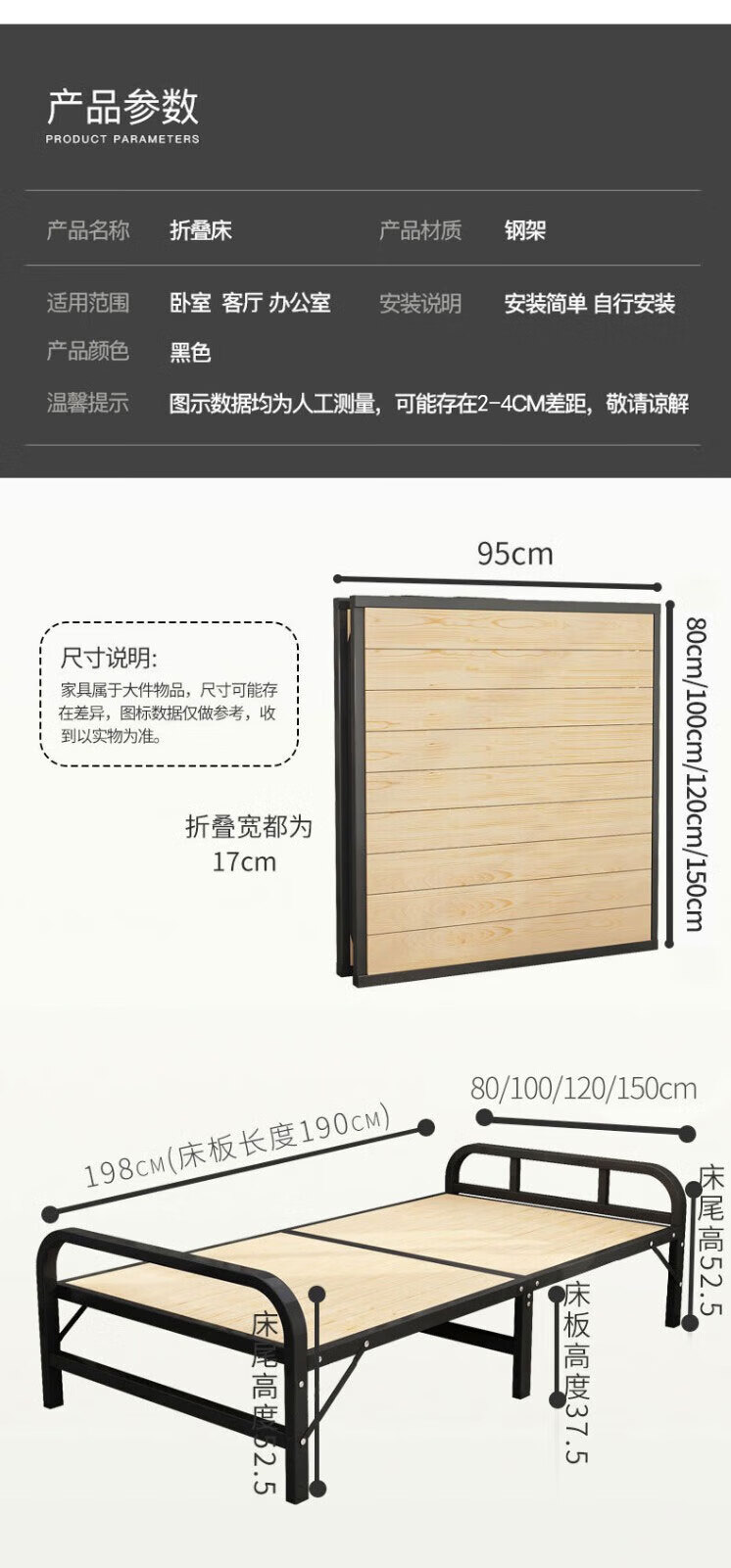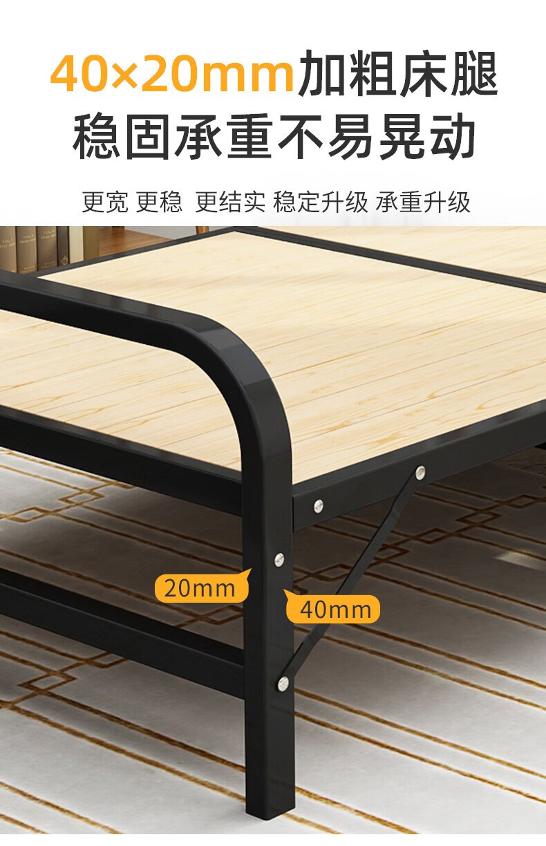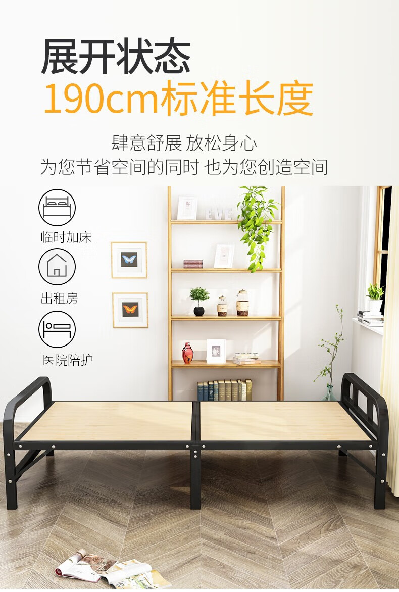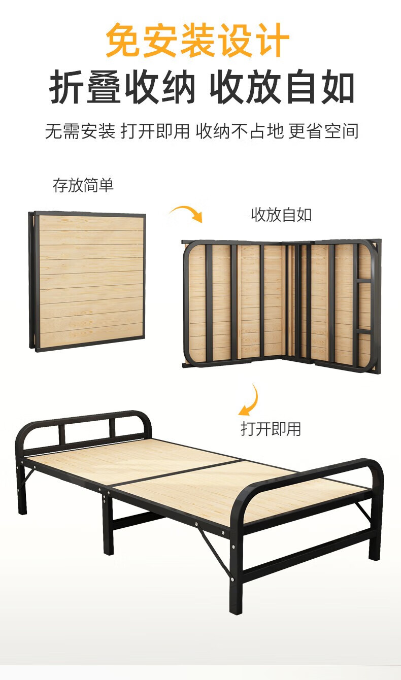 万坤(WANKUN)折叠床单人床(免安装)午休床午睡床行军床医院家用陪护硬板床铁床 90*200cm(加厚环保实木板床) 真木板材