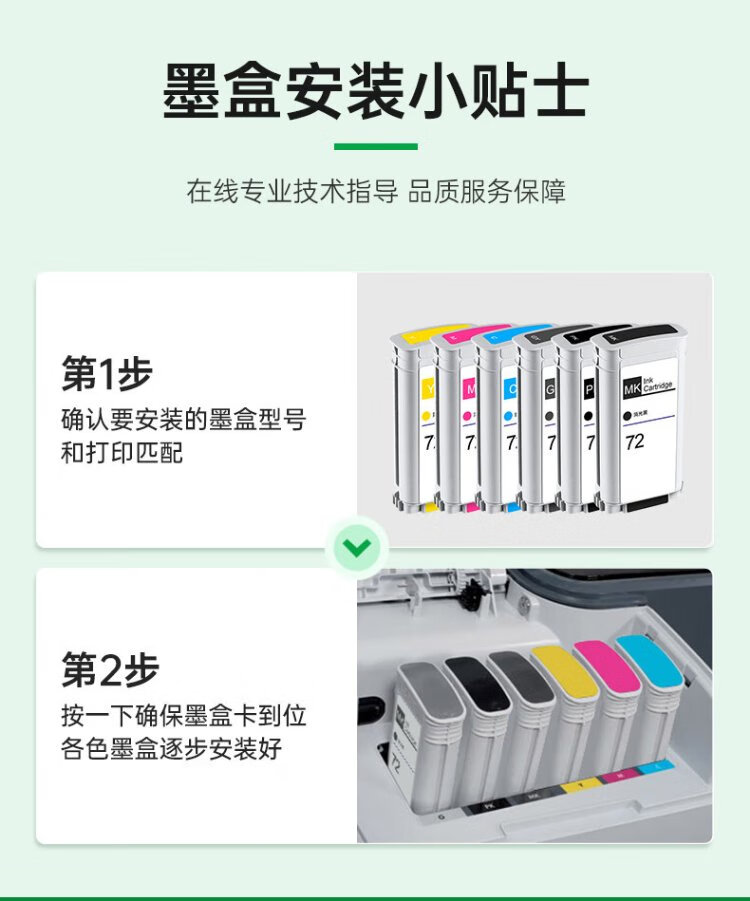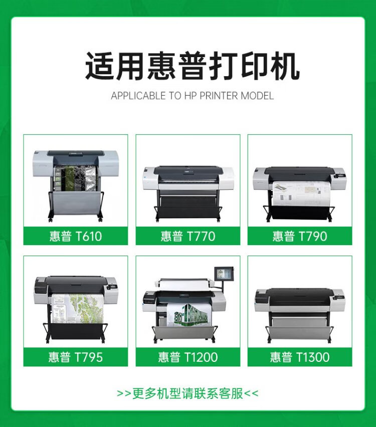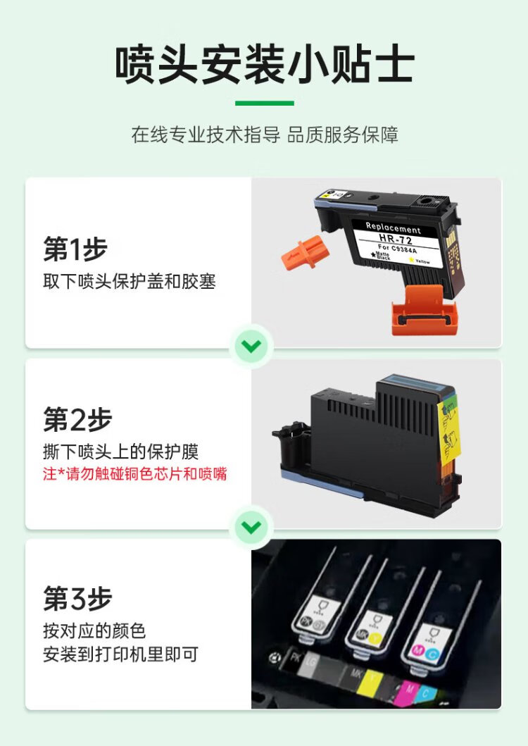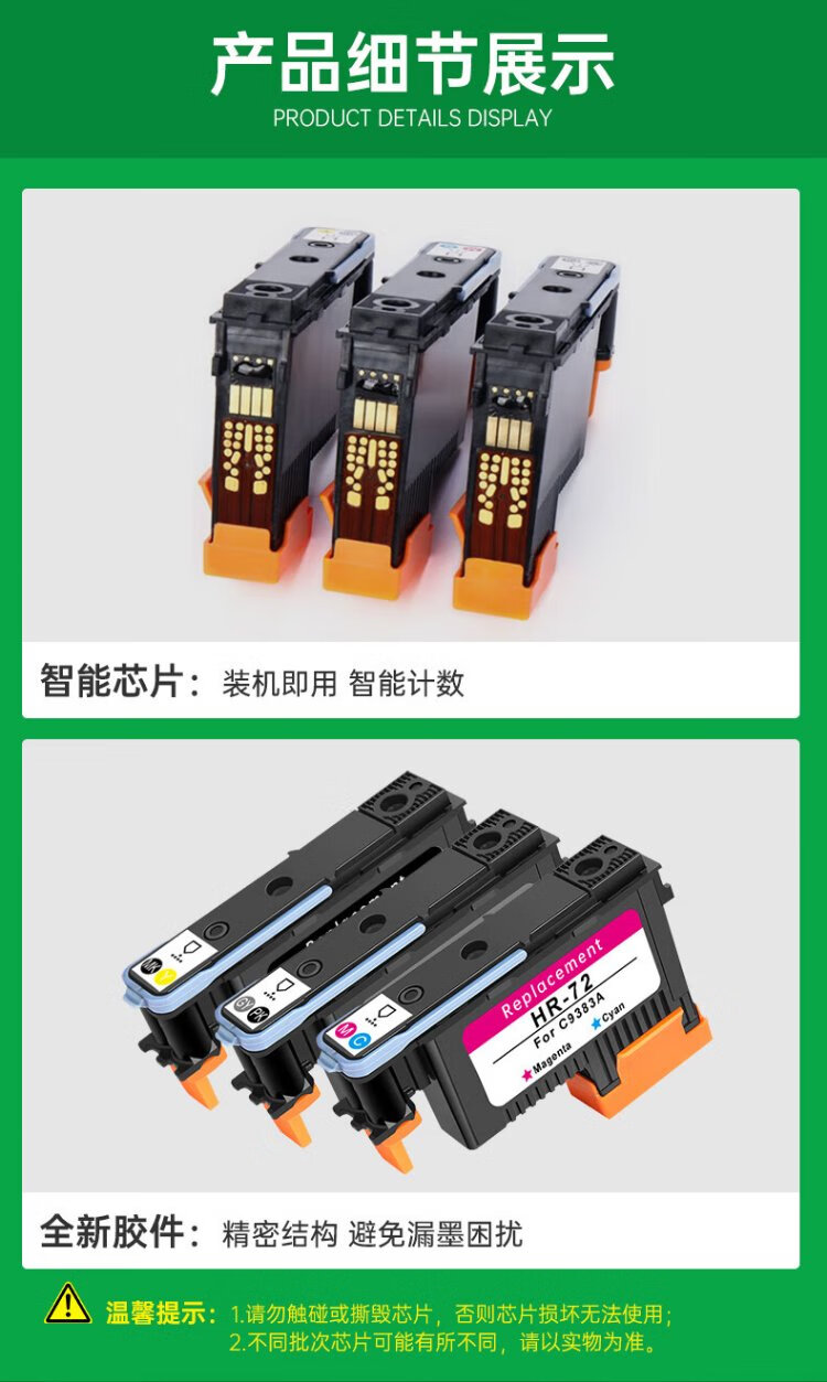 Grünes Gitter ist geeignet für HP T795 T790 T610 T770 T1300 T2300 T1708 Plotterdruckerdüse HP72 Druckkopf 3er-Set