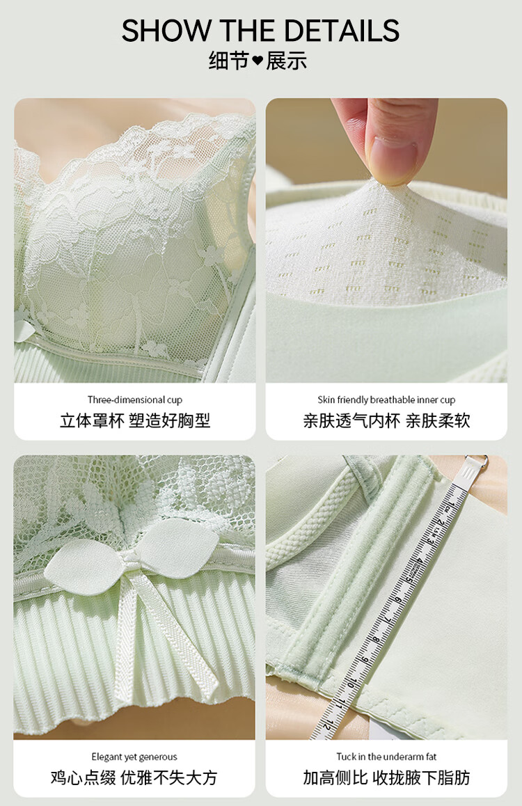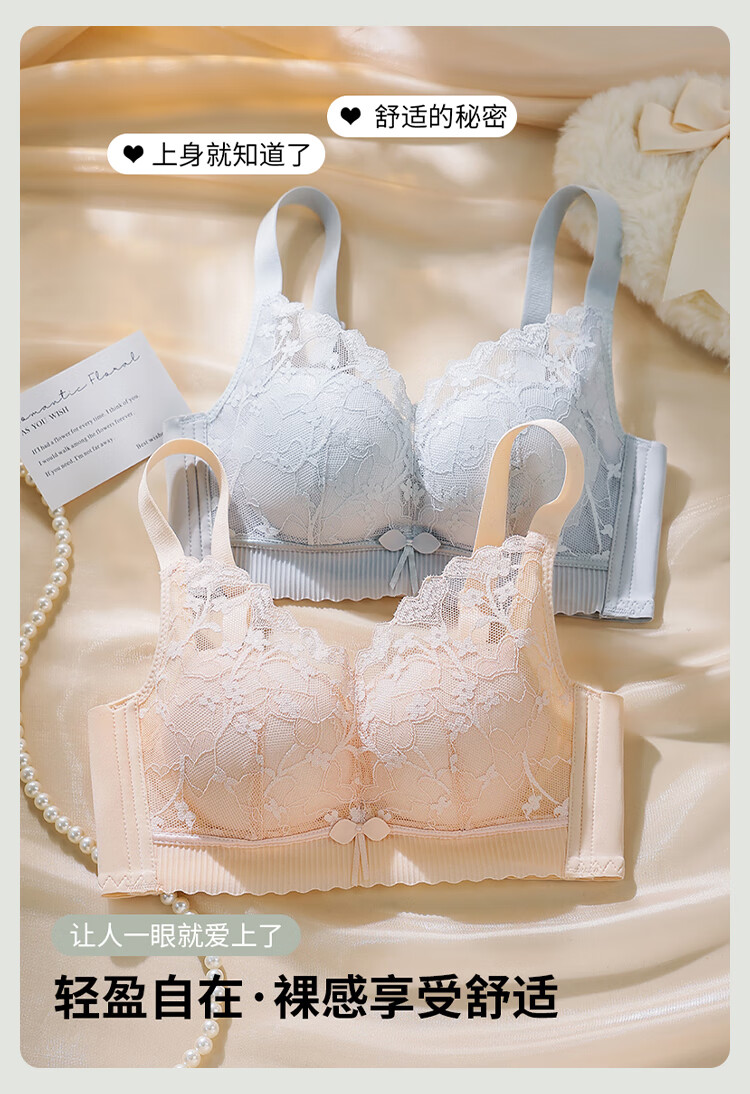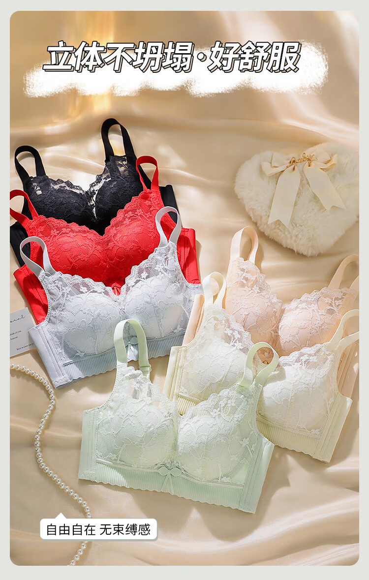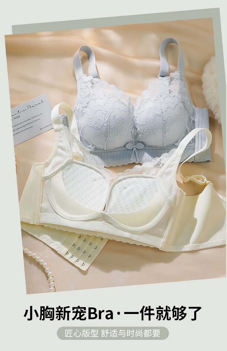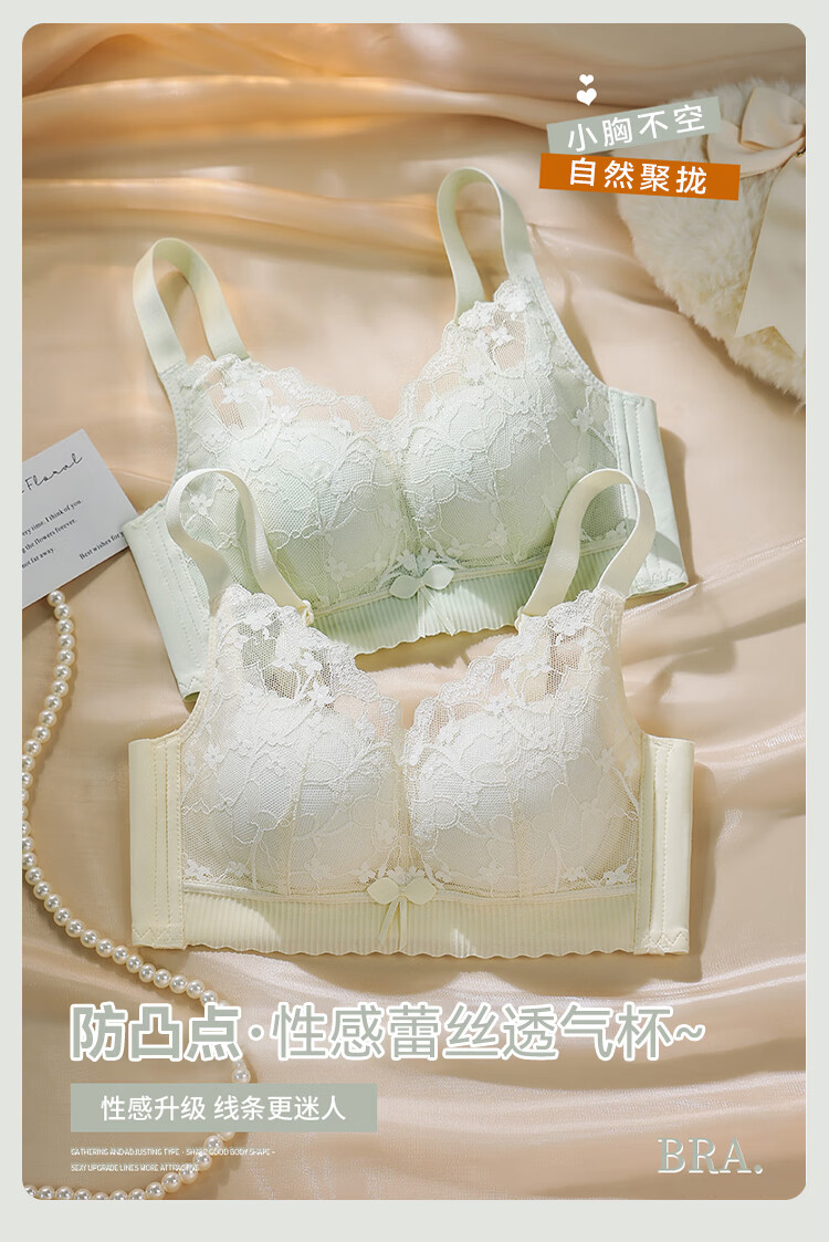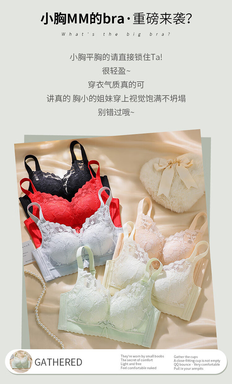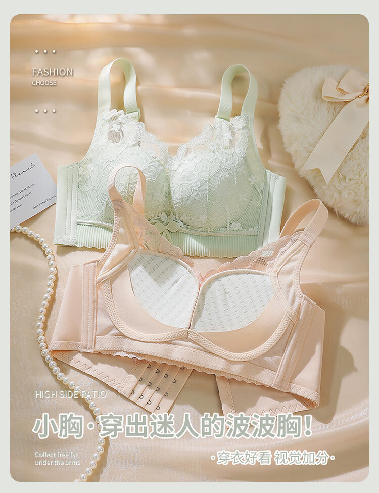 FitonTon underwear for women with small breasts, push-up bra, sexy lace breast-reducing anti-sagging top thin bottom thick bra
