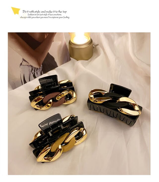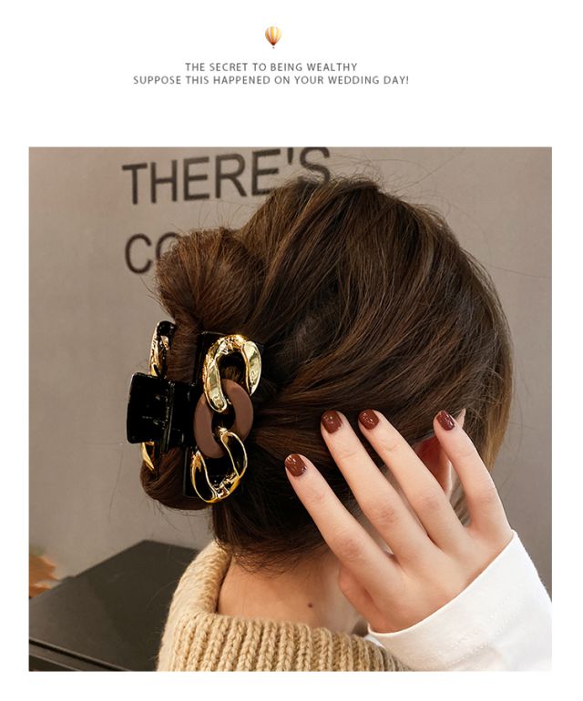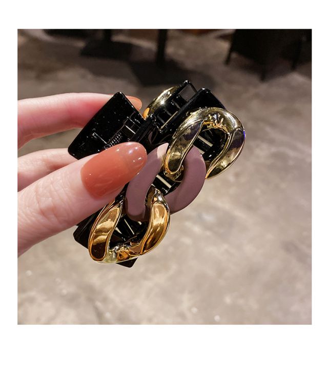 BARY REEF headwear hairpin Internet celebrity metal chain hairpin at the back of the head women's French hair clip large Korean elegant temperament hairpin purple red clip