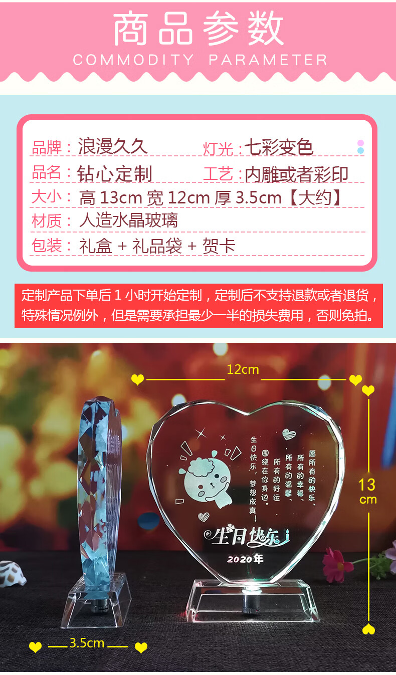 浪漫久久定制diy生日礼物送老婆老公女生男朋友结婚周年庆摆件七夕情人节 大钻心【老婆奖+照片定制】