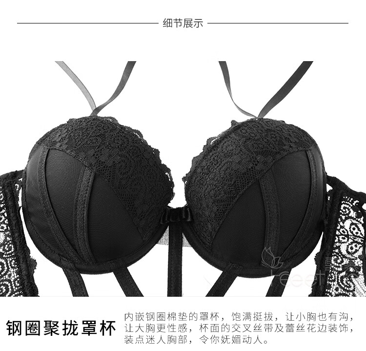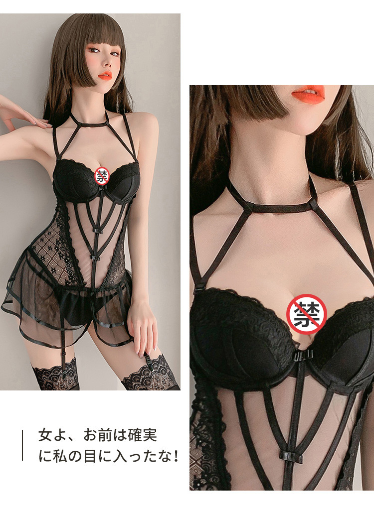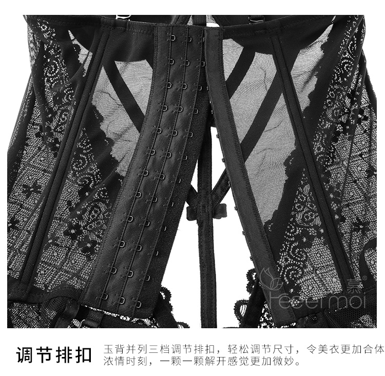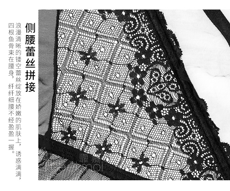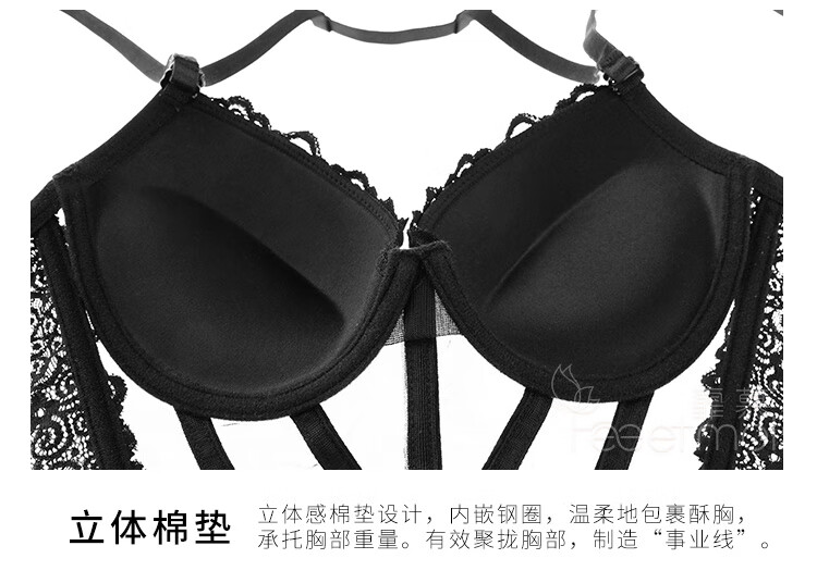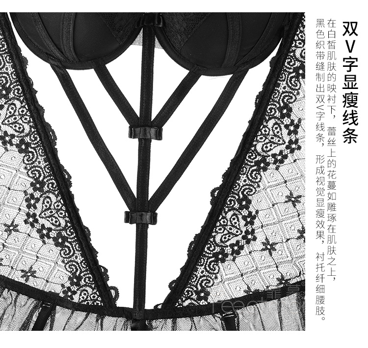 霏慕 情趣内衣性感蕾丝马甲套装透视棉垫网纱公主裙激情钢圈聚拢立体胸垫欧美风透视装 黑色马甲+吊袜带+T裤 均码