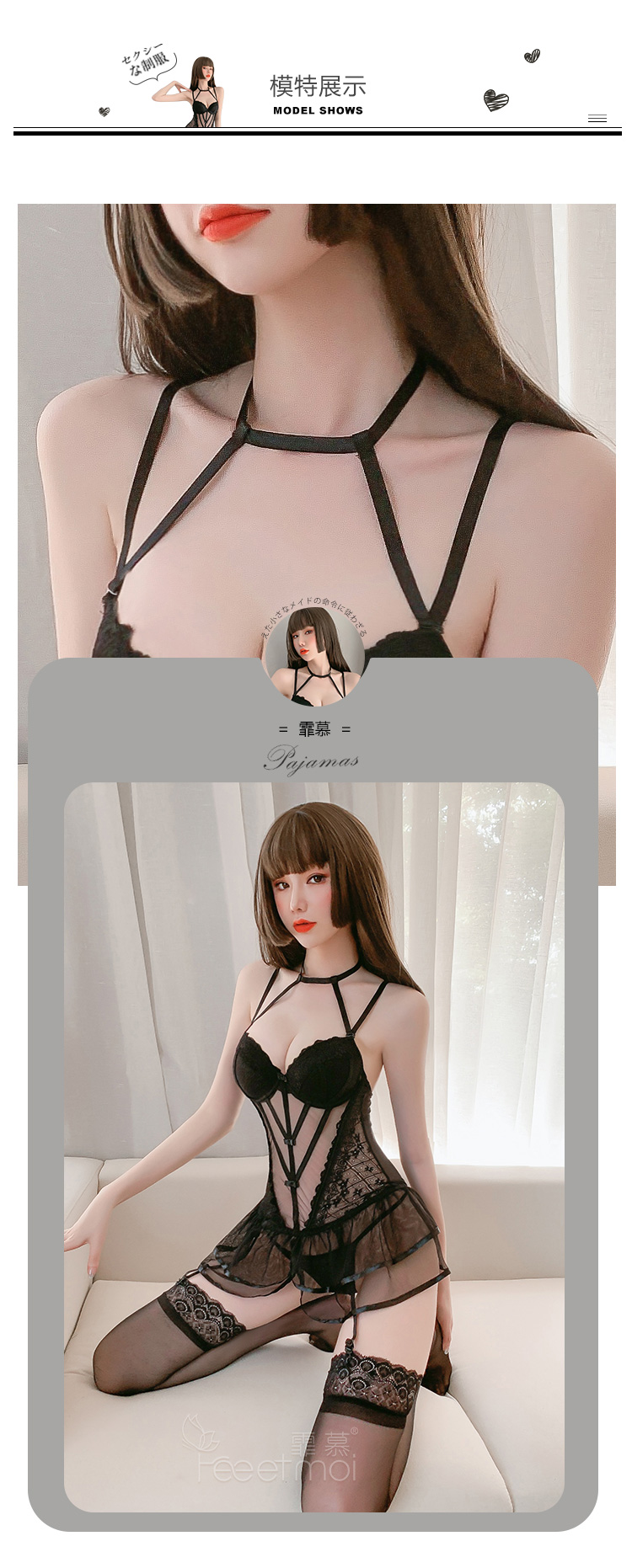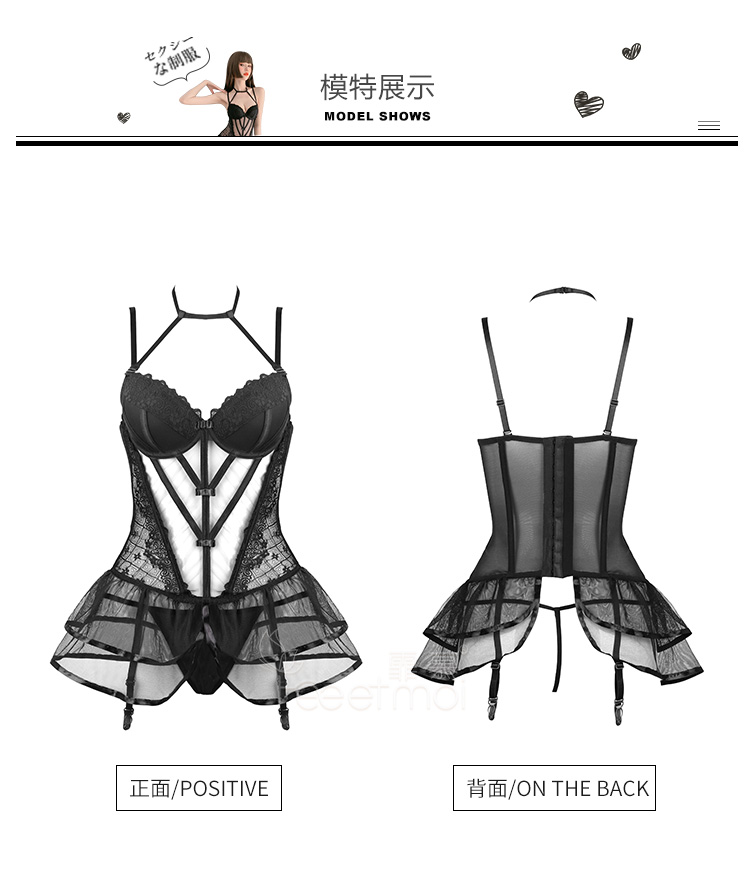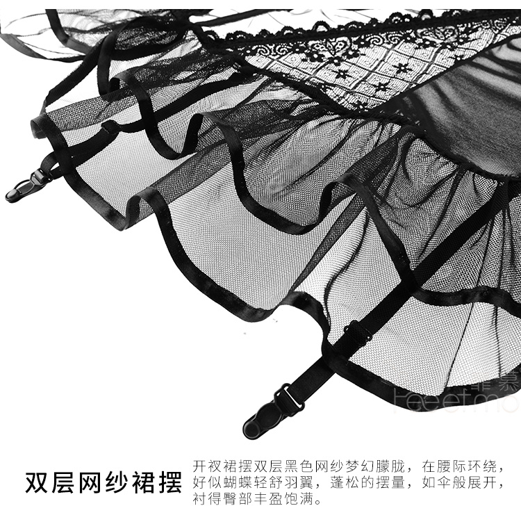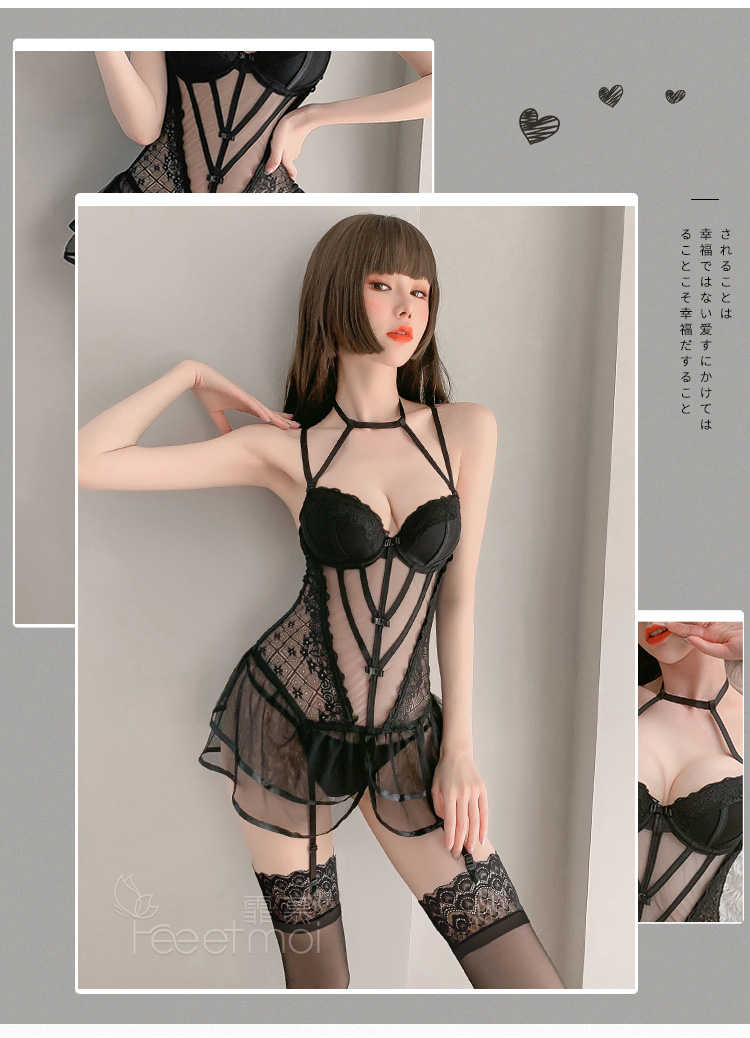 霏慕 情趣内衣性感蕾丝马甲套装透视棉垫网纱公主裙激情钢圈聚拢立体胸垫欧美风透视装 黑色马甲+吊袜带+T裤 均码