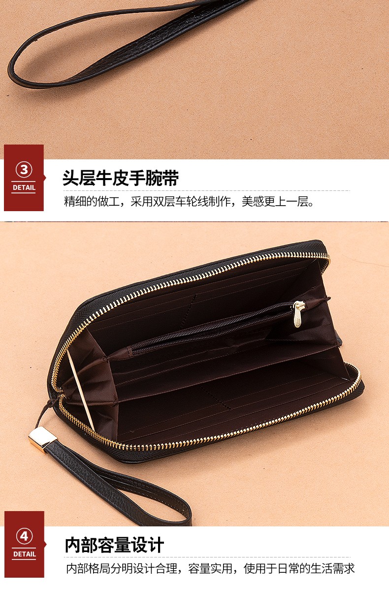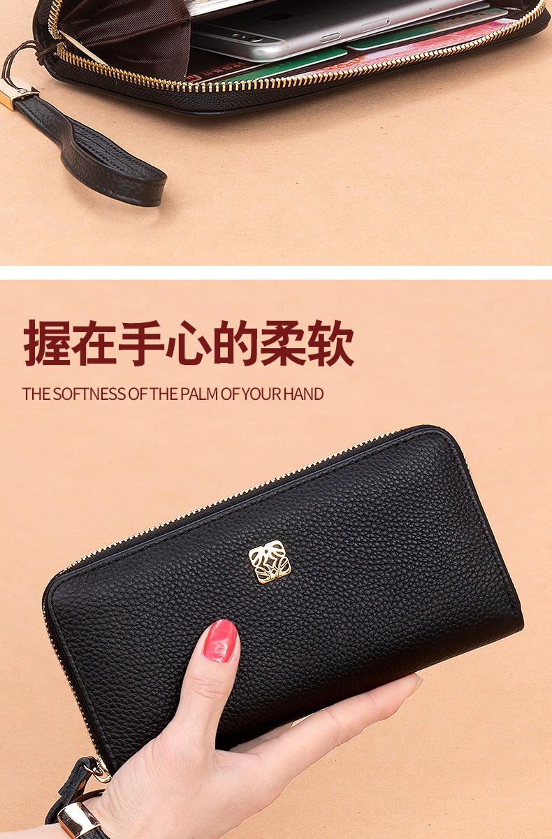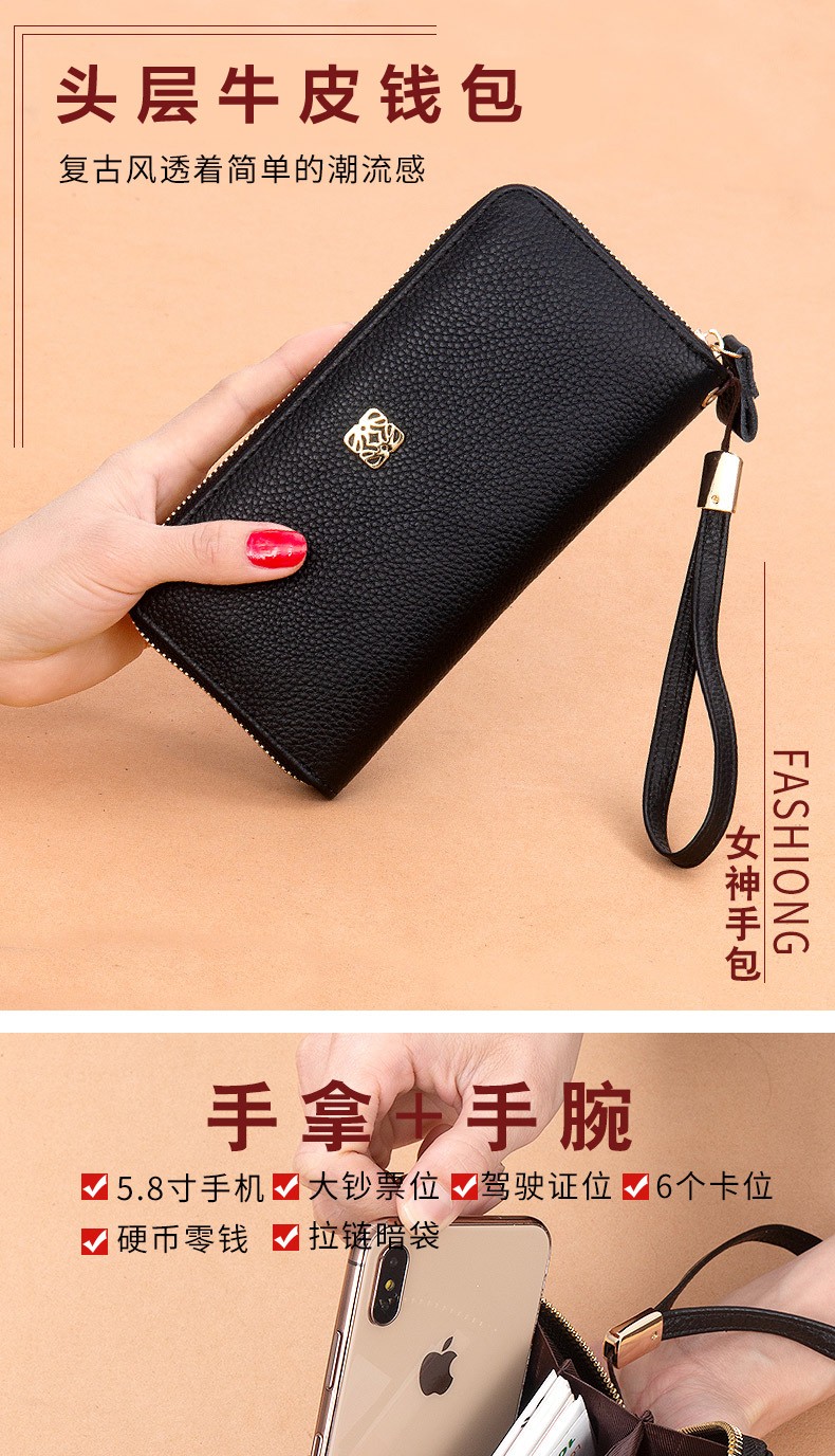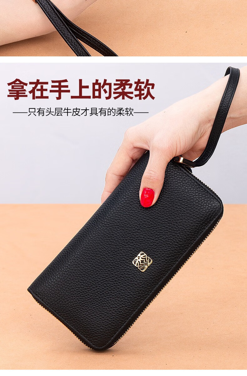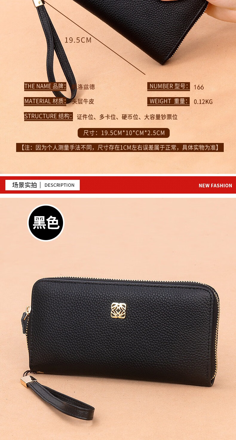 Golozd Tasche Damen 2025 neue Geldbörse Damen lange kleine Handtasche Clutch Bag echte First-Layer-Rindsleder-Brieftasche schwarz