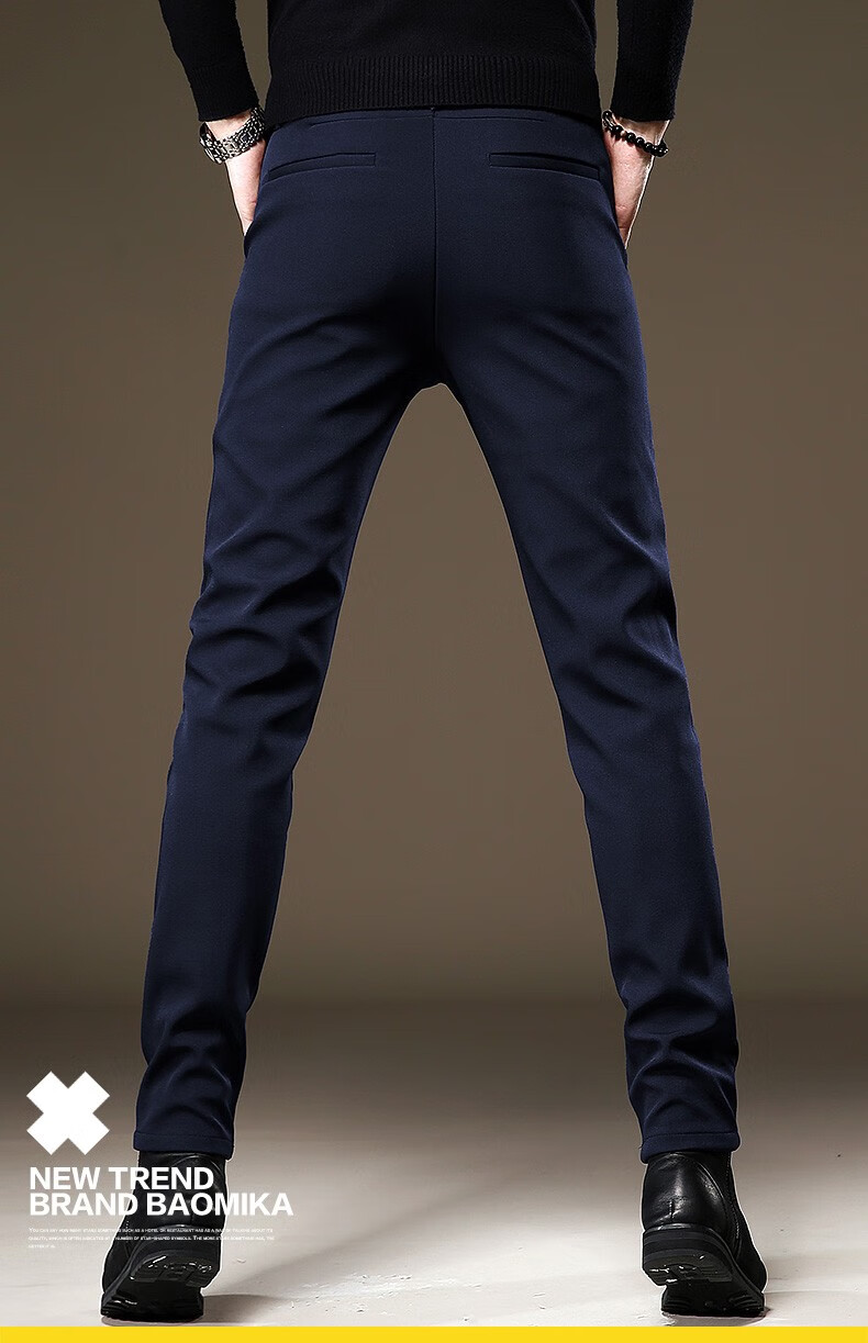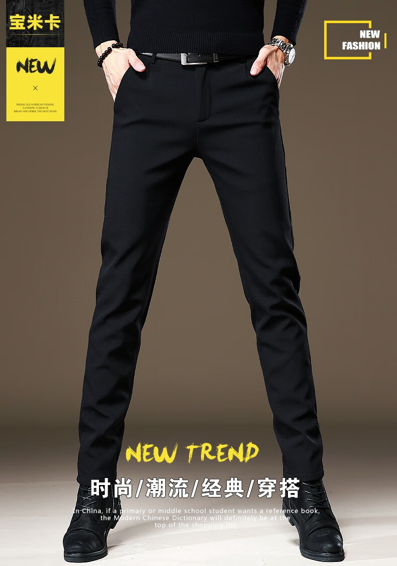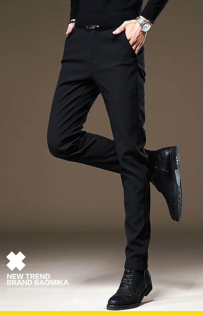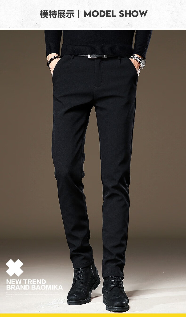 啄木鸟休闲裤男修身秋冬季加绒加厚新款裤子小脚弹力商务小西裤黑色长裤 RM-806黑色 32
