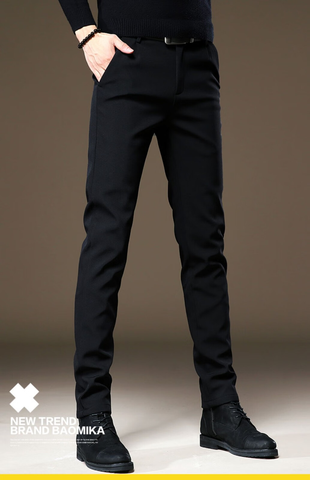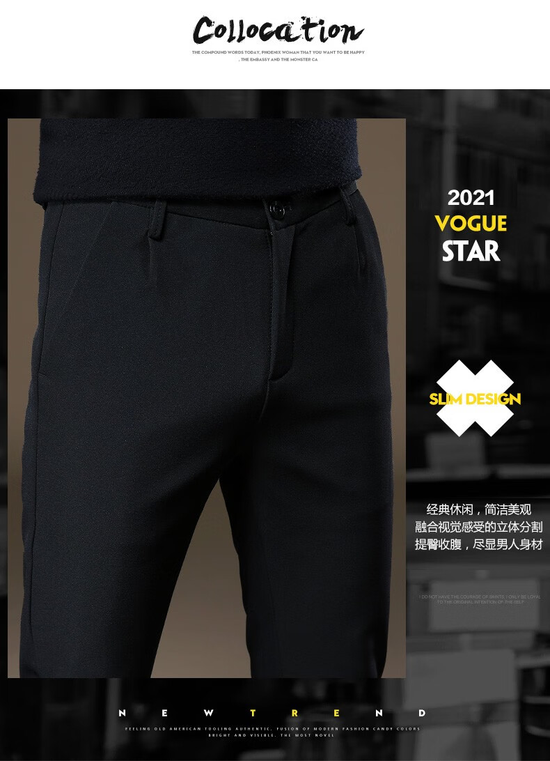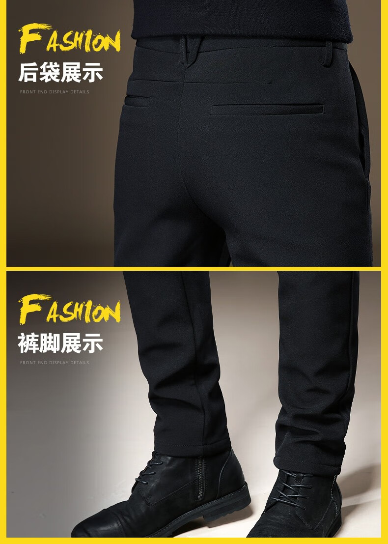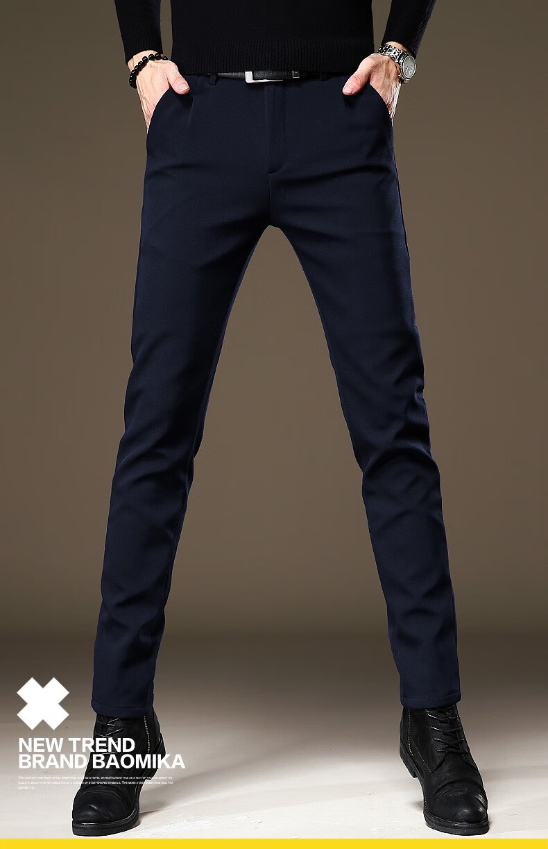 啄木鸟休闲裤男修身秋冬季加绒加厚新款裤子小脚弹力商务小西裤黑色长裤 RM-806黑色 32