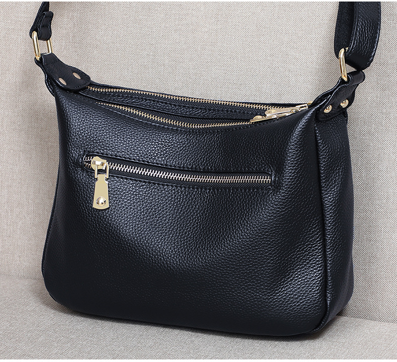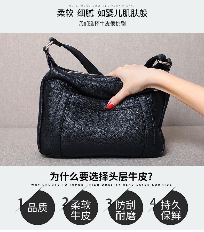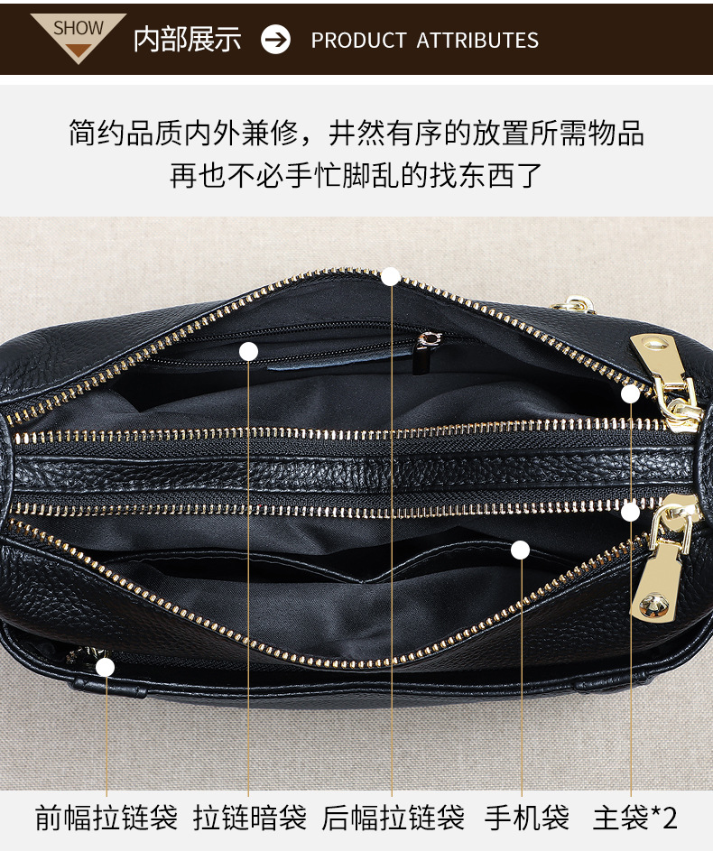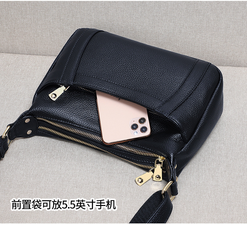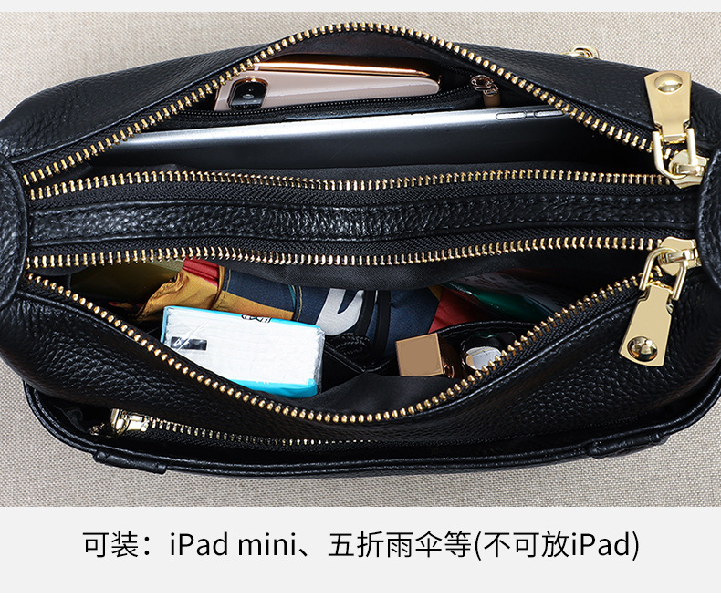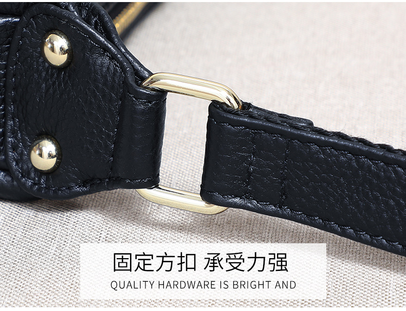 Tushky Marke 2025 Frühlingstasche für Damen, neue trendige Mode, echtes Leder, großes Fassungsvermögen, Umhängetasche für Damen, einfache Umhängetasche, Schwarz, 26 x 16,5 x 7,5 cm