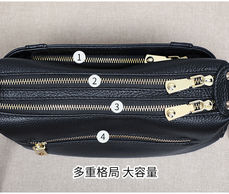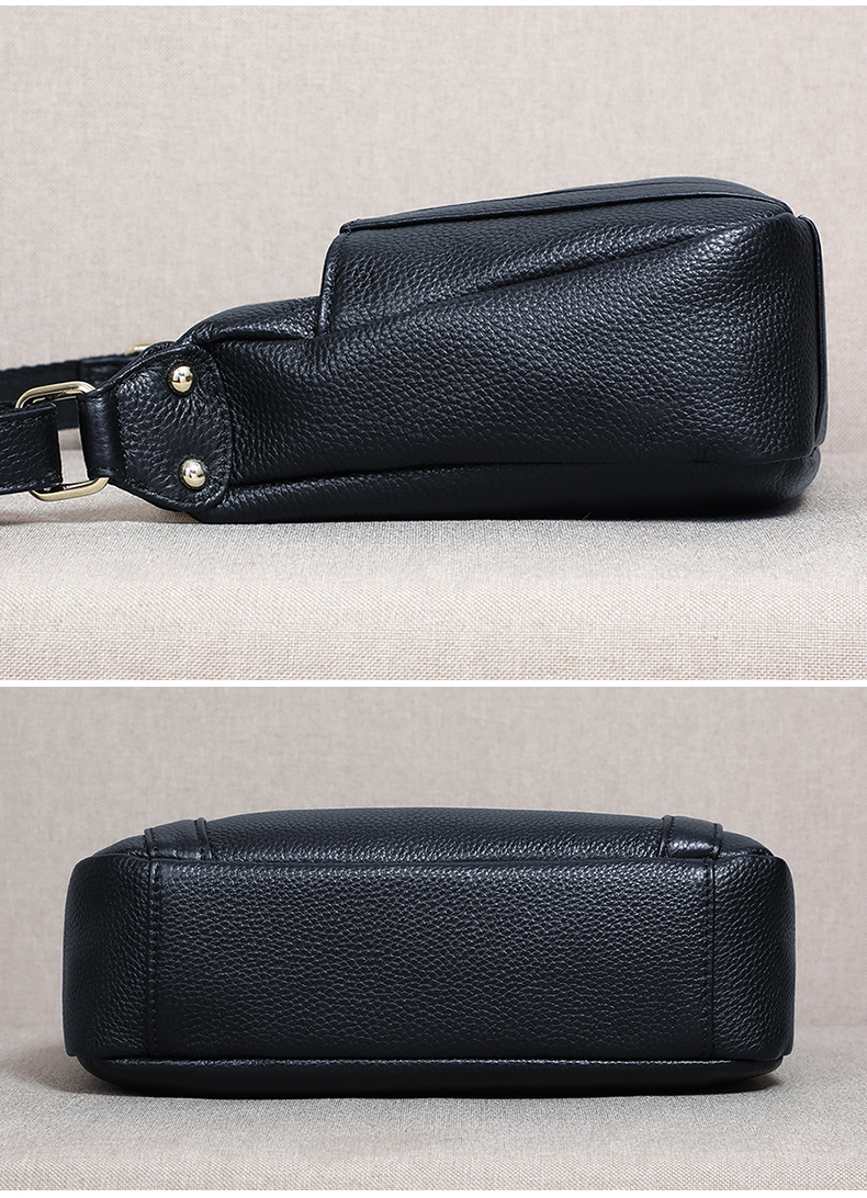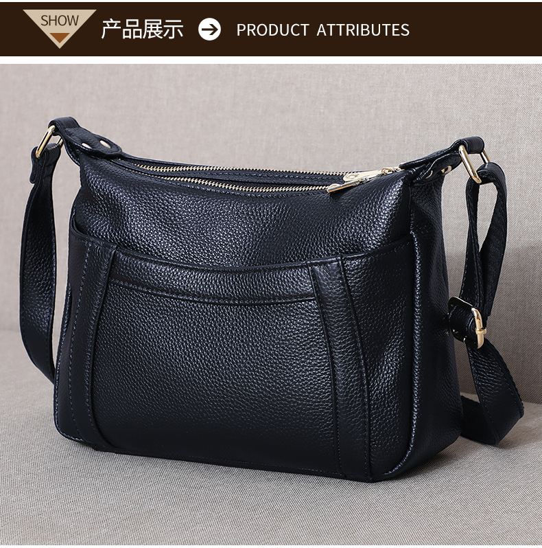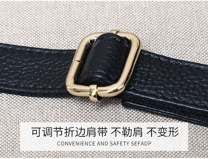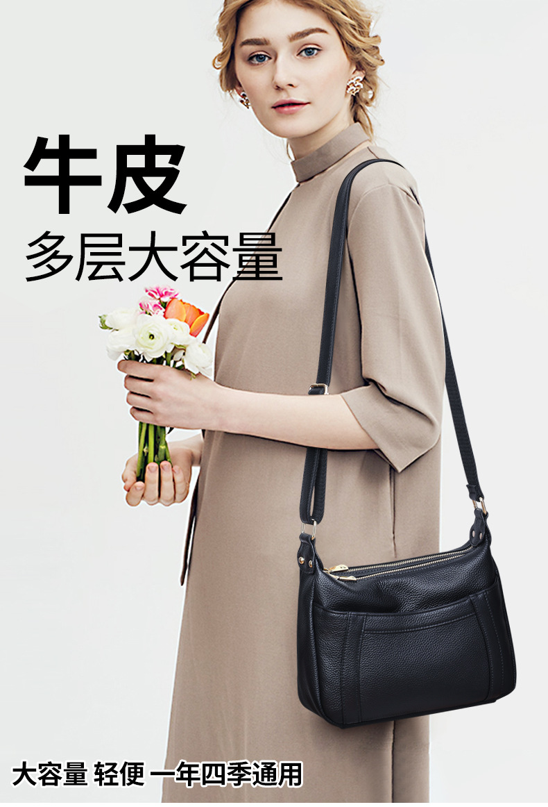 Tushky Marke 2025 Frühlingstasche für Damen, neue trendige Mode, echtes Leder, großes Fassungsvermögen, Umhängetasche für Damen, einfache Umhängetasche, Schwarz, 26 x 16,5 x 7,5 cm