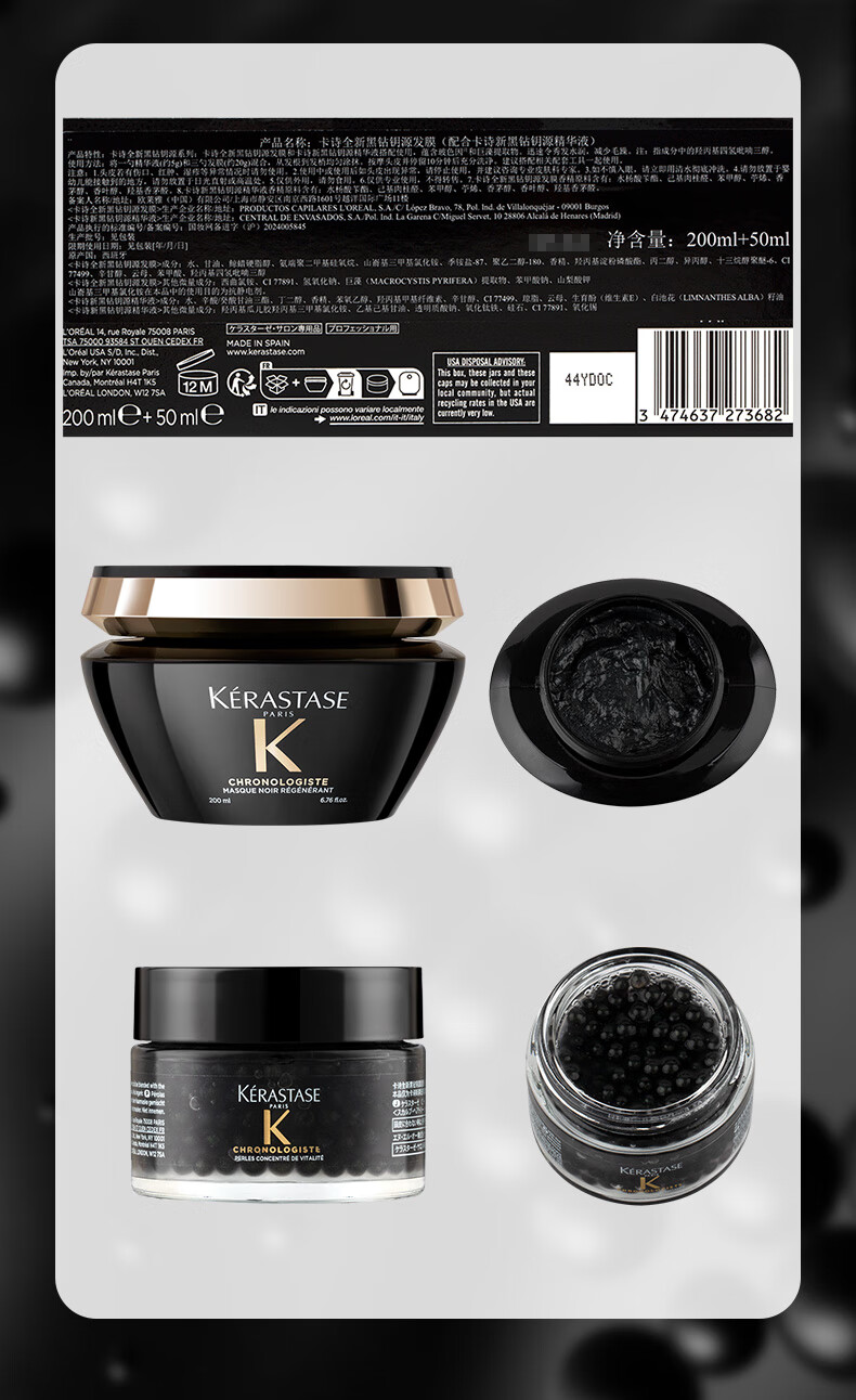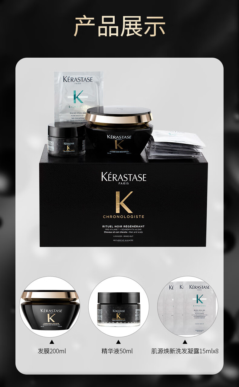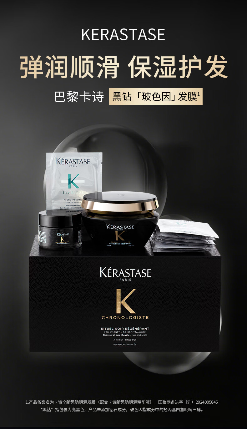 卡诗(KERASTASE)黑钻钥源鱼子形精华发膜护理套装(精华液) 修护受损黑耀臻萃保湿 【中样】黑钻钥源发膜75ml*3