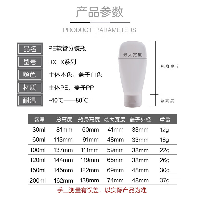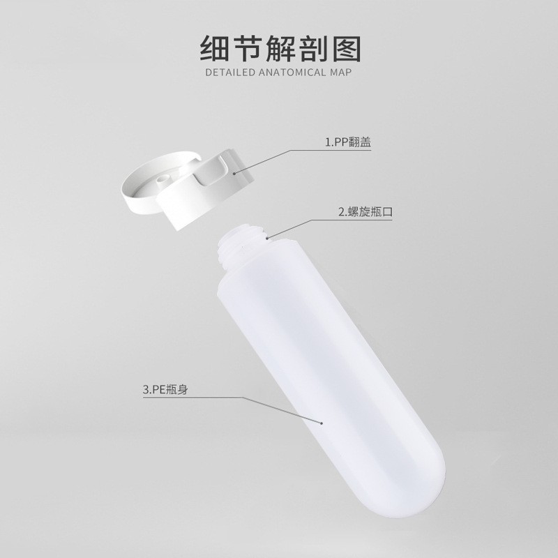 Xingchenhai gran diámetro buen reenvasado botella de manguera de PE tipo exprimible botella de recarga cosmética limpiador facial champú loción pequeña botella vacía tapa abatible manguera 200 ml