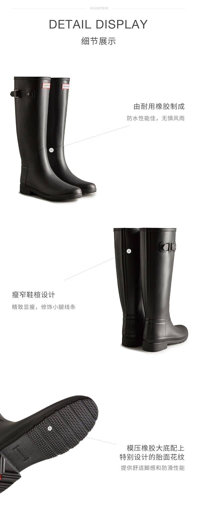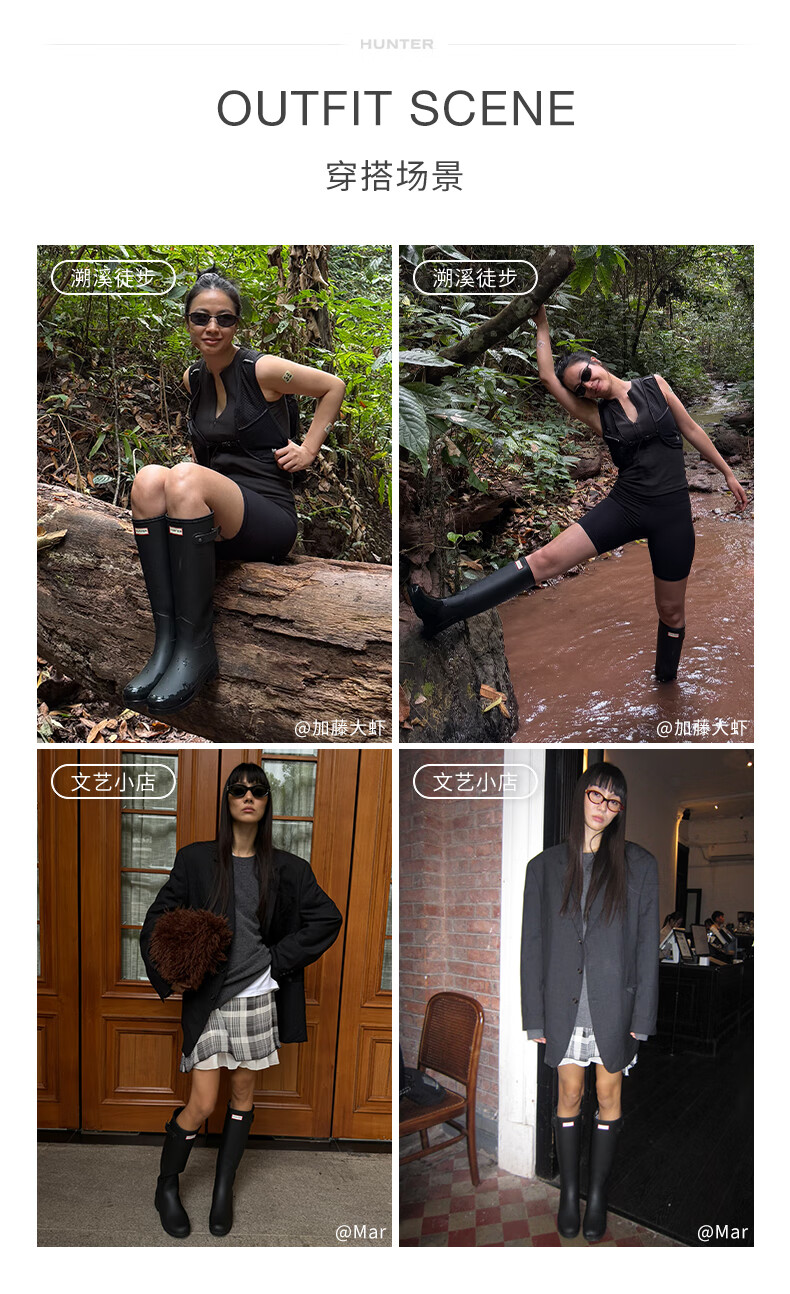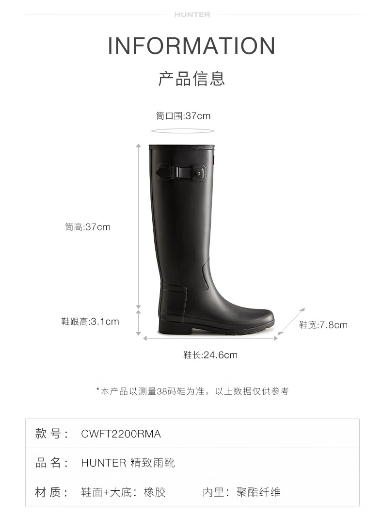 HUNTER modified leg shape, outdoor camping women's shoes Refined waterproof anti-slip high boots, high boots, internet celebrity women's boots, black BLK/matte 38