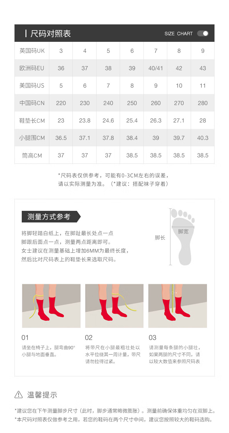 China (cm) 36 - 37 38 - 39 40 - 42 43 - 44 45 - 47
