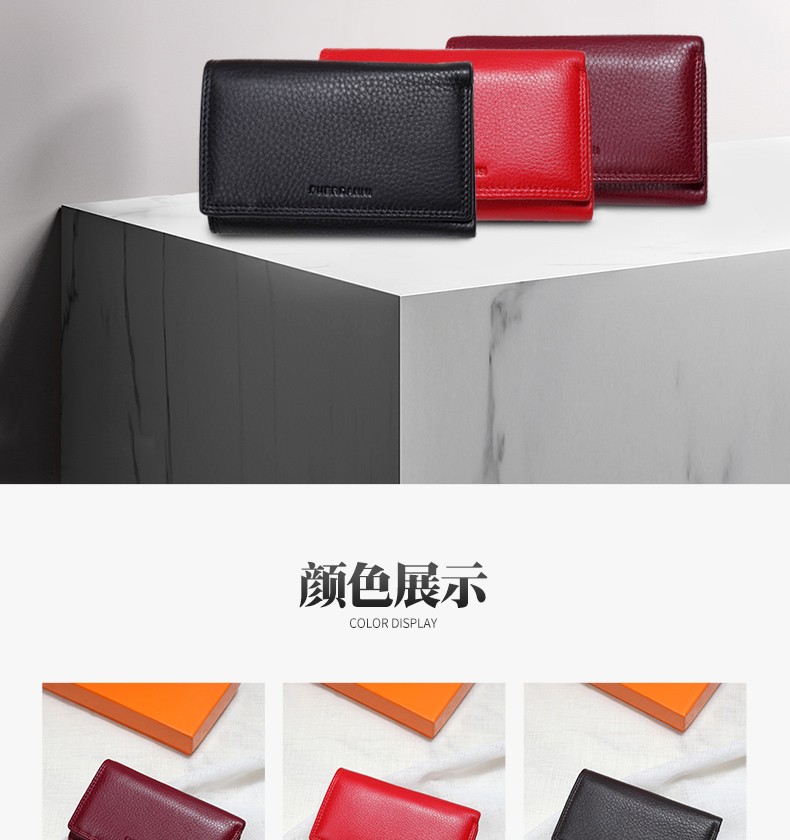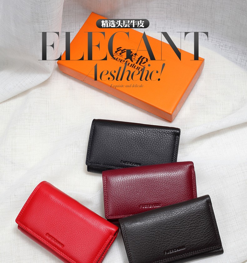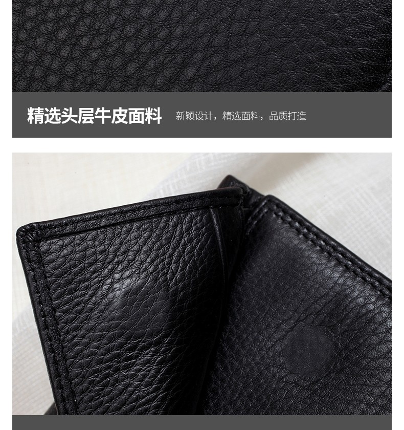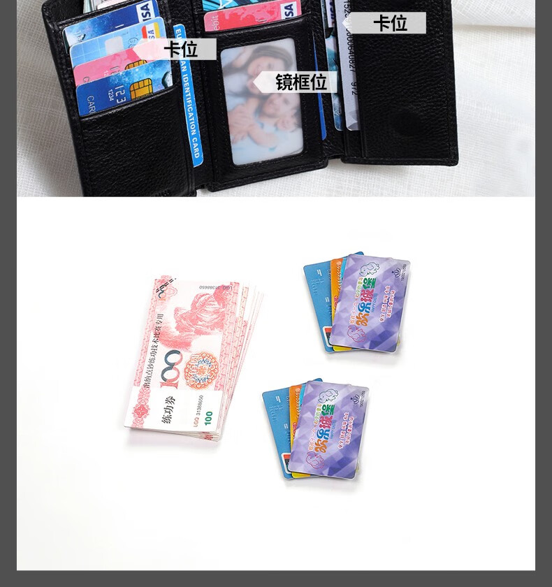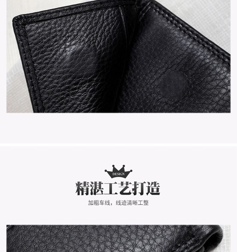 丝芙伦2026新款纯牛皮好用折叠中短款钱包简约休闲真皮大容量多卡位卡包 黑色