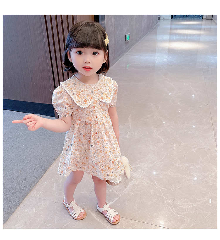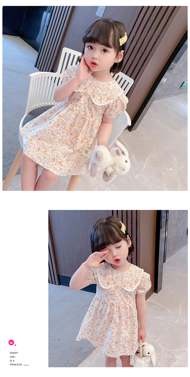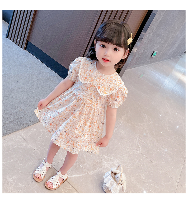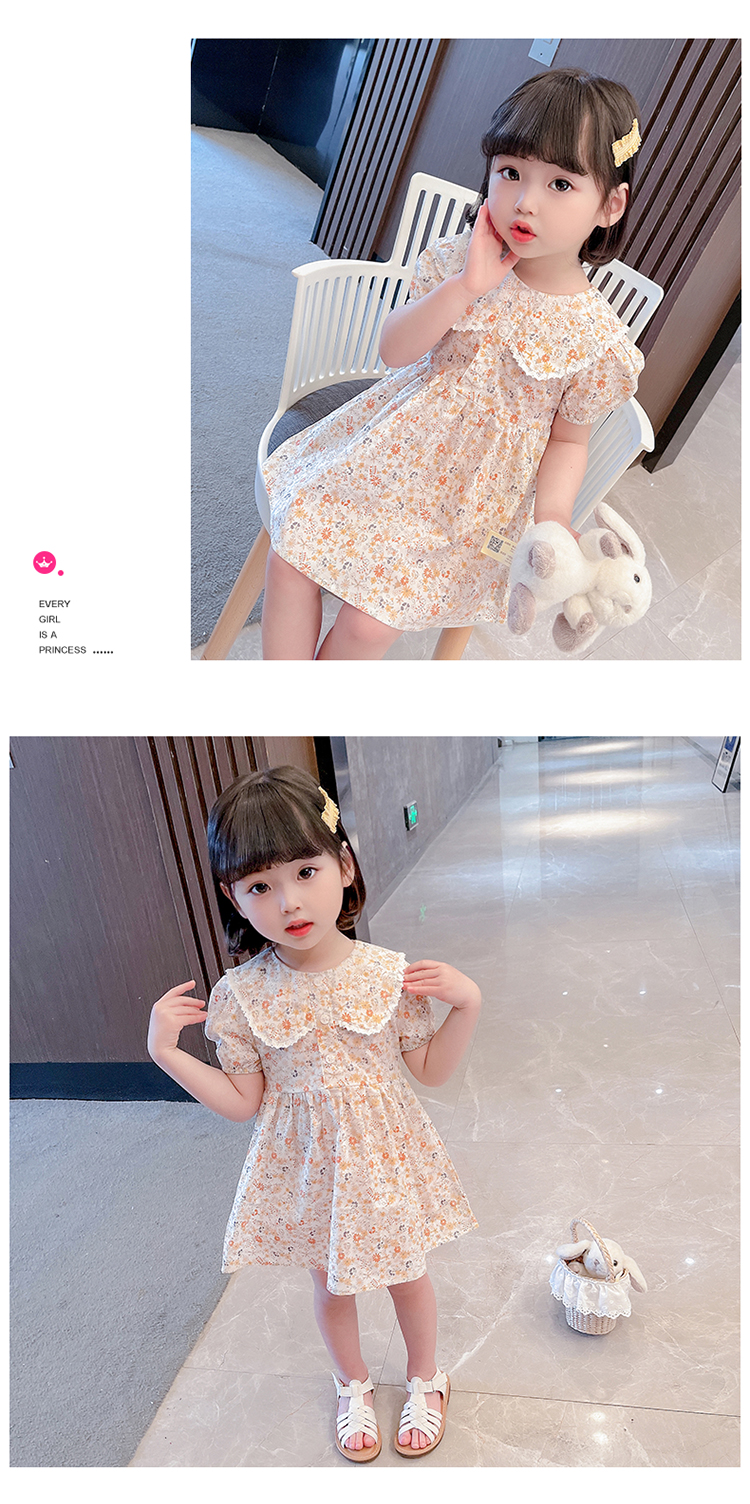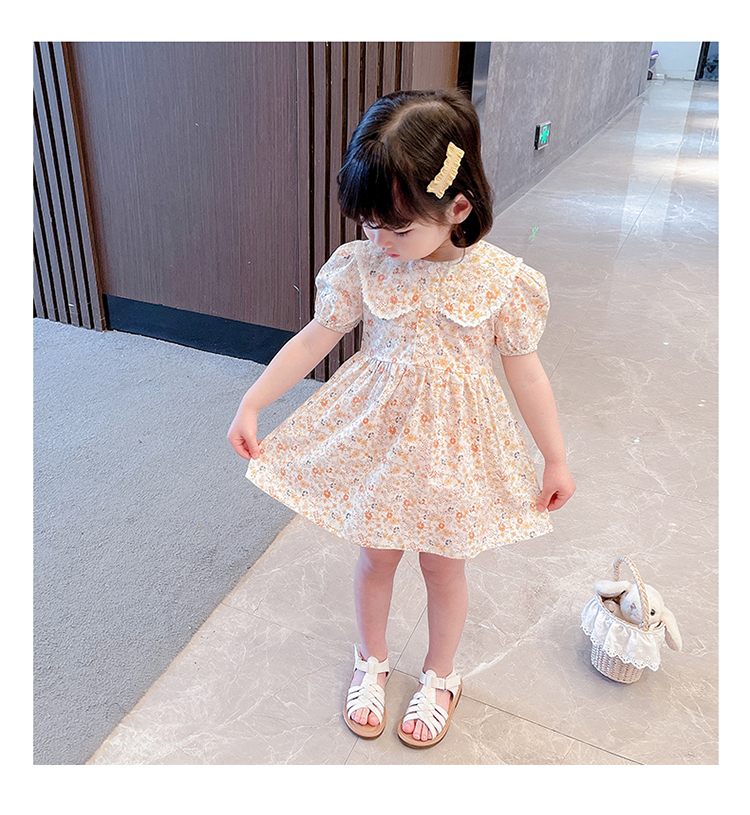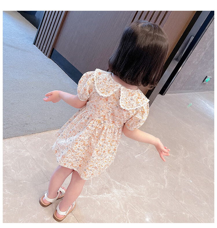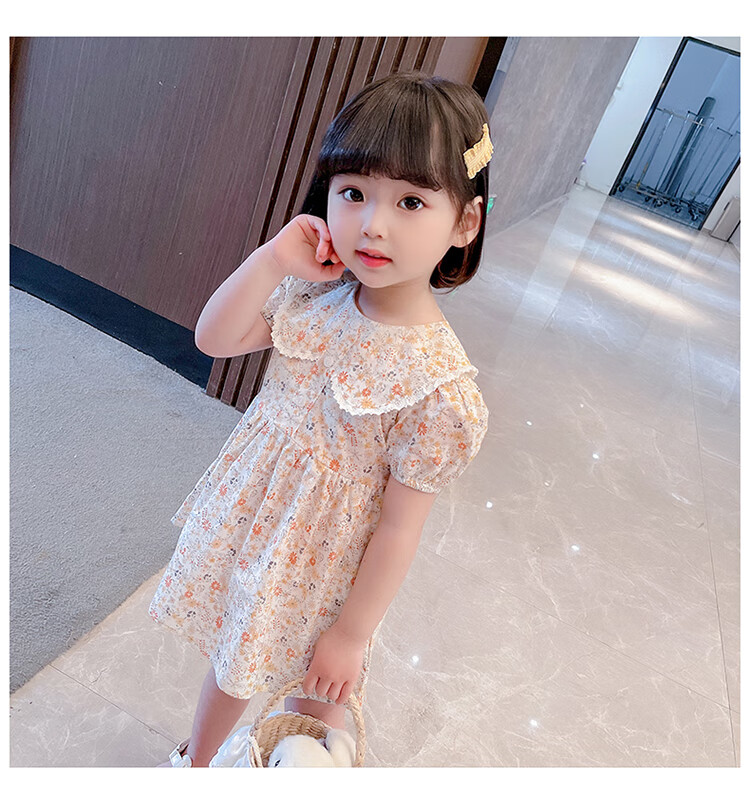 乐芭鼠童装女童连衣裙女宝宝衣服夏季甜美可爱碎花裙小孩裙子公主裙娃娃领洋气时髦薄款中小童 桔色 100码建议2-3岁 ( 90-100cm )