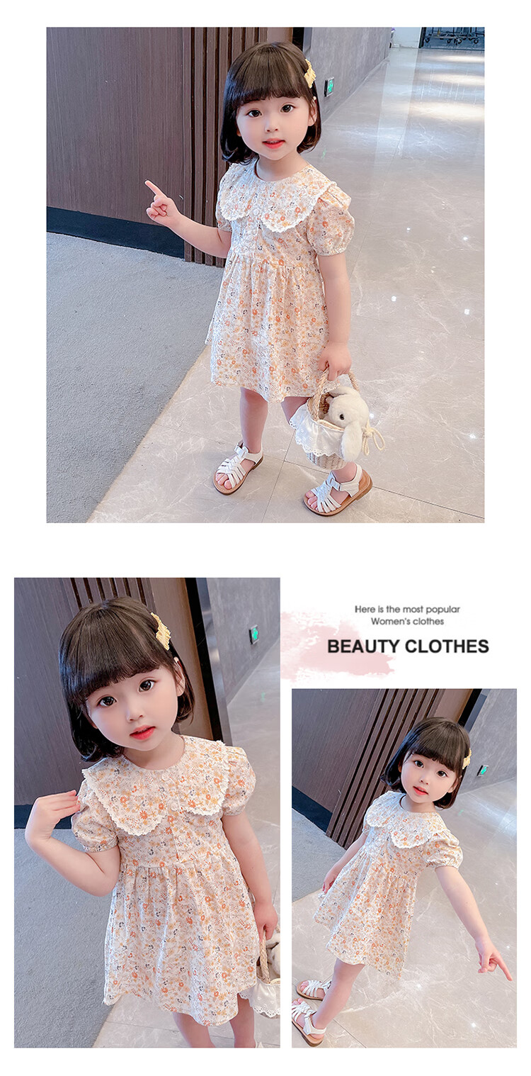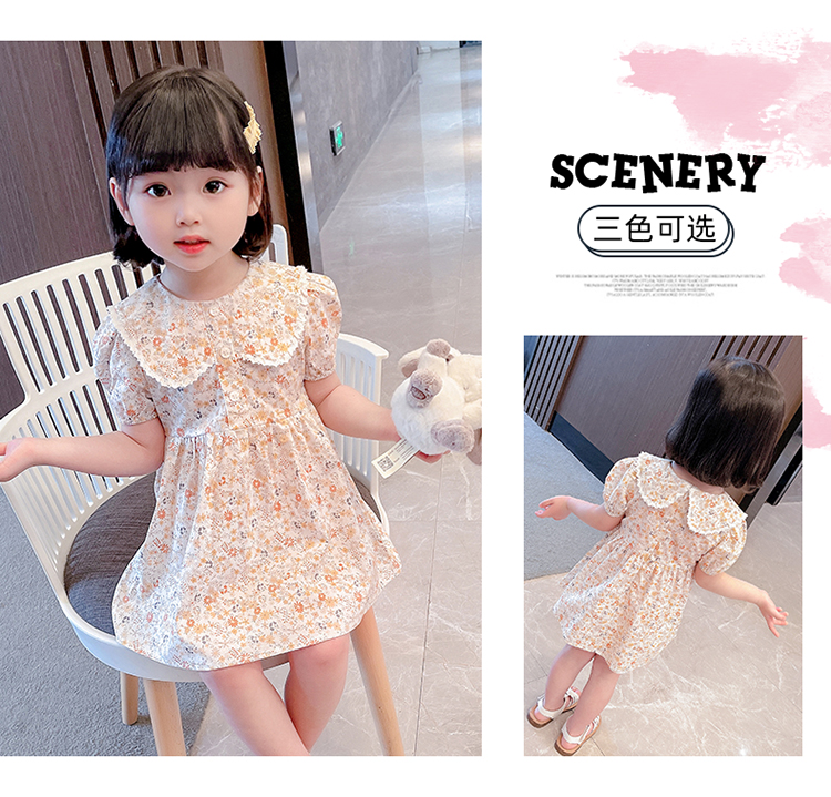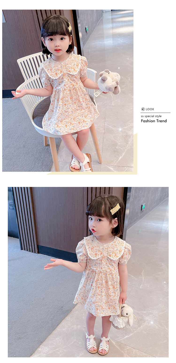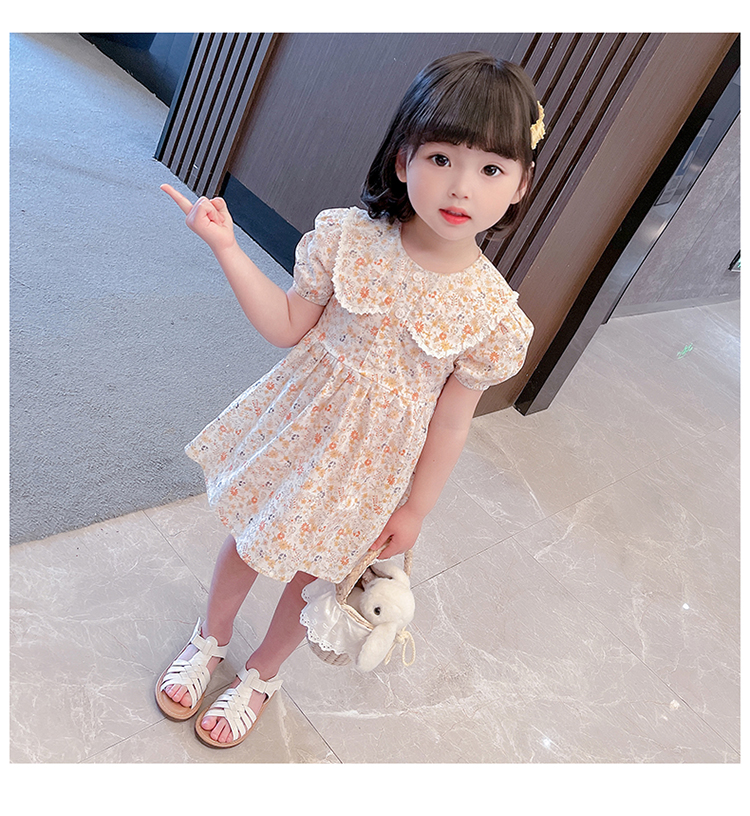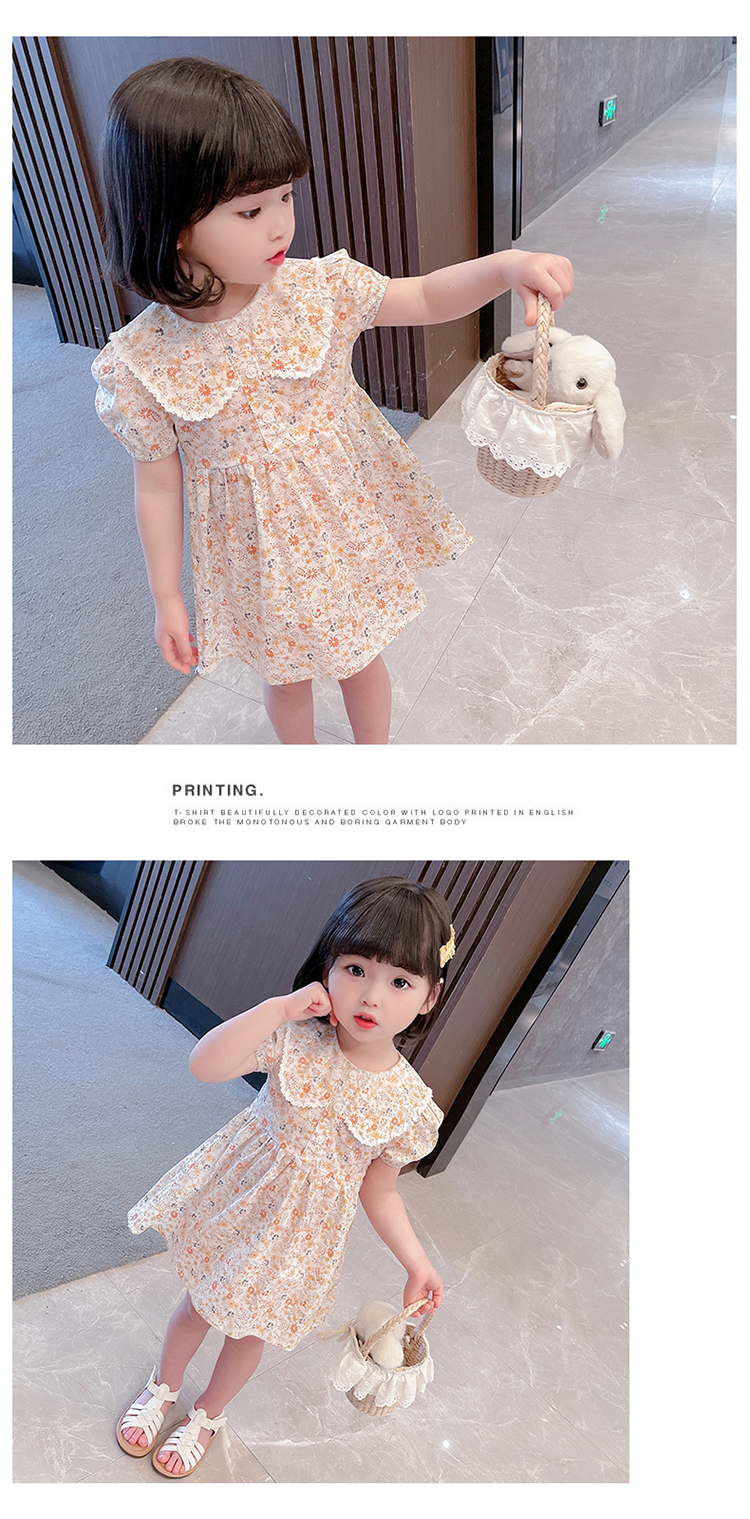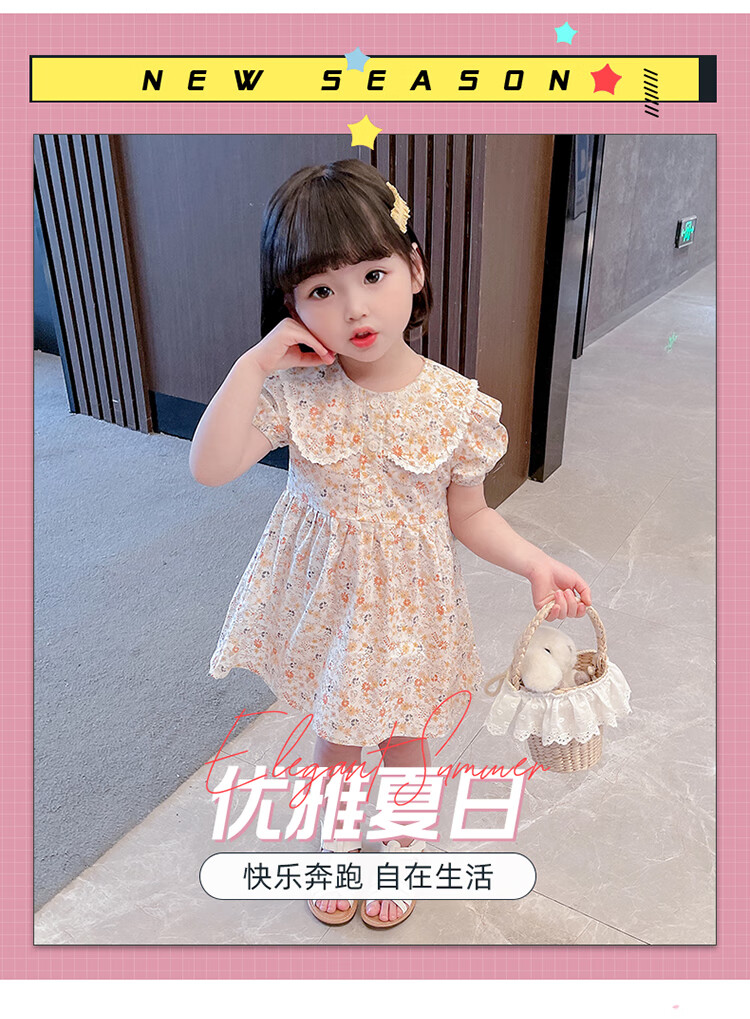 乐芭鼠童装女童连衣裙女宝宝衣服夏季甜美可爱碎花裙小孩裙子公主裙娃娃领洋气时髦薄款中小童 桔色 100码建议2-3岁 ( 90-100cm )