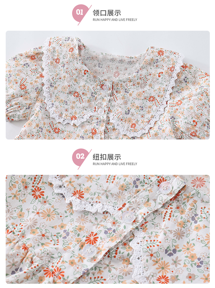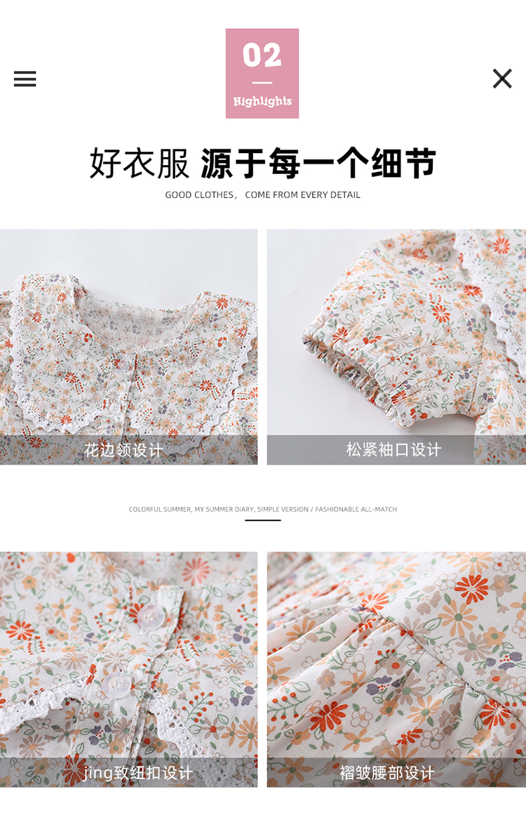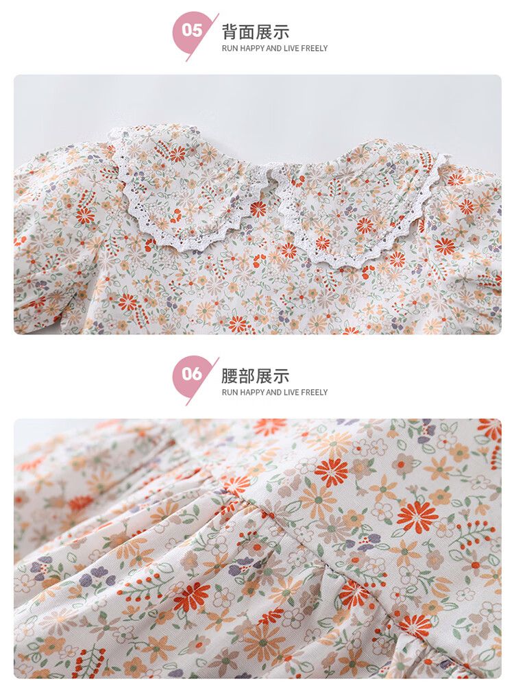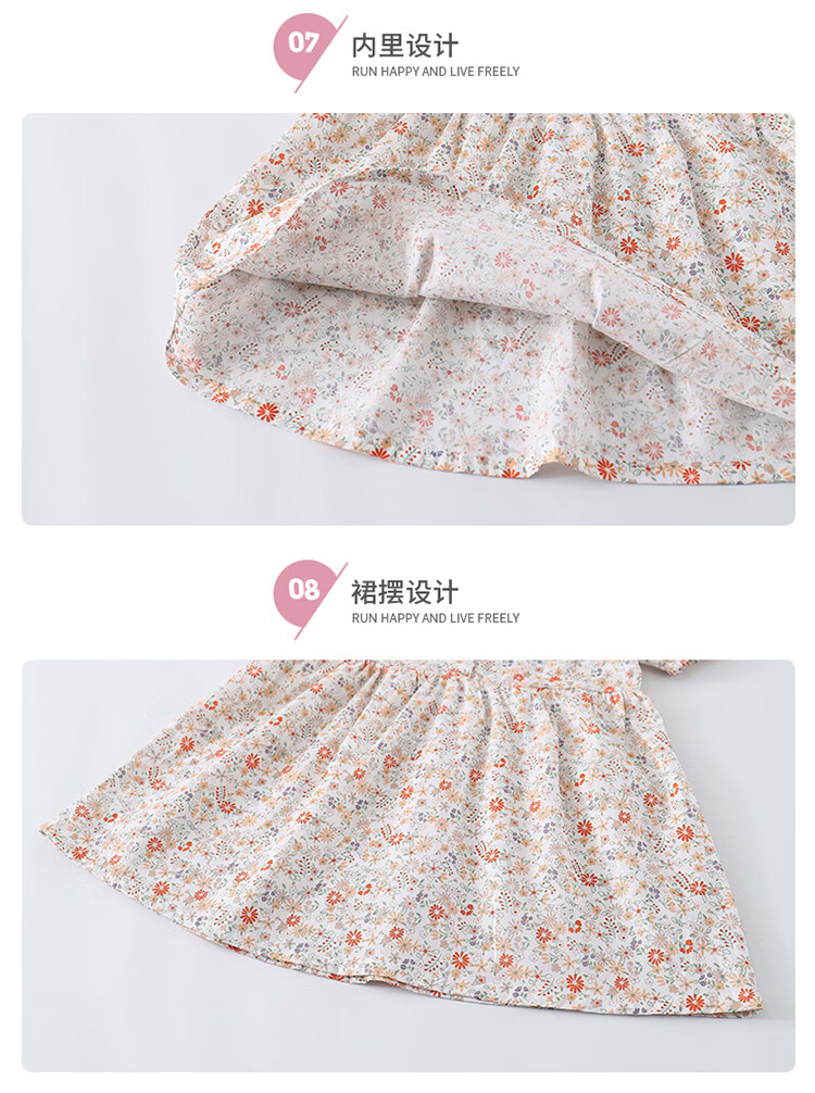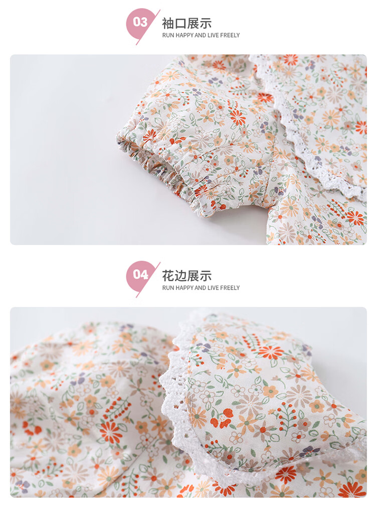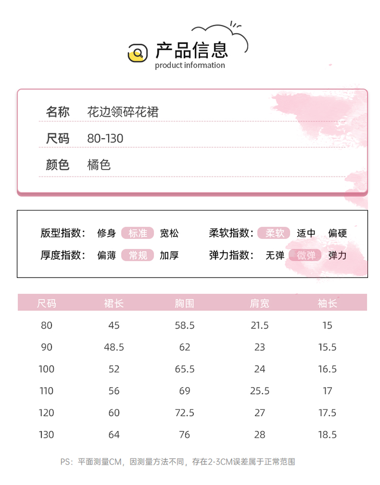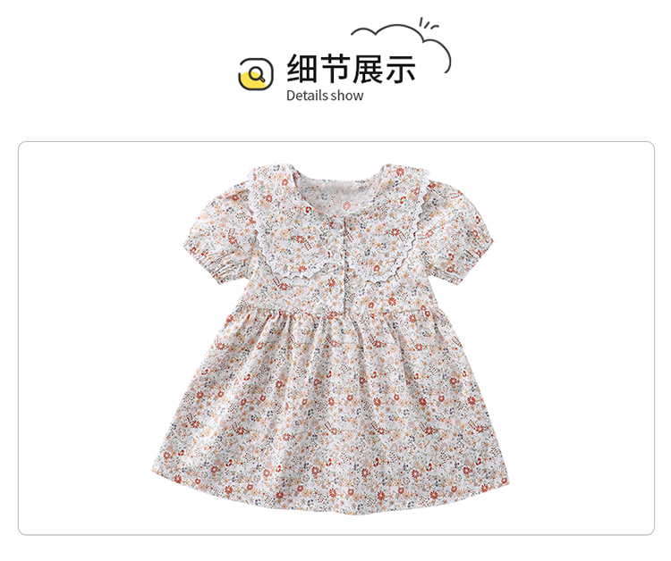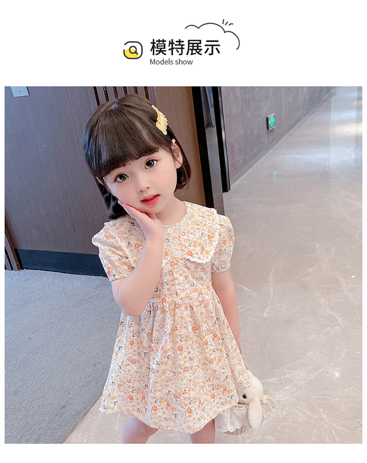 乐芭鼠童装女童连衣裙女宝宝衣服夏季甜美可爱碎花裙小孩裙子公主裙娃娃领洋气时髦薄款中小童 桔色 100码建议2-3岁 ( 90-100cm )