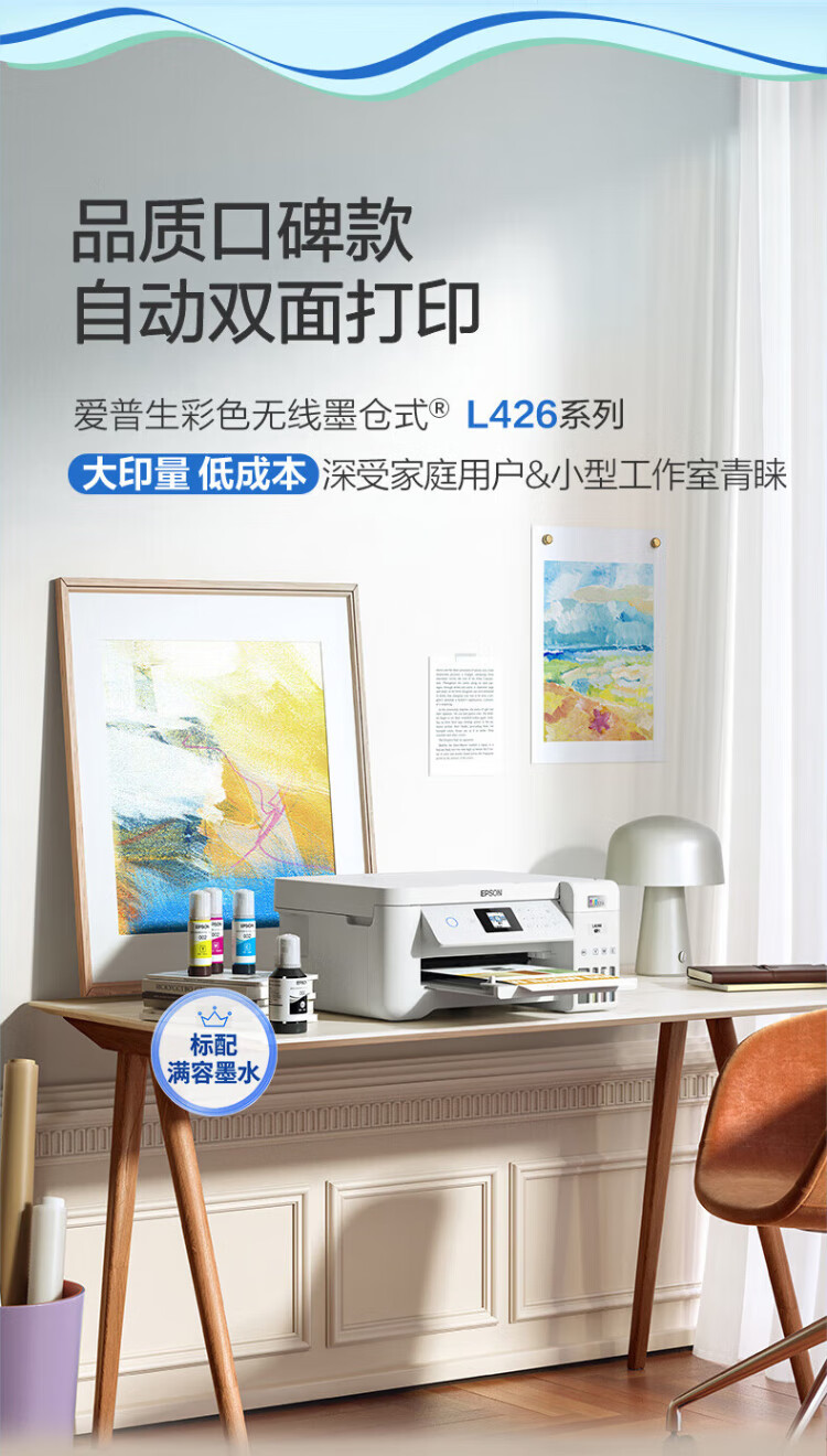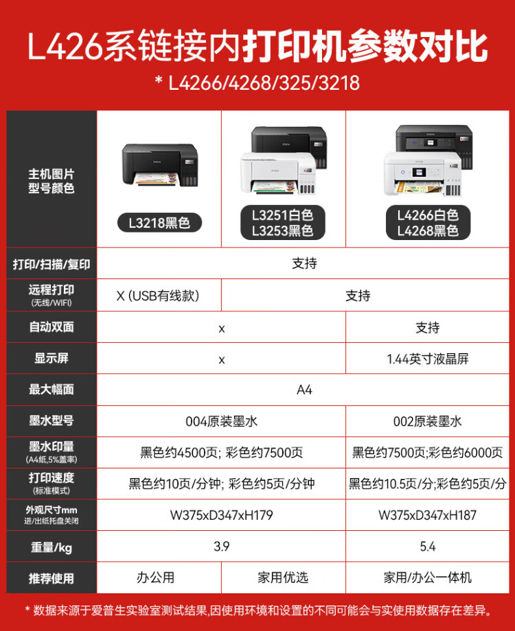 爱普生家用打印机L4268 L4266墨仓式无线自动双面连供A4复印扫描多功能一体机 彩色照片作业文档办公用 L4268黑色(双面打印、复印扫描) 官方标配 家用办公首选