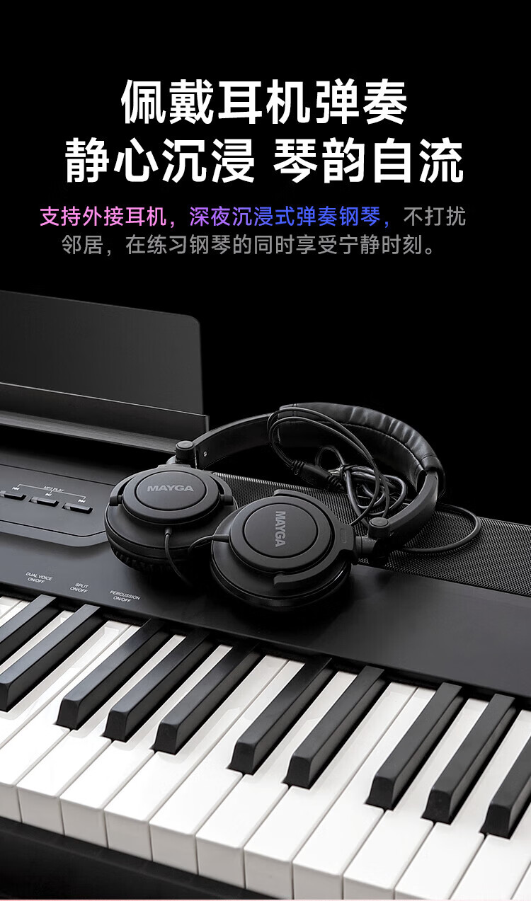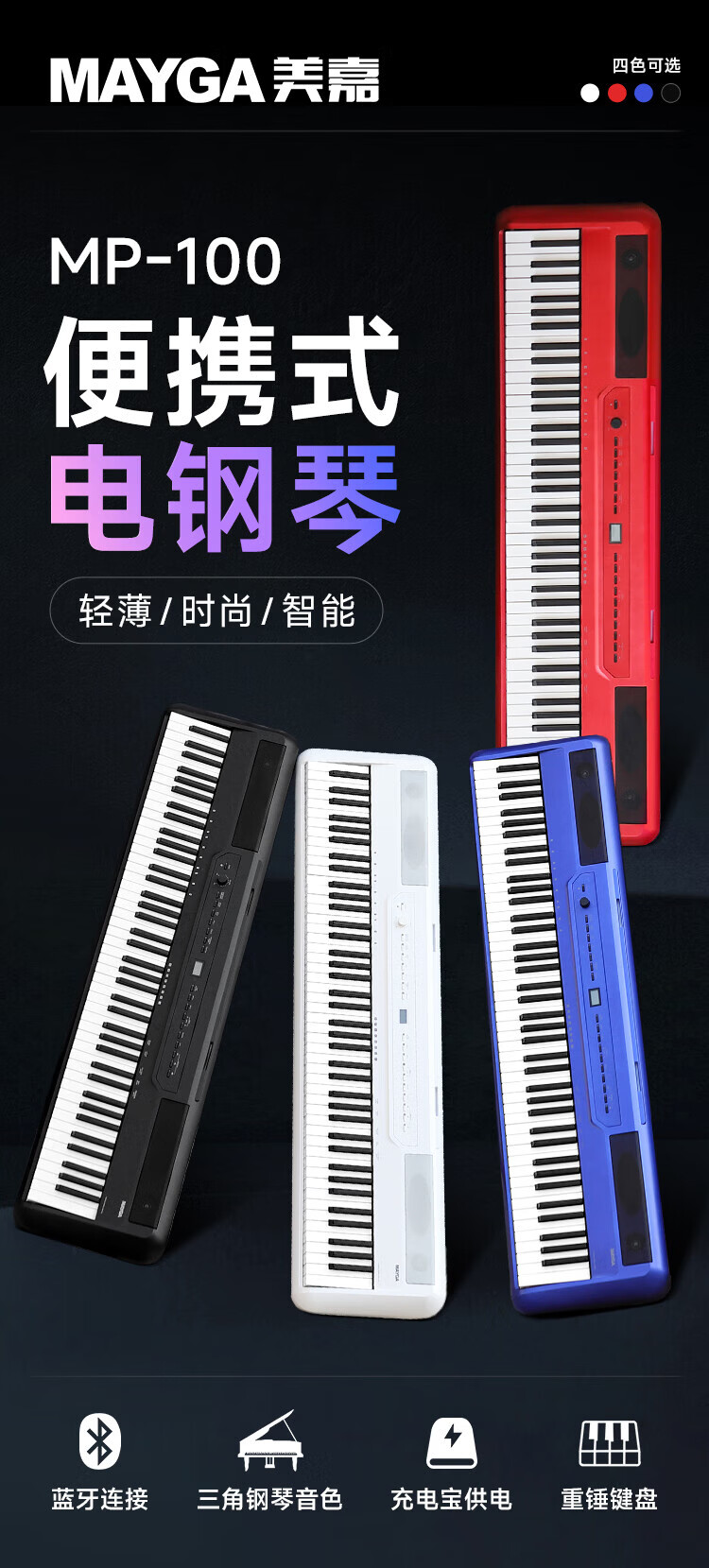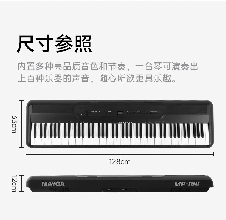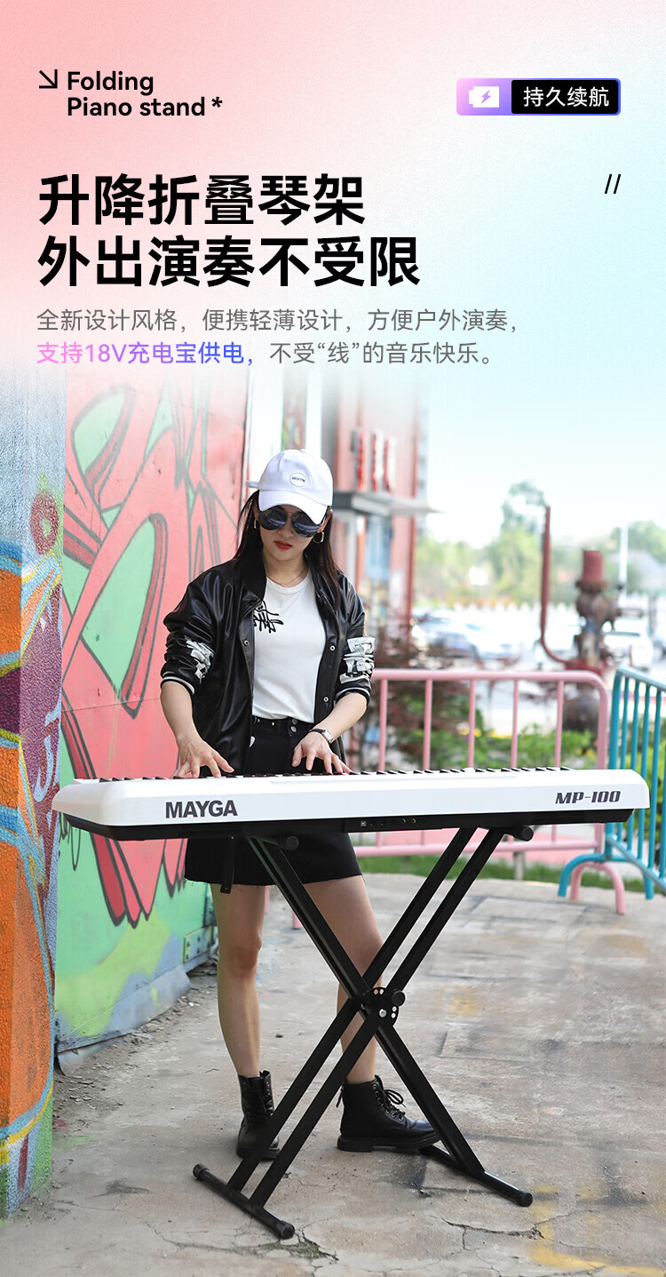 MAYGA MP-100 Teclado de martillo portátil de 88 teclas para adultos y niños, piano eléctrico digital doméstico, cabezal MP-100 blanco + pedal único + marco de metal en forma de X