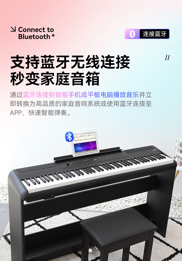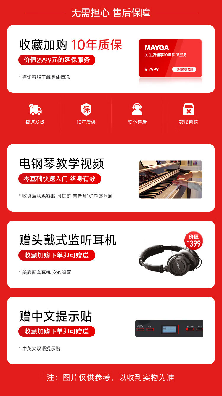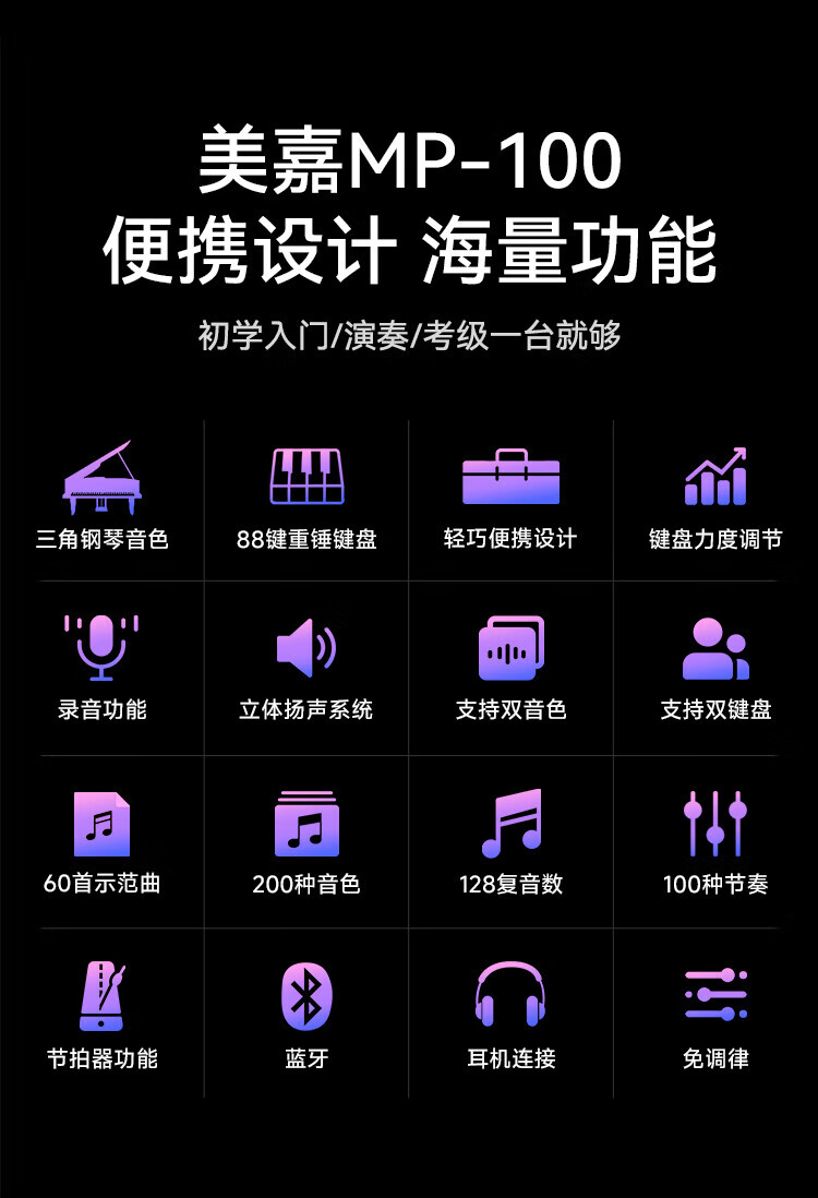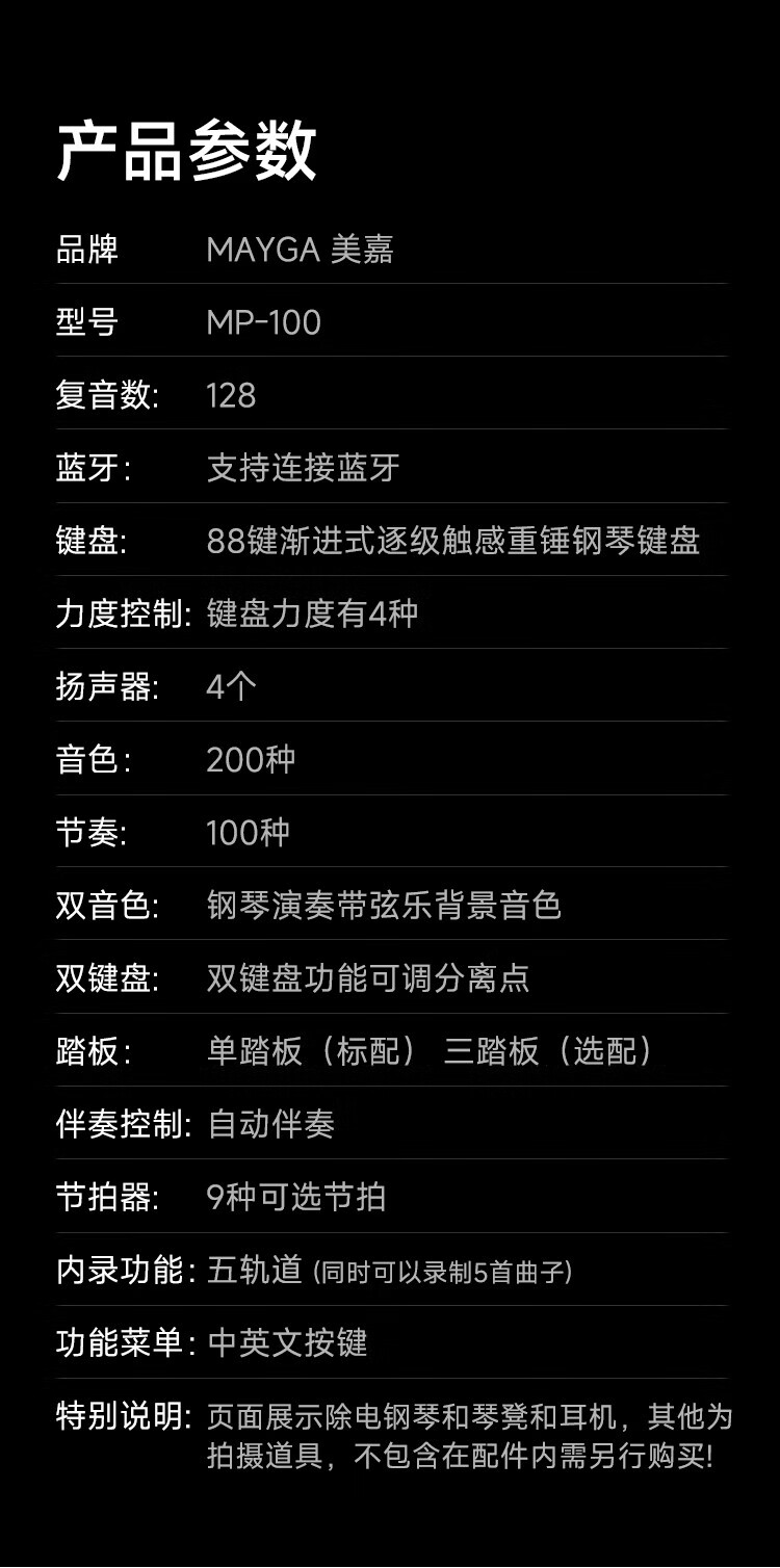 MAYGA MP-100 Teclado de martillo portátil de 88 teclas para adultos y niños, piano eléctrico digital doméstico, cabezal MP-100 blanco + pedal único + marco de metal en forma de X