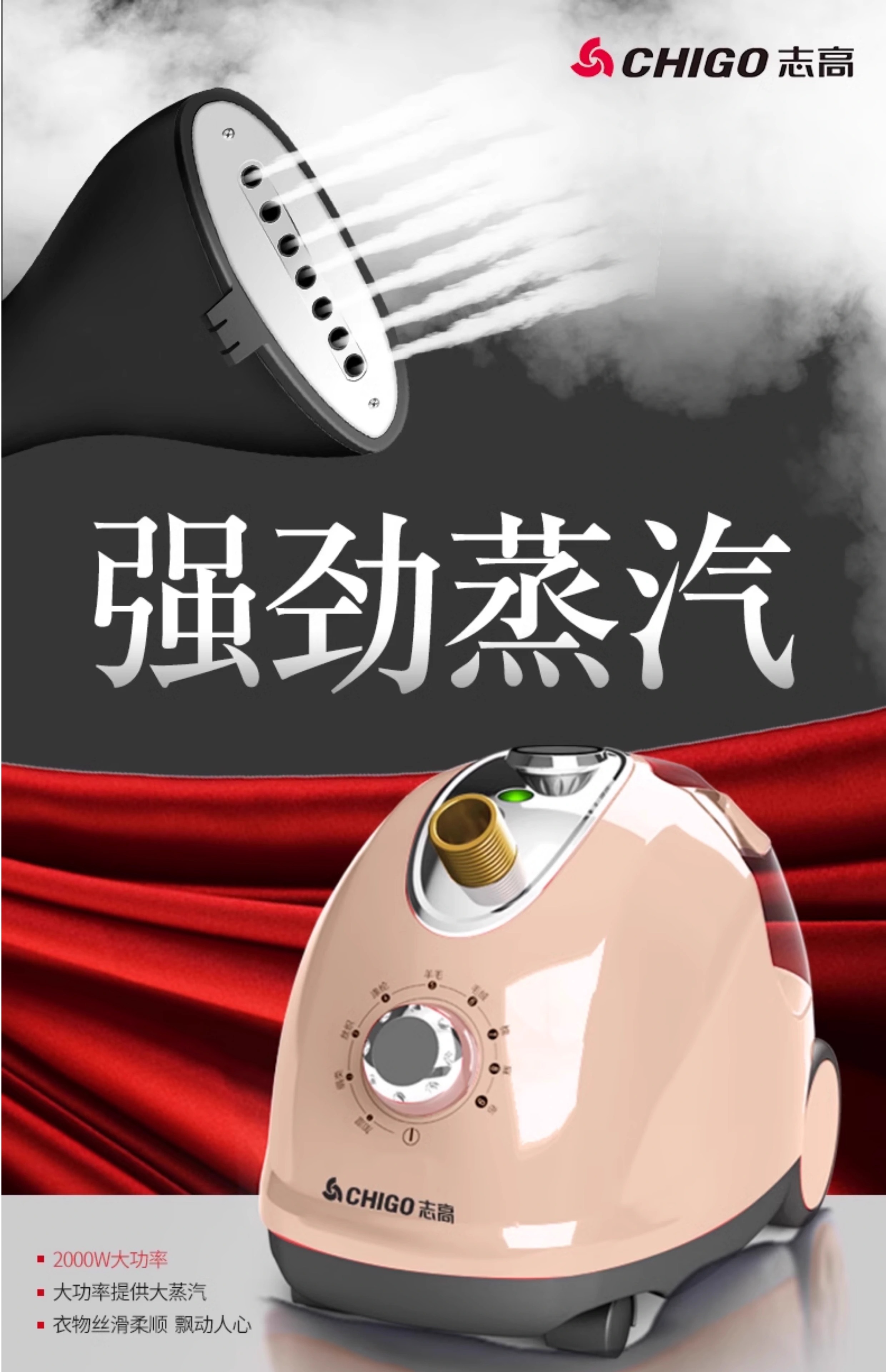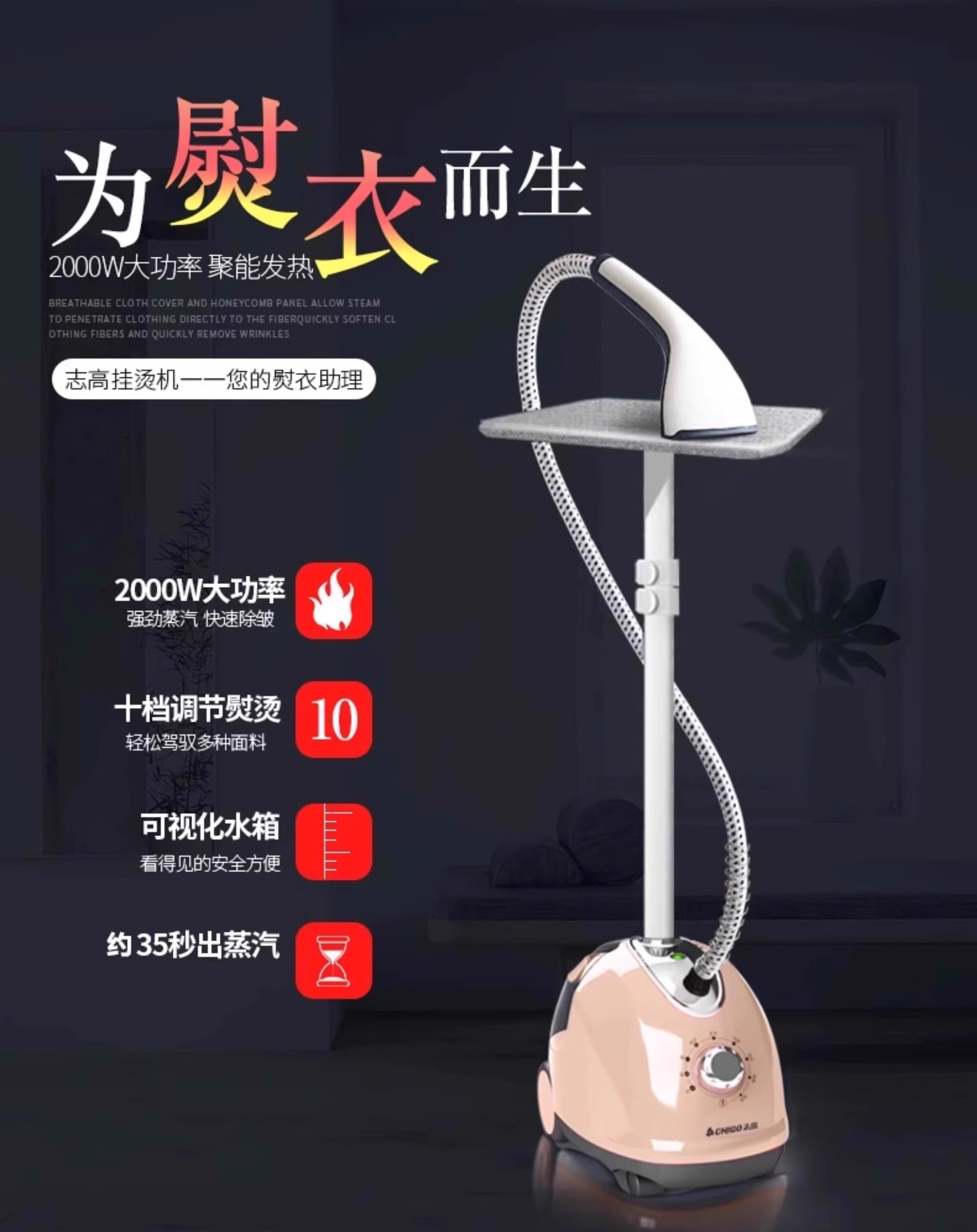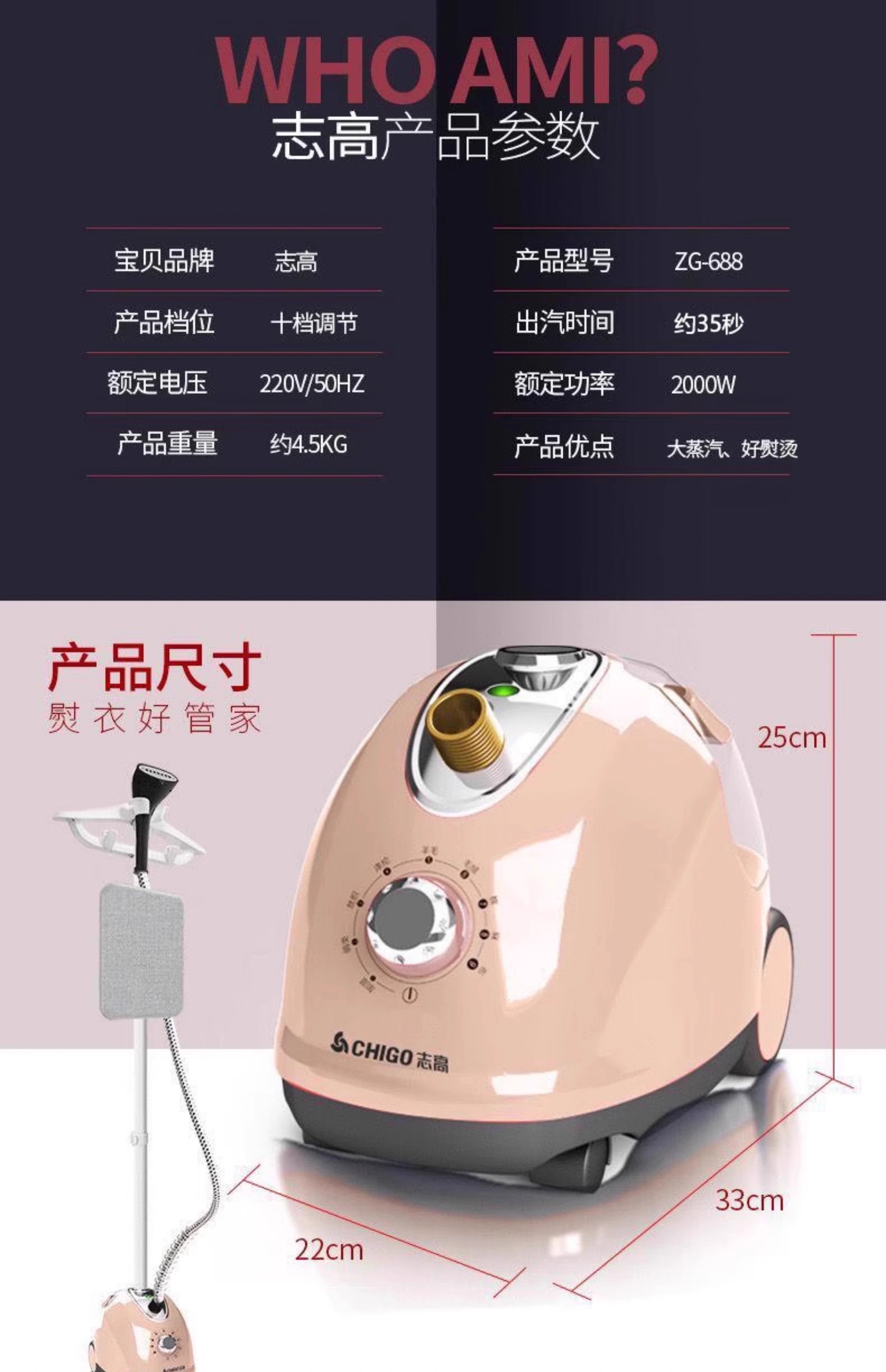 志高(CHIGO) 挂烫机家用熨斗烫衣服小型手持迷你熨烫机挂立式电熨斗大蒸汽熨烫衣服ZG-688 酒红色+烫衣板