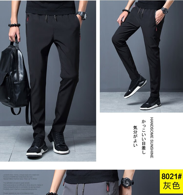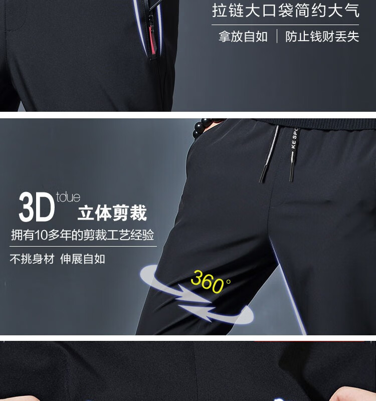 啄木鸟休闲裤男春秋款宽松休闲直筒速干长裤子青中年垂感弹力百搭运动裤 8021黑色(常规)+8021灰色(常规) XL 建议128-150斤