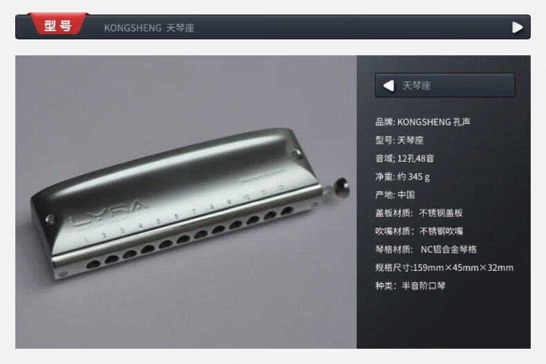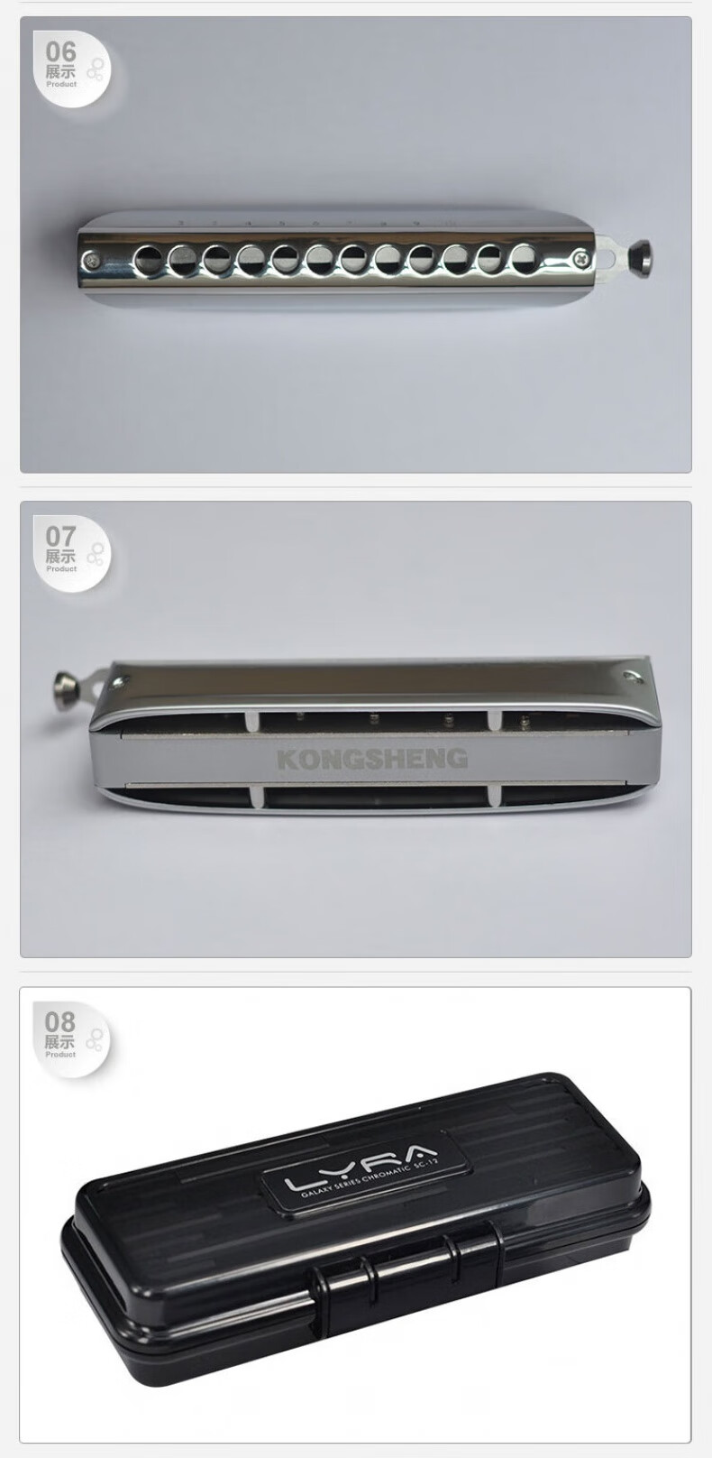 孔声天琴座半音阶口琴12孔金属琴格初学入门练习新手成人专业演奏乐器 12孔 48音半音阶C调天琴座【银色】全金属琴格