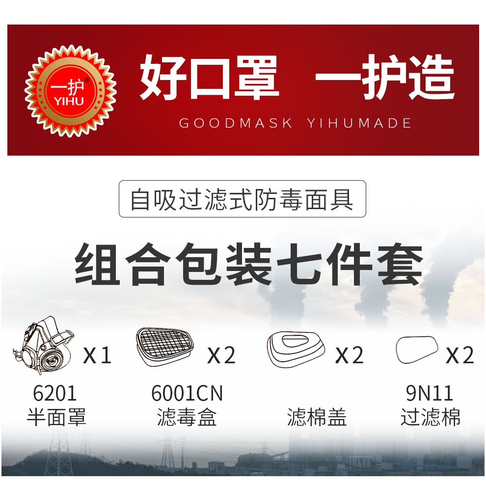 Ichigo gas mask dust mask benzene spray paint mask industrial dust pesticide protection half mask anti toxic gas 9207P silicone 7-piece set