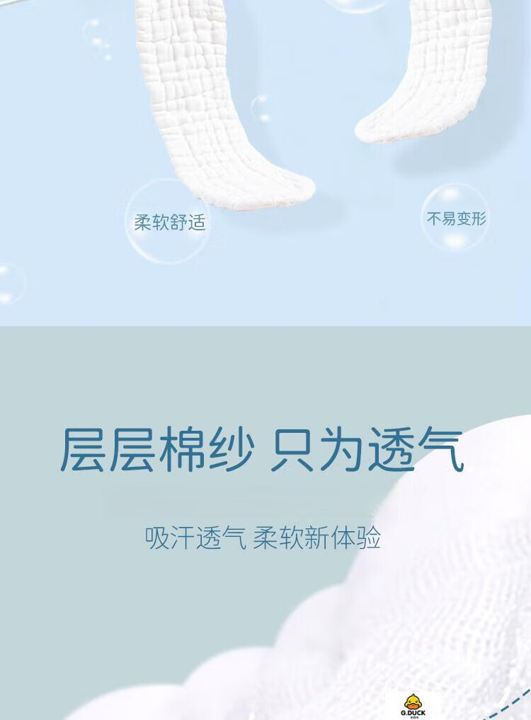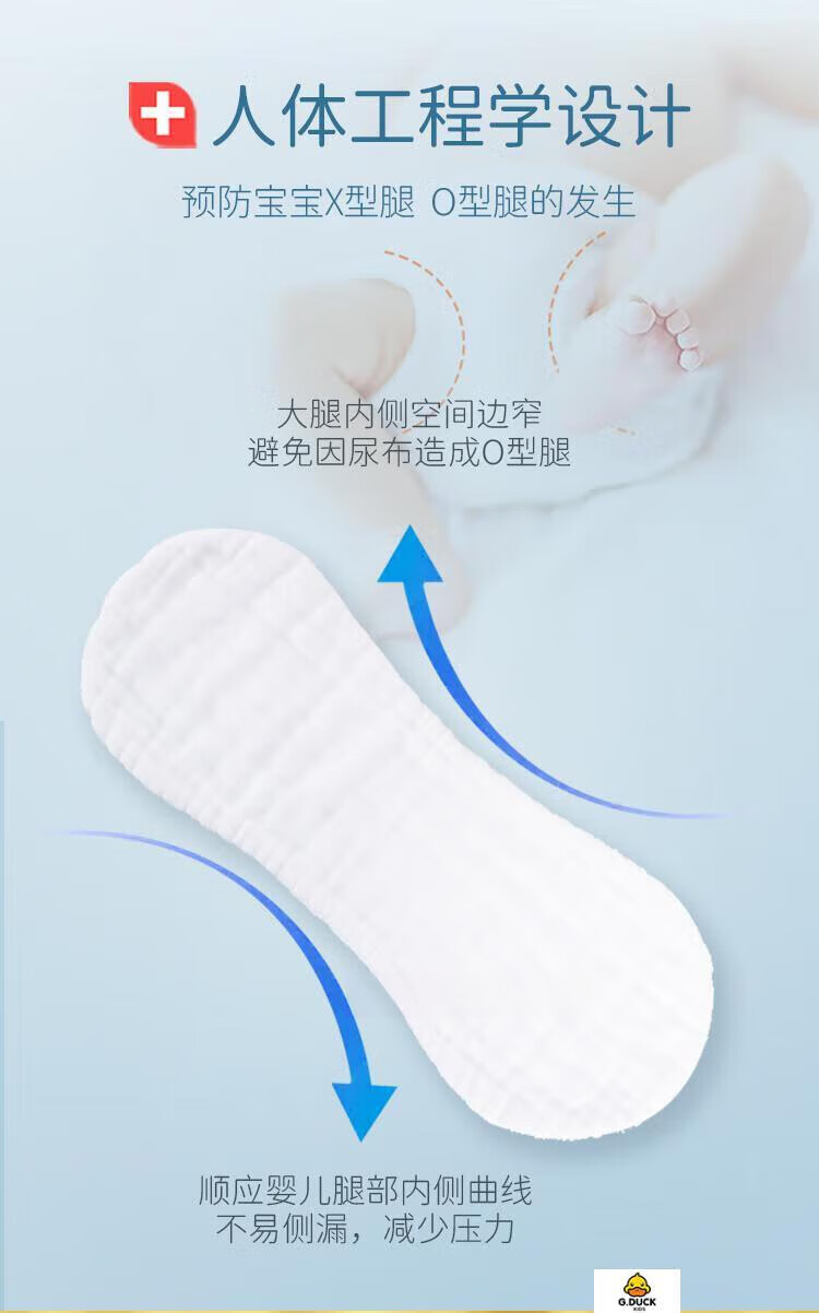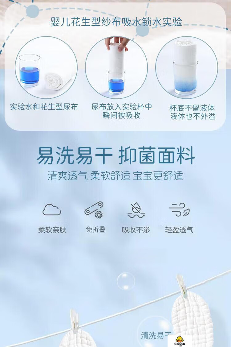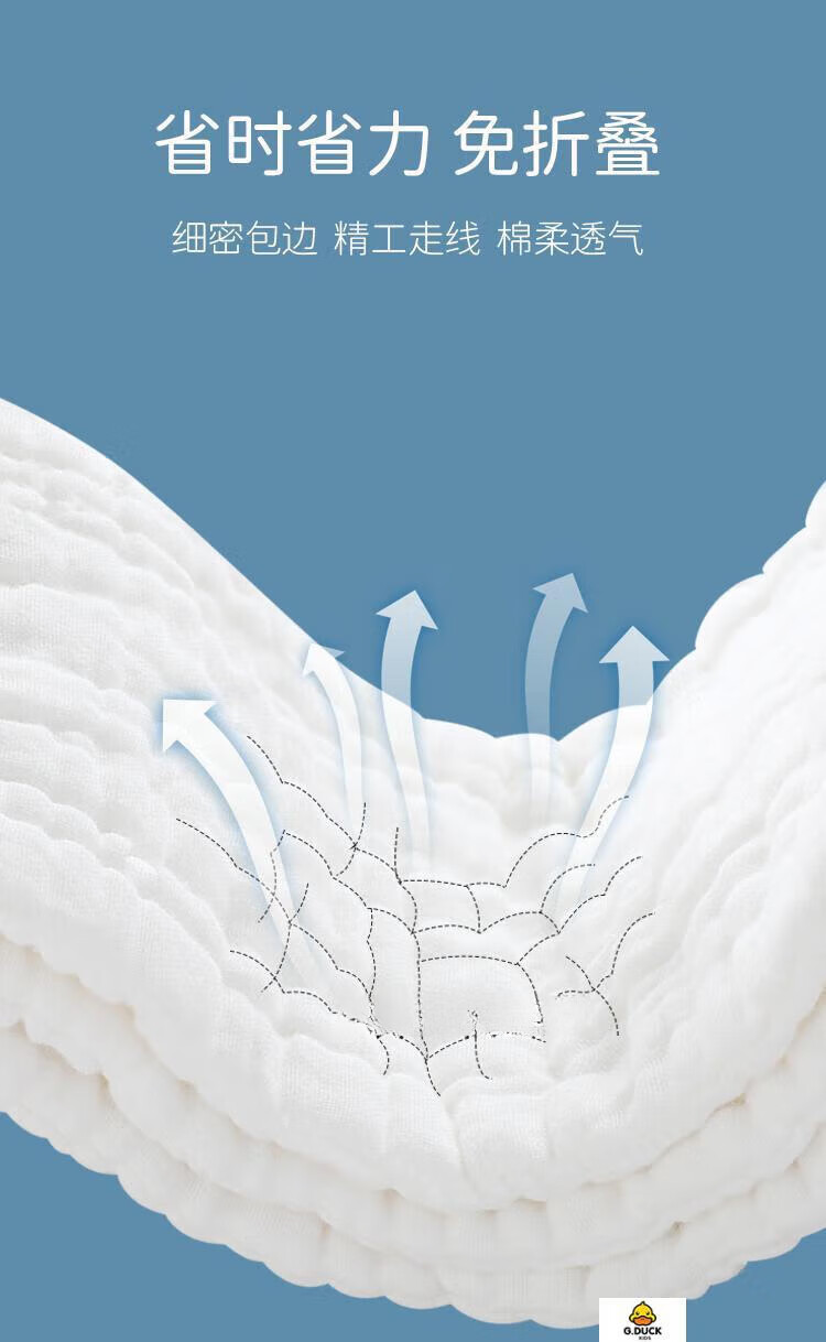 G.duck新生婴儿尿片纱布尿布纯棉可洗全棉纱戒子芥子初生用品春夏介子布 大号款10条12层(加1条尿布裤) 10片装 L