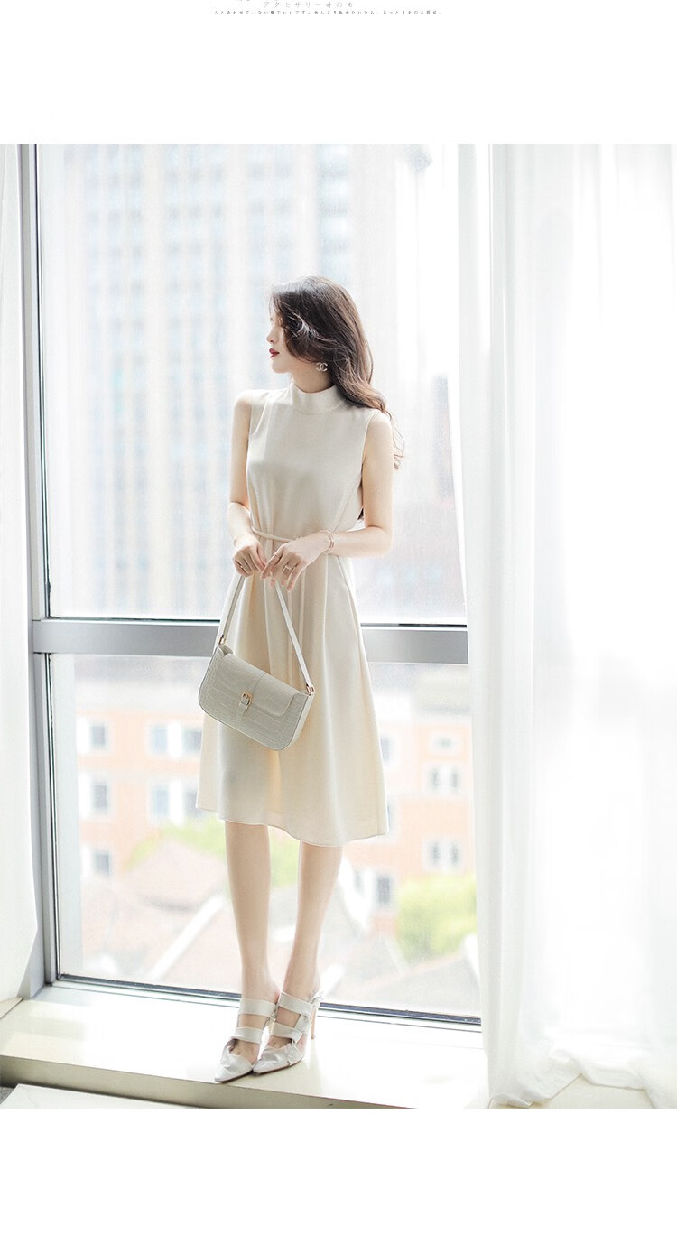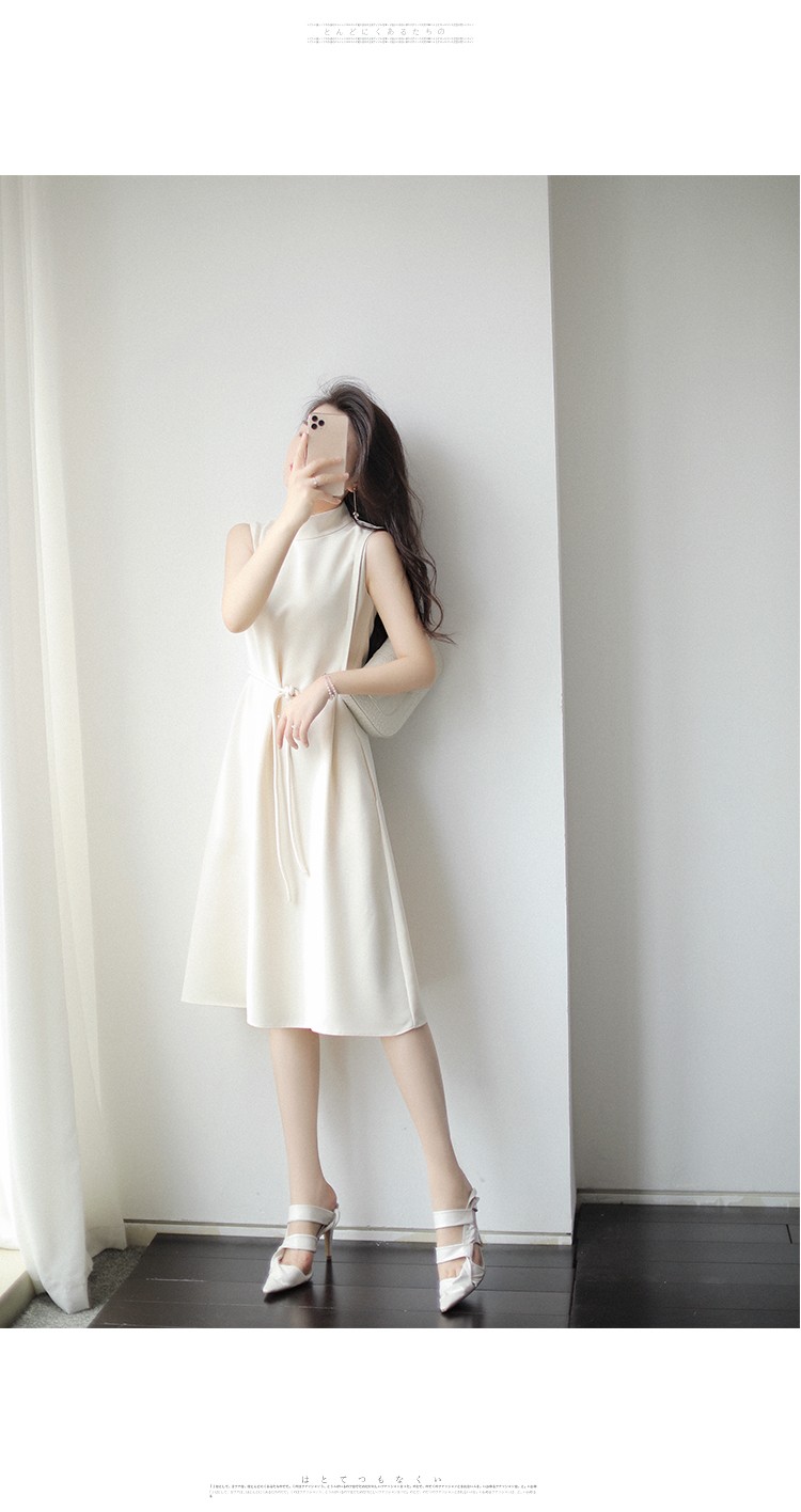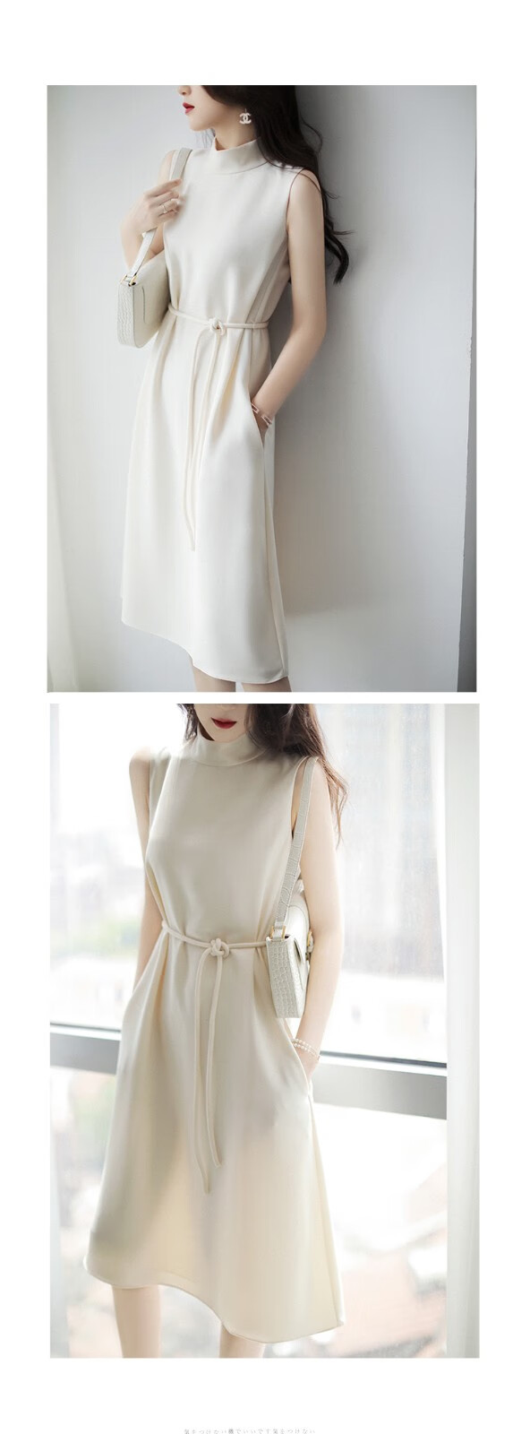 VIAFRR时尚冷淡风女装高级感高端白色无袖温柔风新款夏季设计连衣裙子女 白色 M