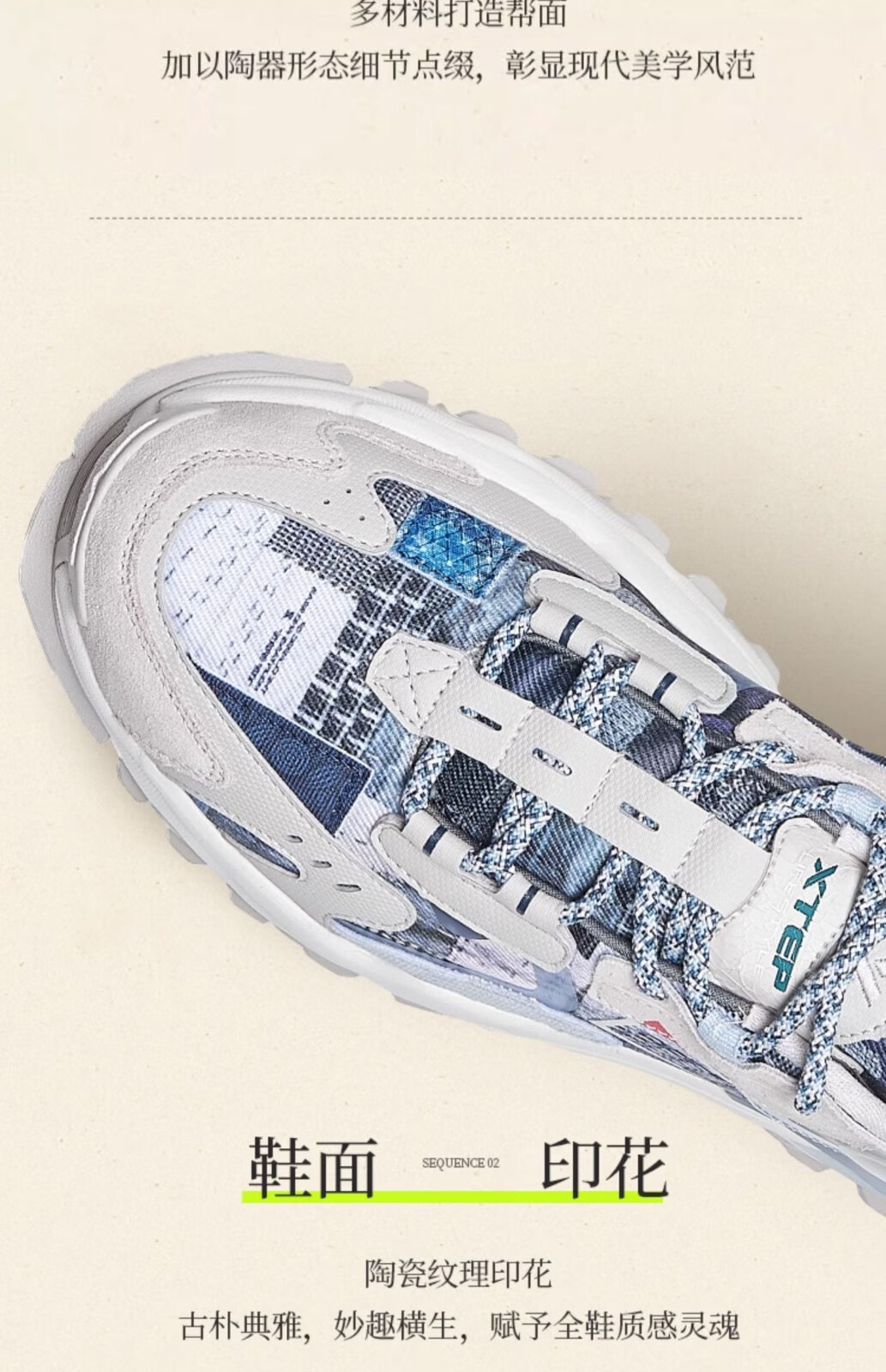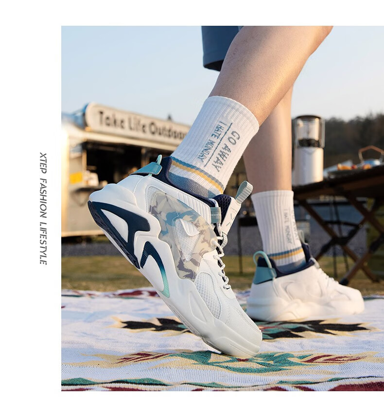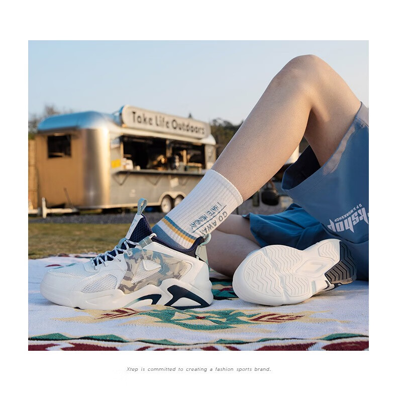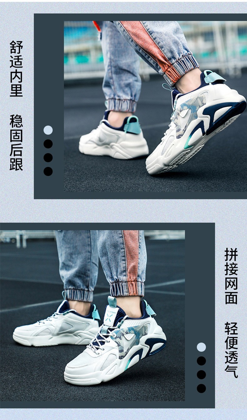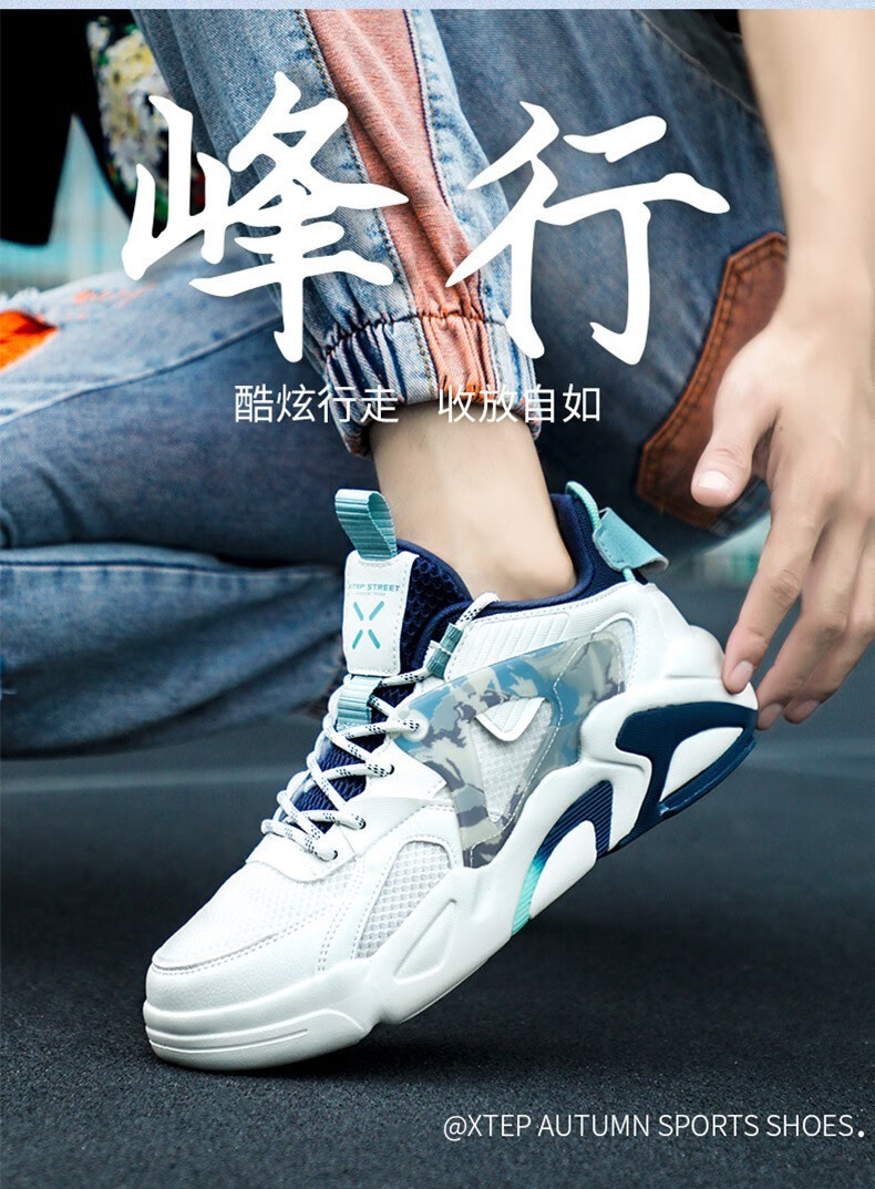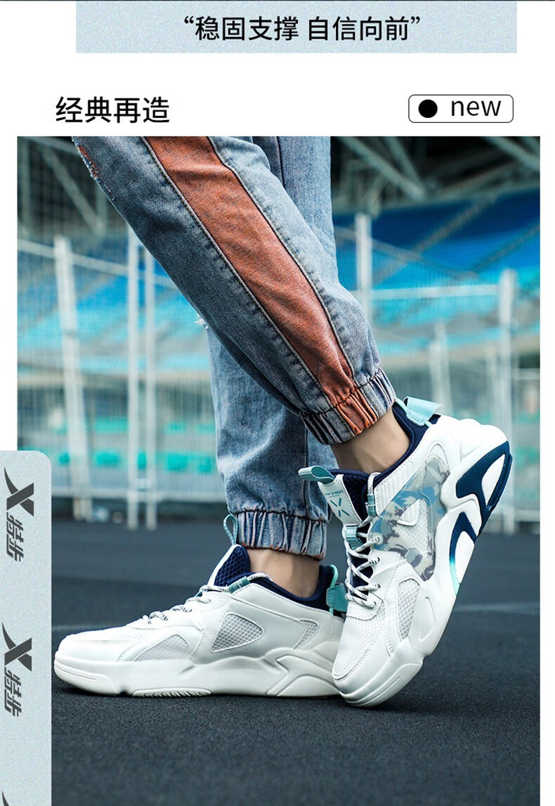 Xtep Men's Shoes, Men's National Fashion Casual Shoes, Men's Fashionable, Versatile Thick-soled Shock-absorbing Mesh Breathable Sports Shoes for Men, Bailan-Fengxing Series Recommended 42